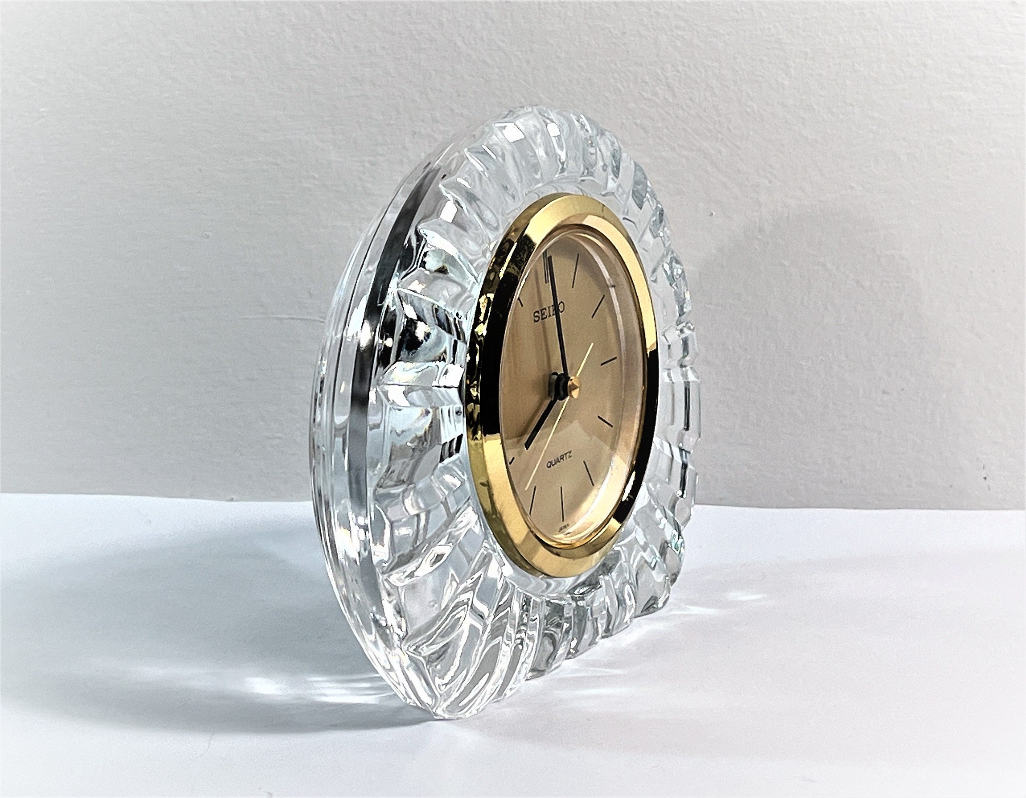 SEIKO FINE 24% LEAD CRYSTAL MANTEL CLOCK.