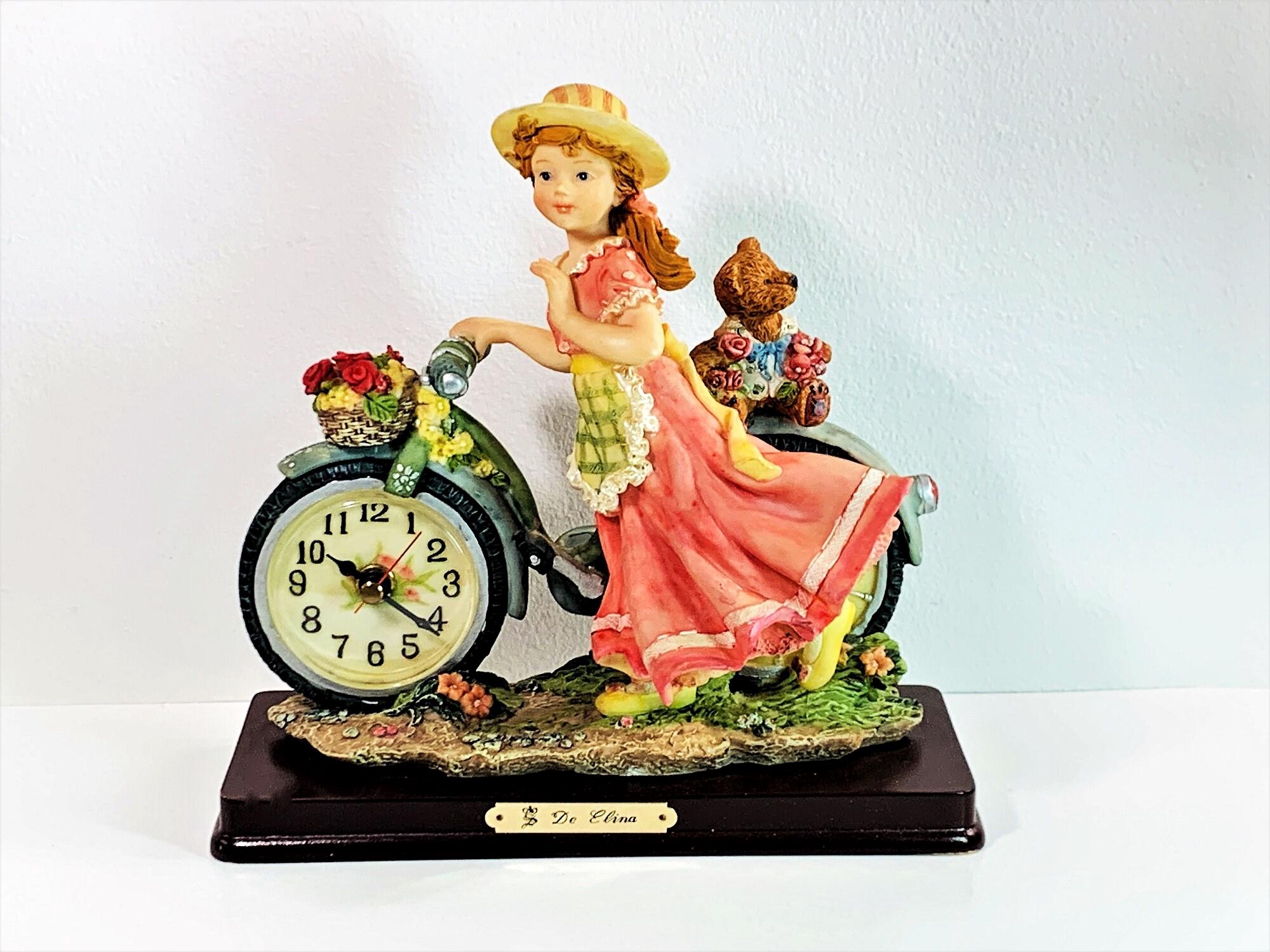 VINTAGE DE ELINA FIGURINE MANTEL CLOCK.