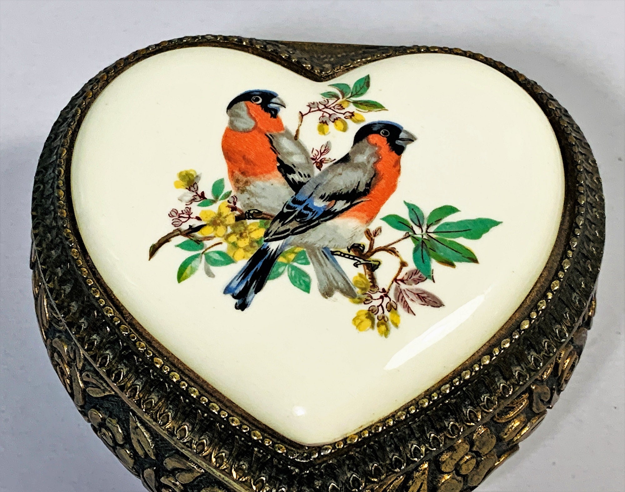 - HAND PAINTED HEART SHAPE CERAMIC PLAQUE, COLORFUL LOVE BIRDS (PICTURED)