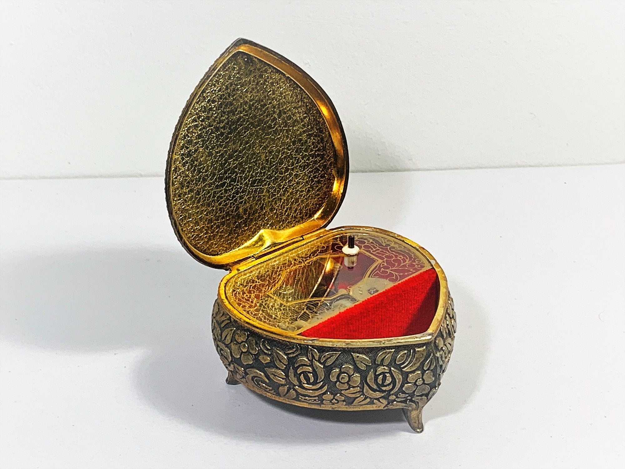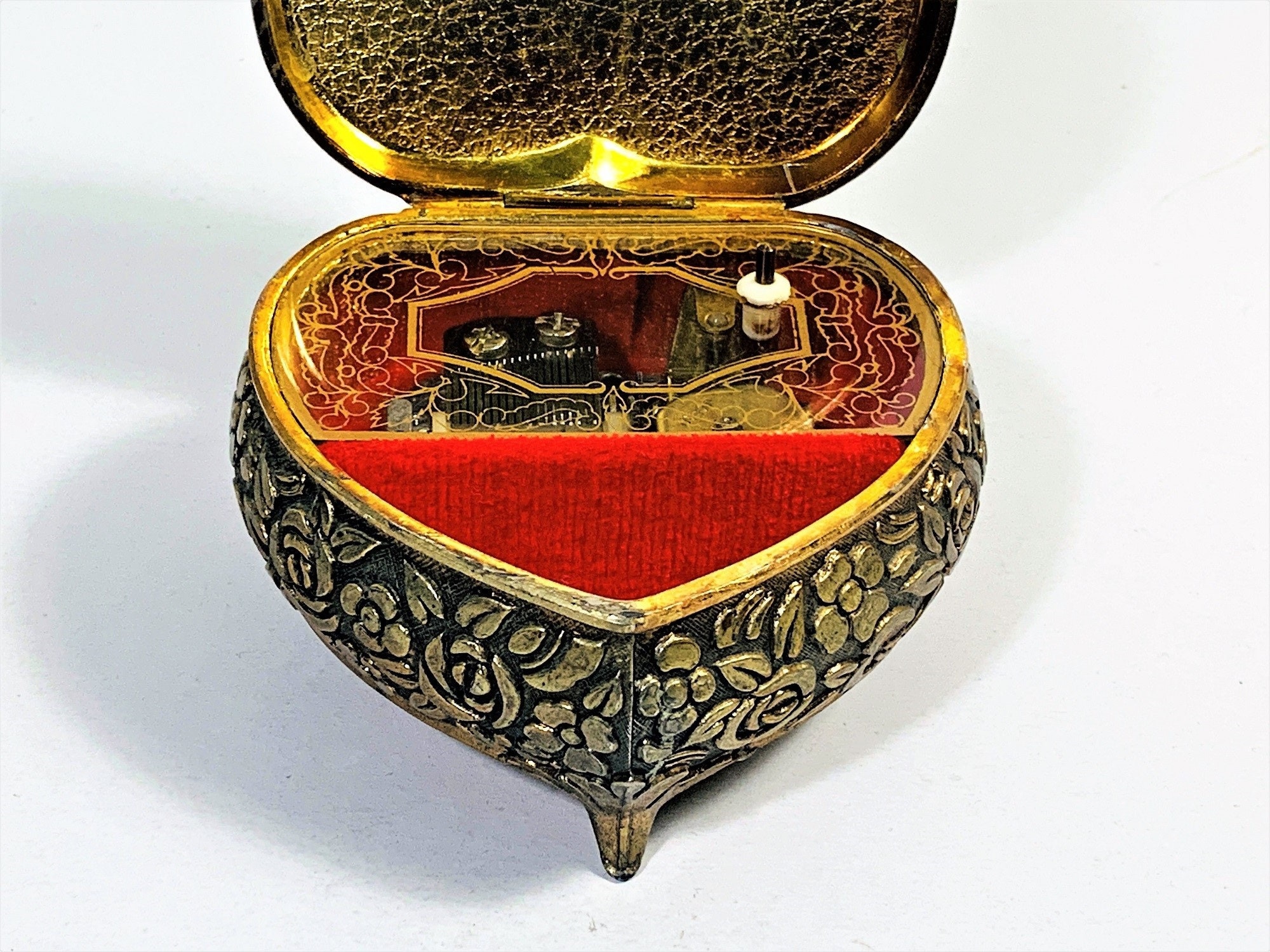 - MUSIC STARTS WHEN LID IS OPEN, WINDING KEY ON THE BOTTOM.