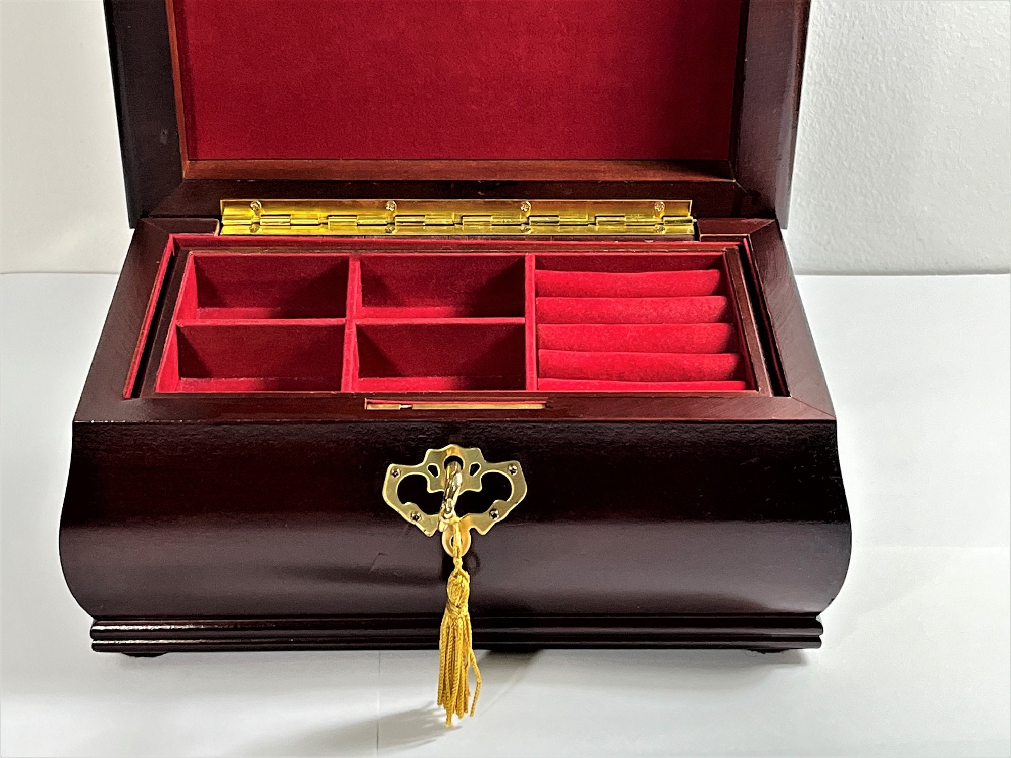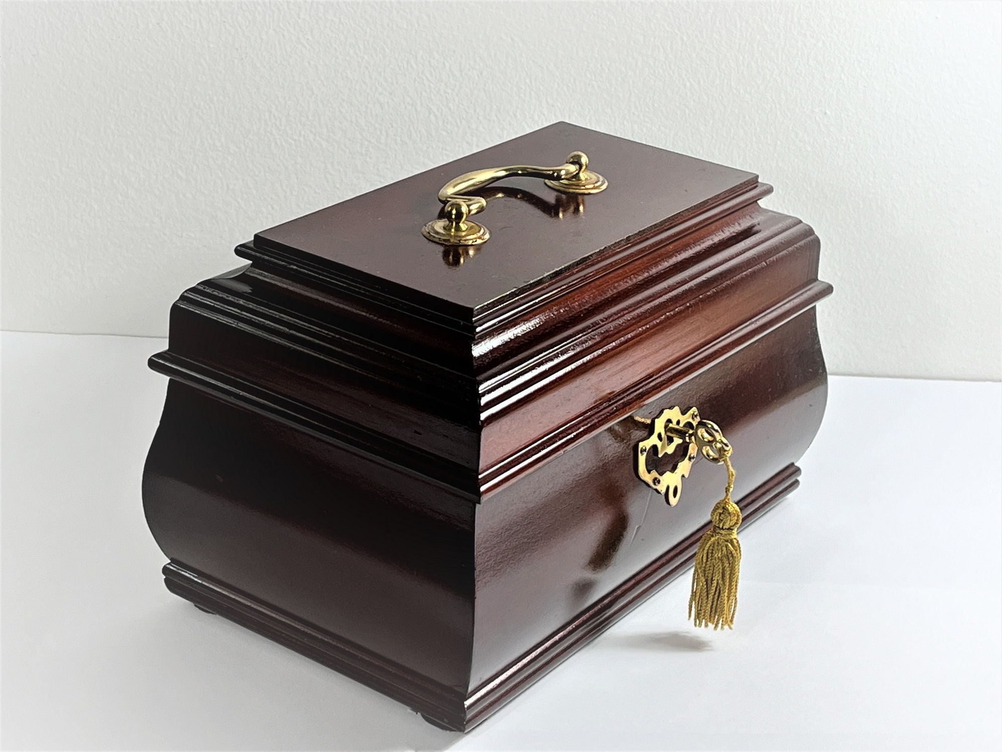 - FANCY TREASURES BOX SHAPE, KEY LOCK WITH ORIGINAL SKELETON KEY, ARTISTIC
