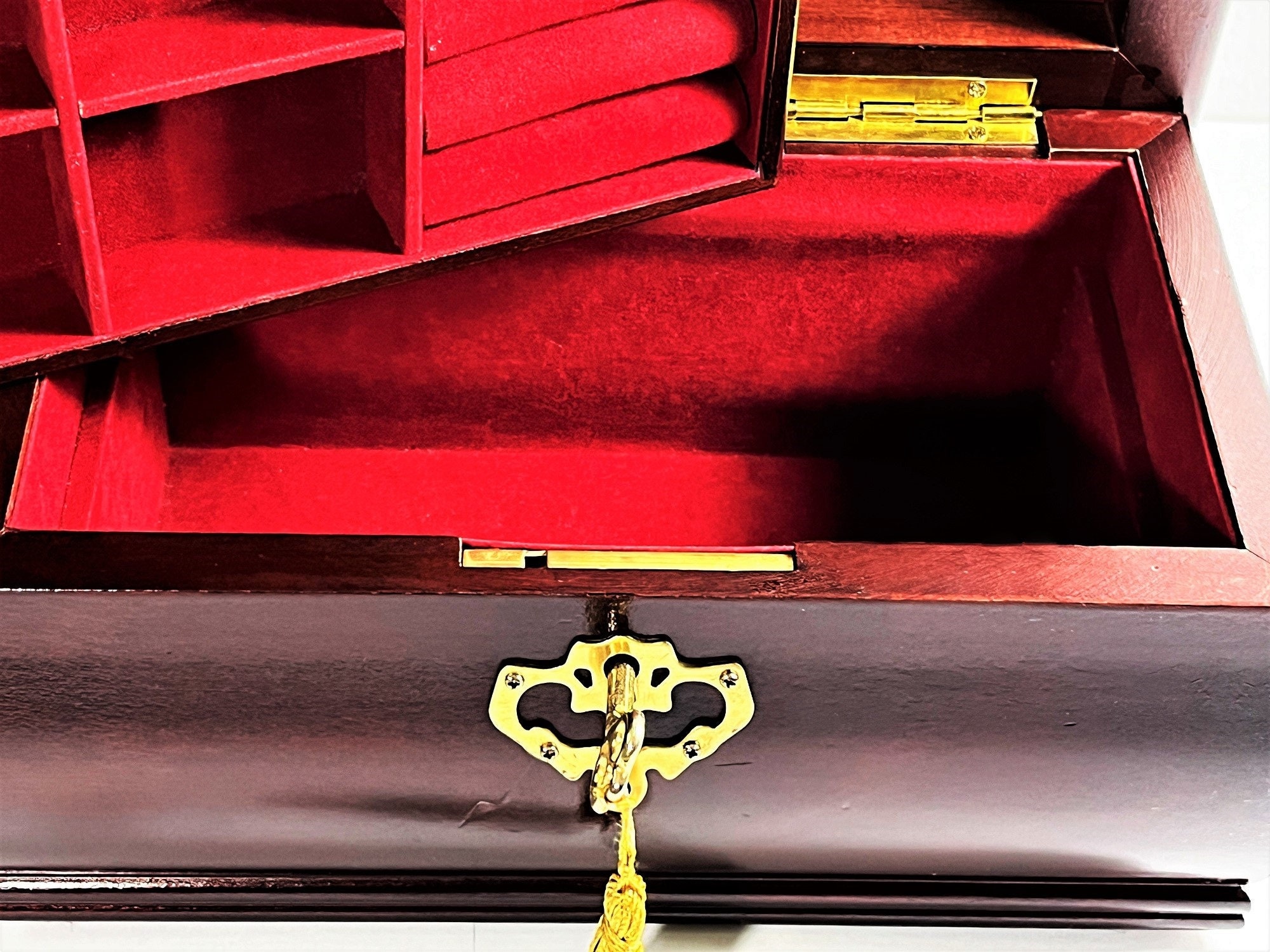 - REMOVABLE TOP PADDED TRAY WITH RING SLOTS AND COMPARTMENTS (PICTURED)