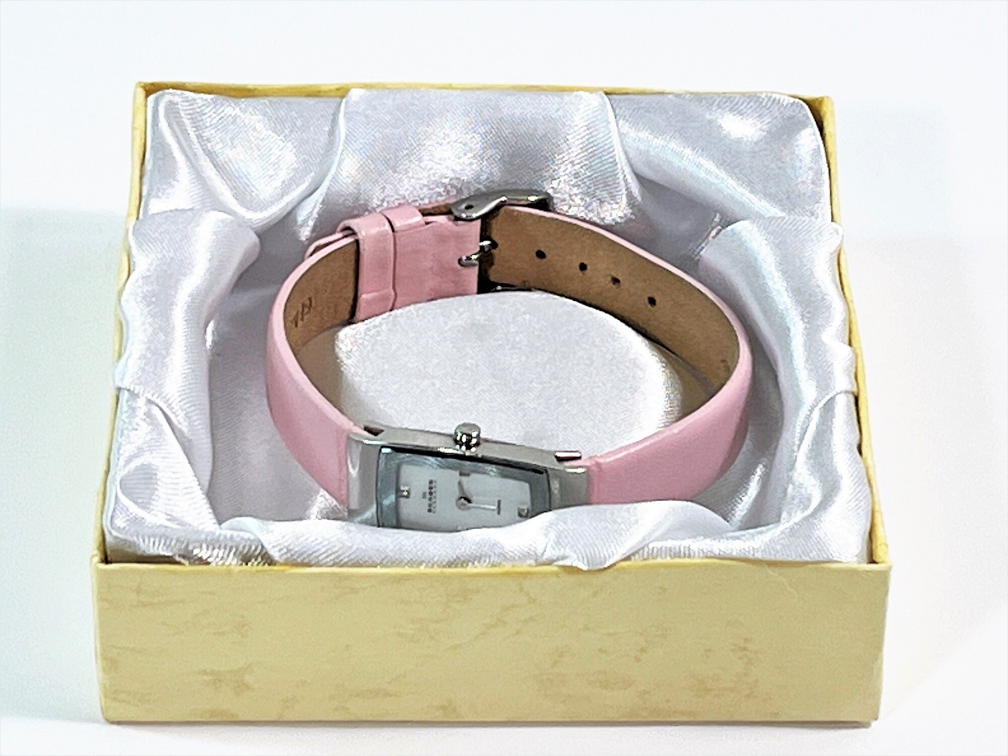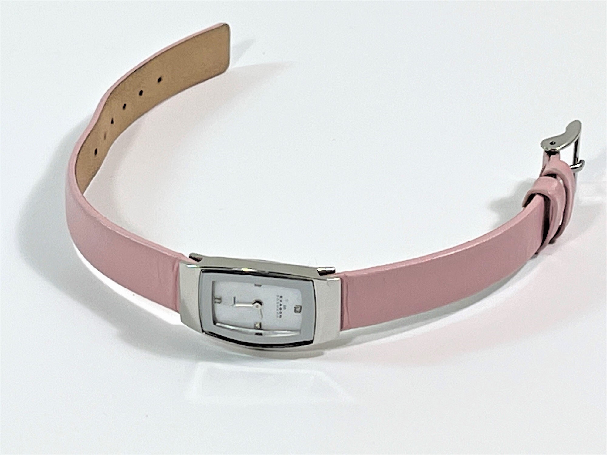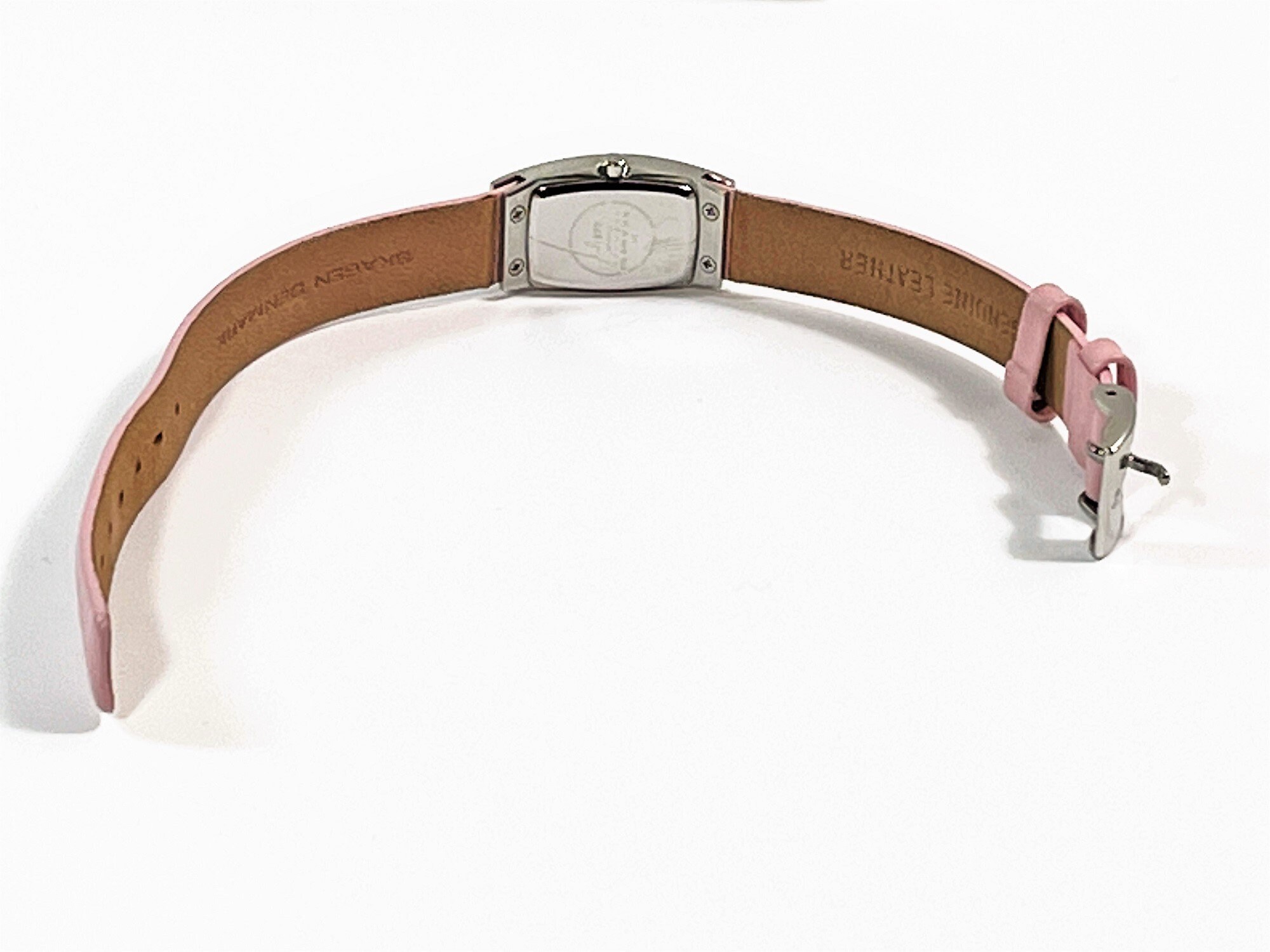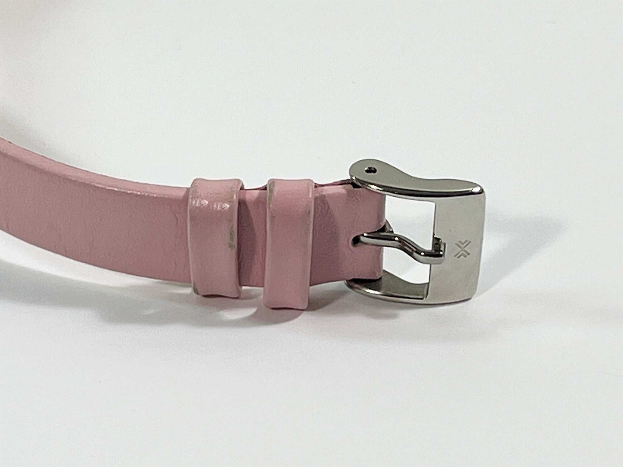 - SOFT PINK LEATHER BAND, STAINLESS STEEL BUCKLE.