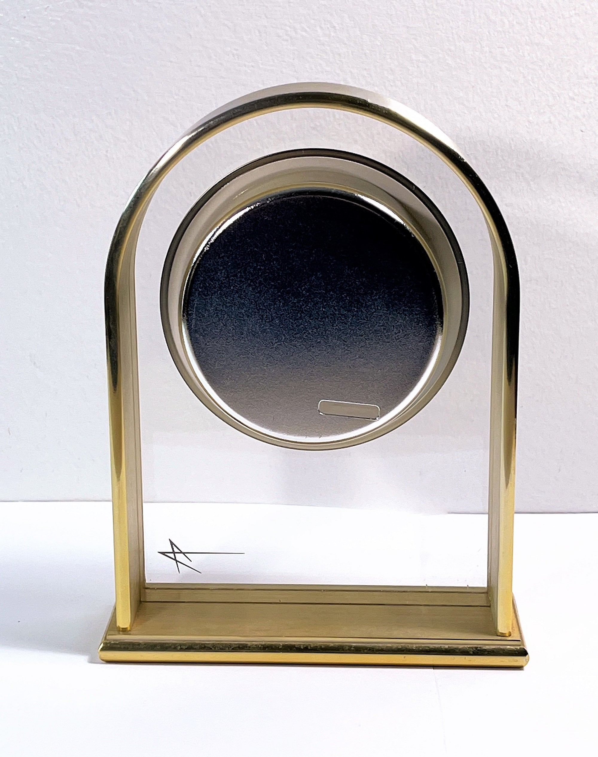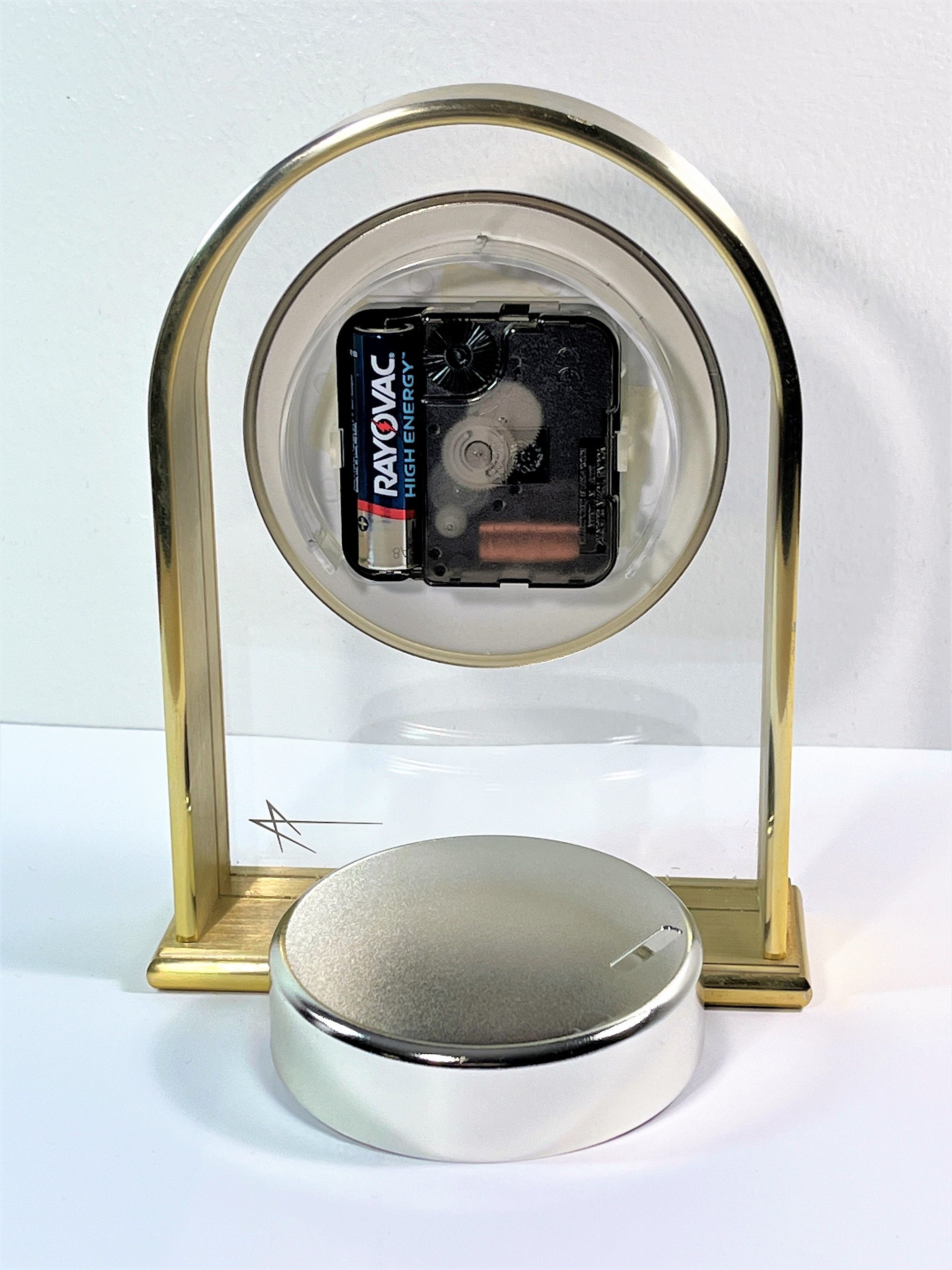 - LARGE 4" FLOATING CLEAR DIAL, WHITE WITH POLISHED BRASS RIM.