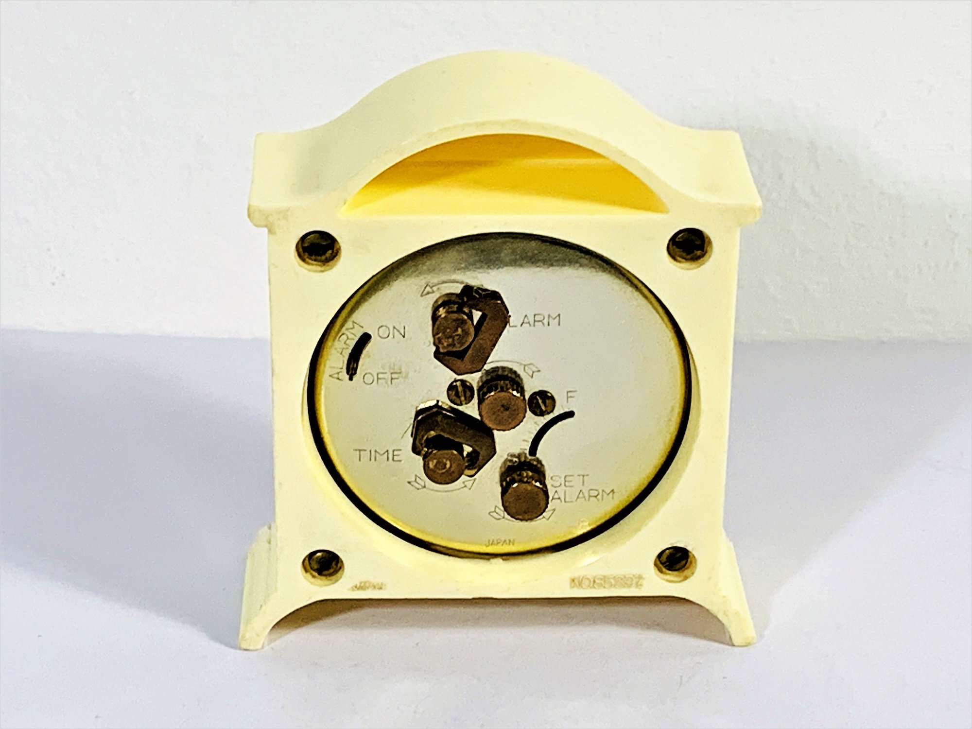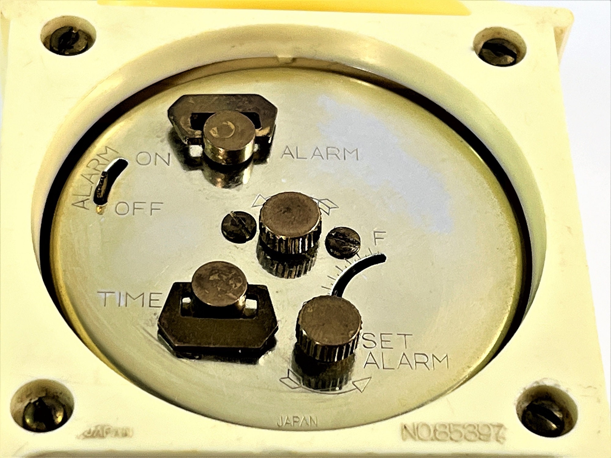 - ALARM ON/OFF SWITCH, SEPARATE KNOBS TO SET THE ALARM & THE TIME.
