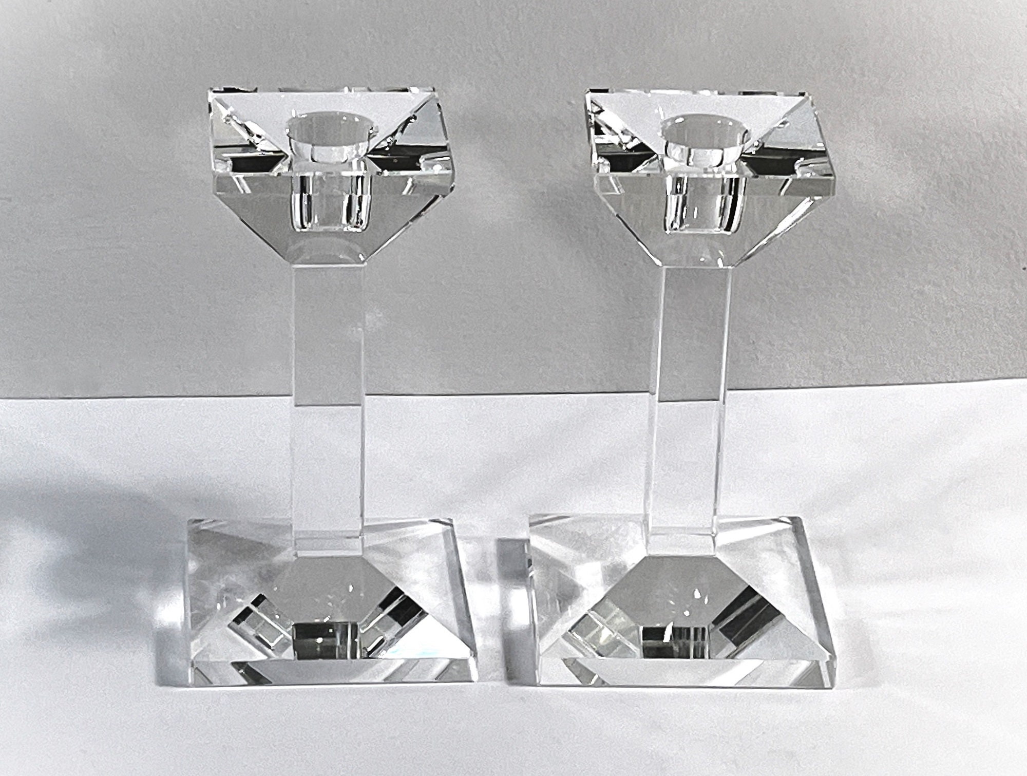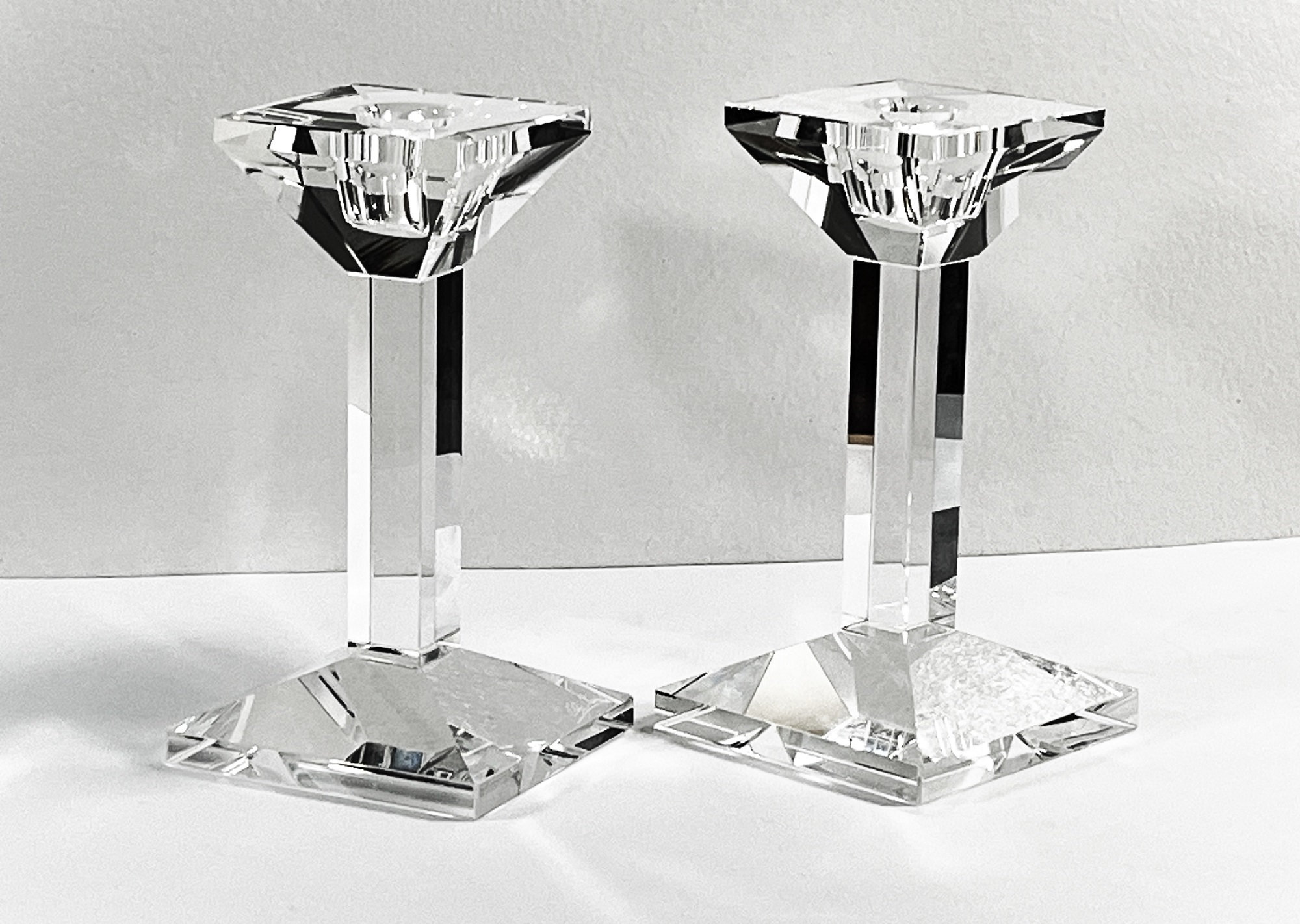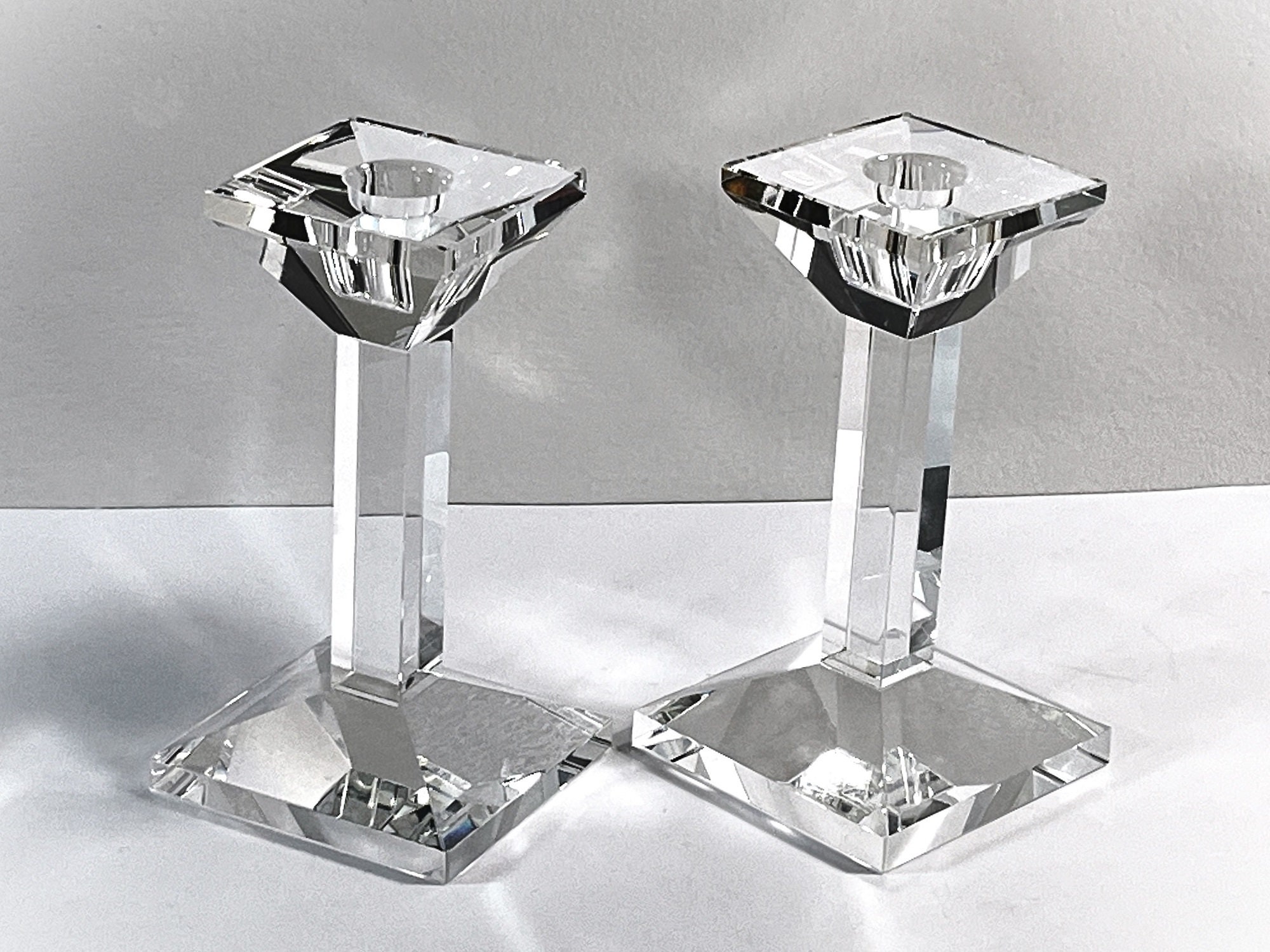 OLEG CASSINI® PAIR OF VINTAGE FINE CZECH CRYSTAL CANDLE HOLDERS.
