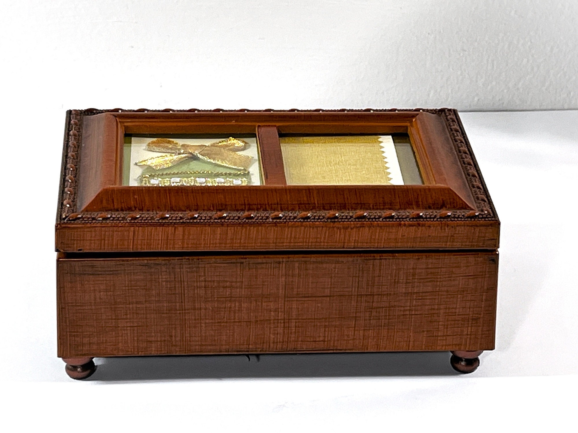 - JEWELRY OR TRINKET BOX. GLASS WINDOW TOP. ARTISTIC ART AND FRAME