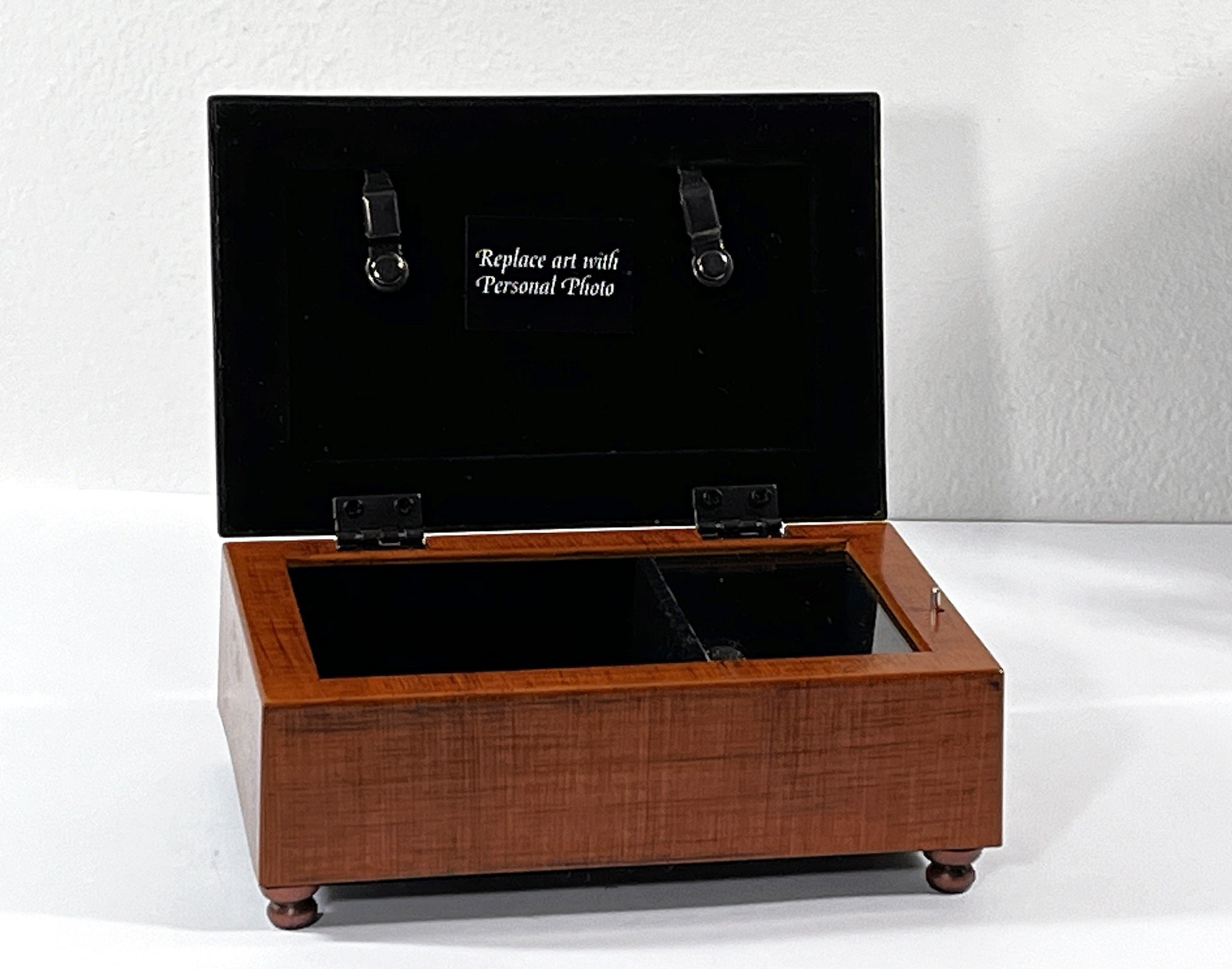 - MUSIC STARTS WHEN BOX IS OPEN, STOPS WHEN CLOSED. WINDER ON THE BOTTOM.