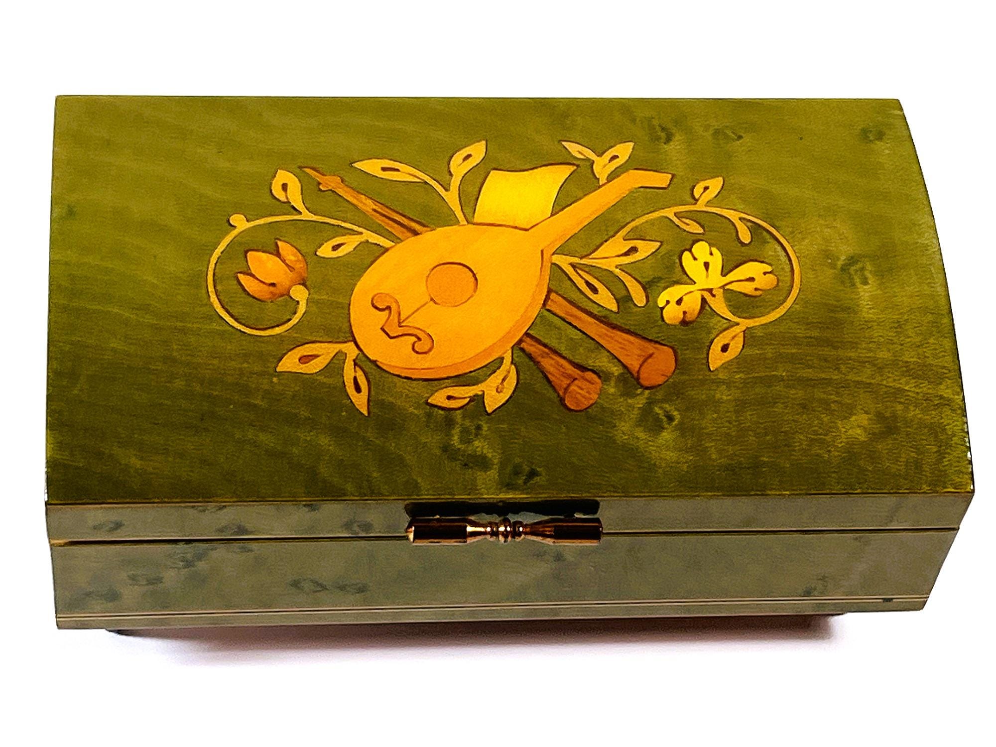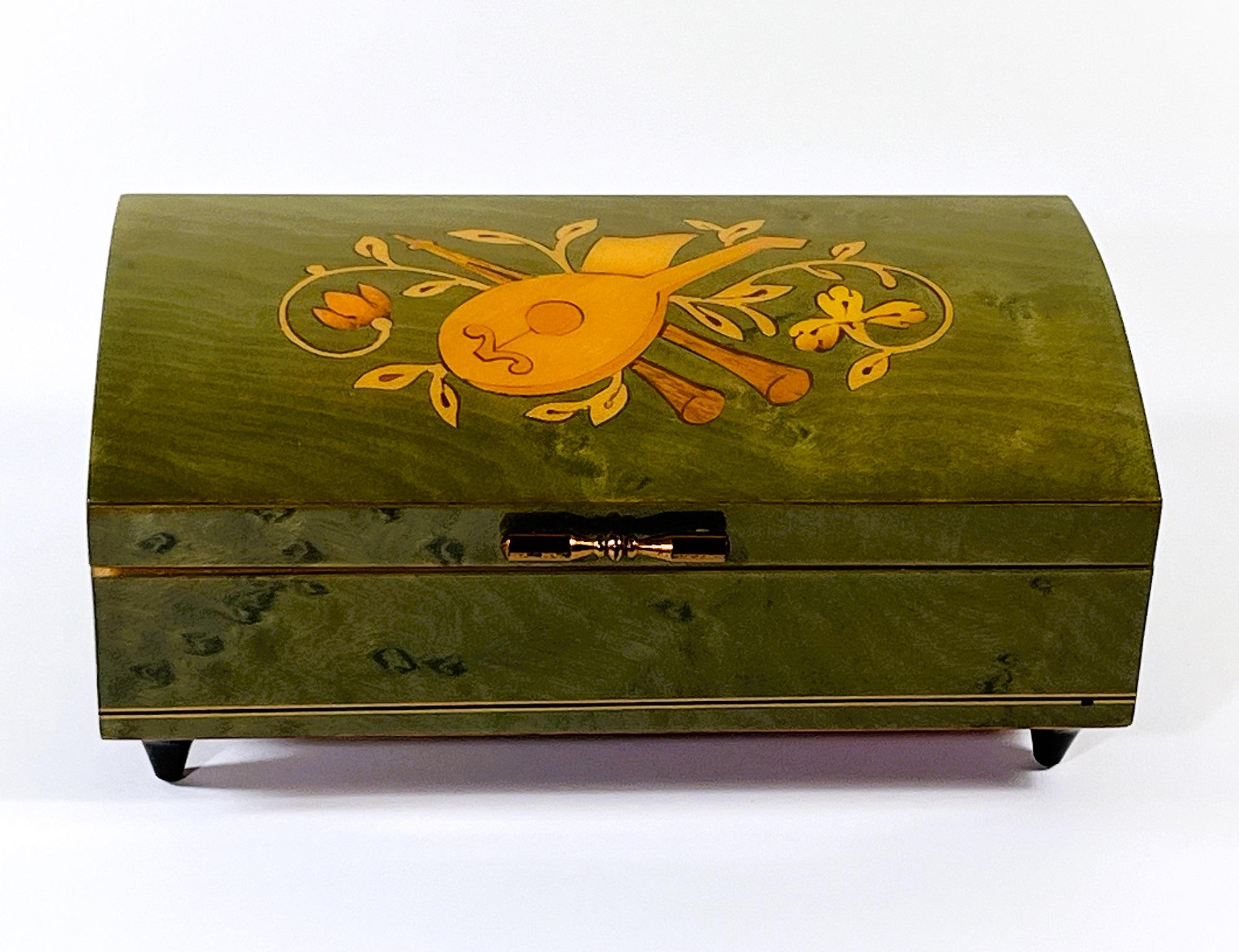 - BURR AMBOYNA MUSICAL INSTRUMENTS INLAY ON THE HINGED LID