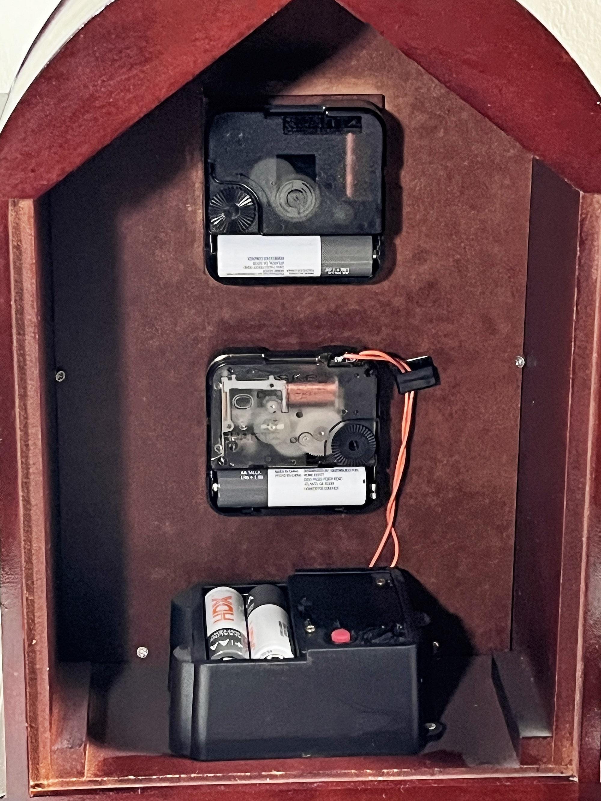 - WOOD BACK PANEL, EASY TO REMOVE. CHIME SPEAKER ON THE BOTTOM (PICTURED)