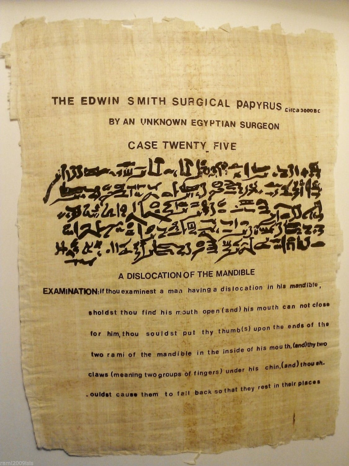 FEATURES CASE TWENTY FIVE OF THE EDWIN SMITH SURGICAL PAPYRUS CIRCA 300 B.C