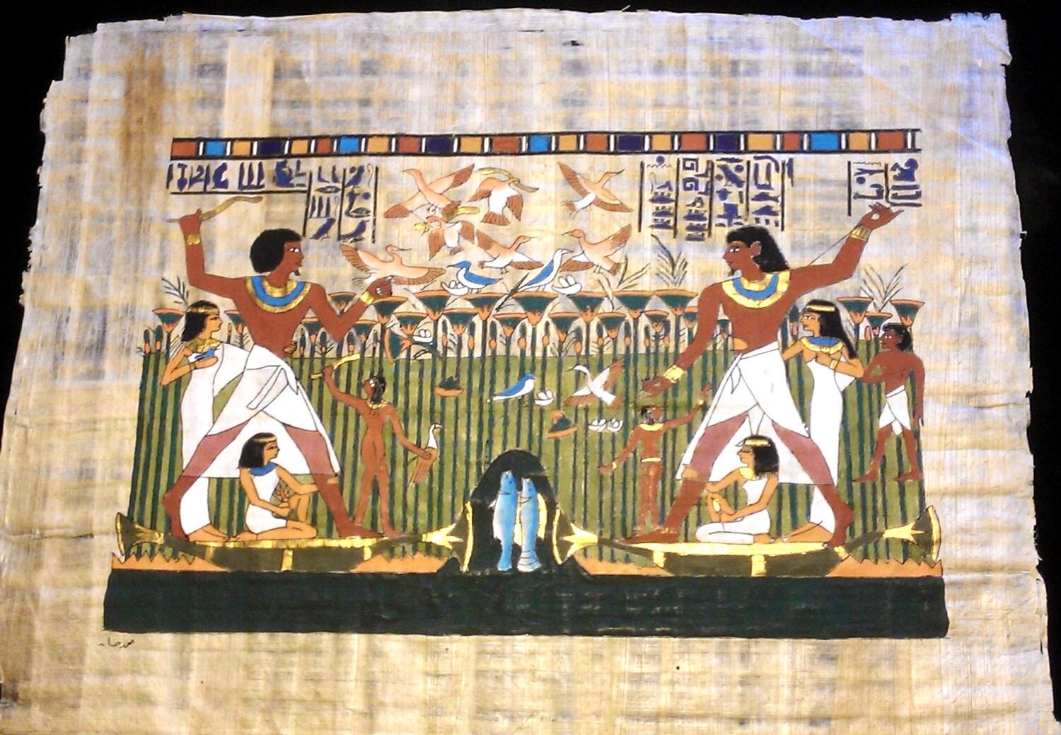 VINTAGE EGYPTIAN HAND PAINTED GENUINE PAPYRUS