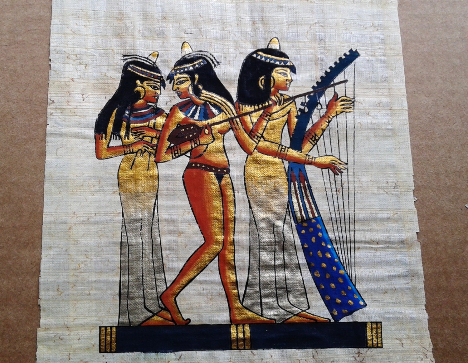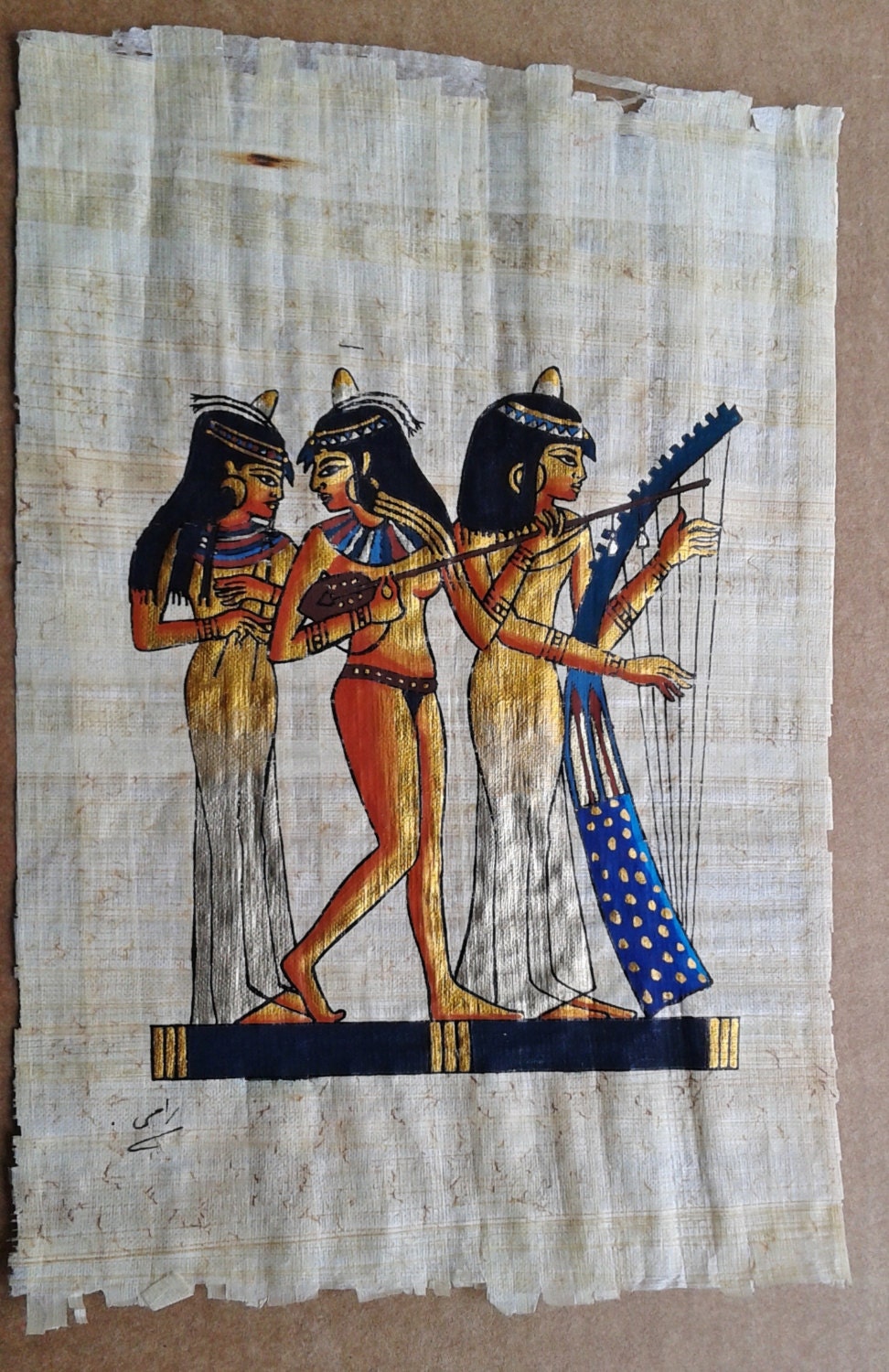 VINTAGE EGYPTIAN HAND PAINTED GENUINE PAPYRUS