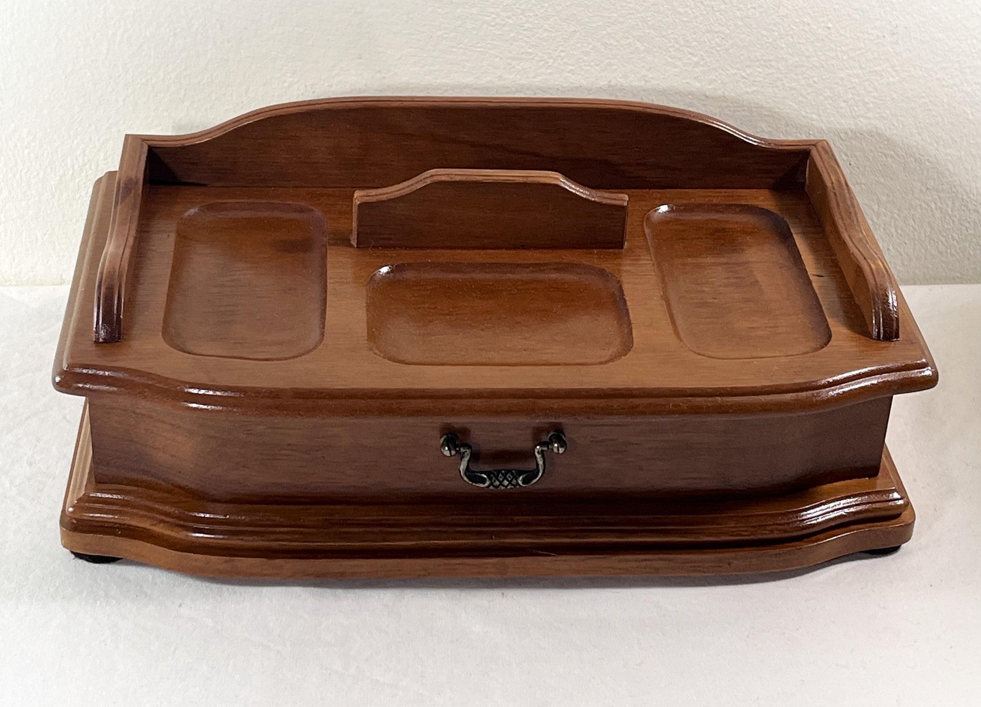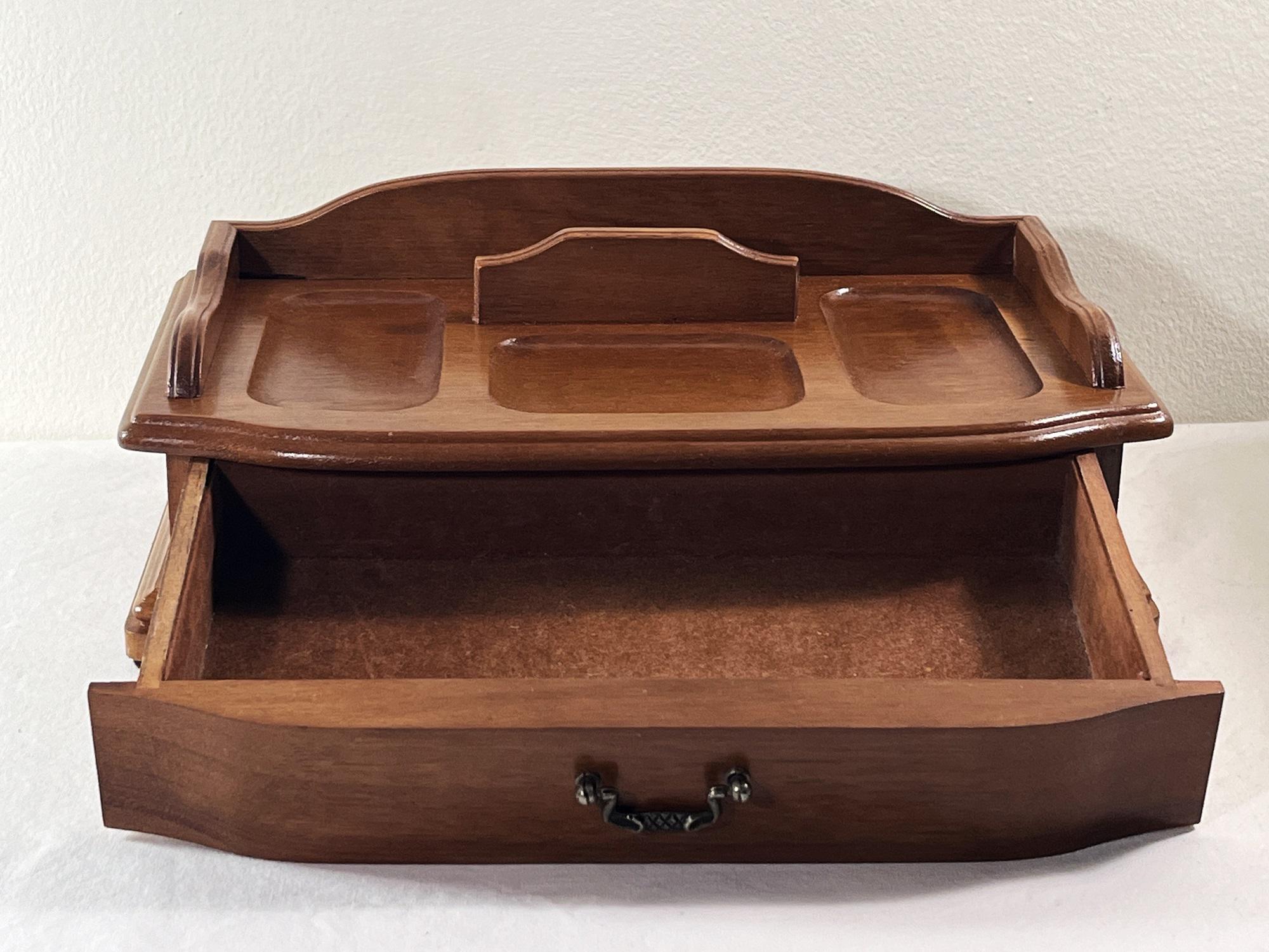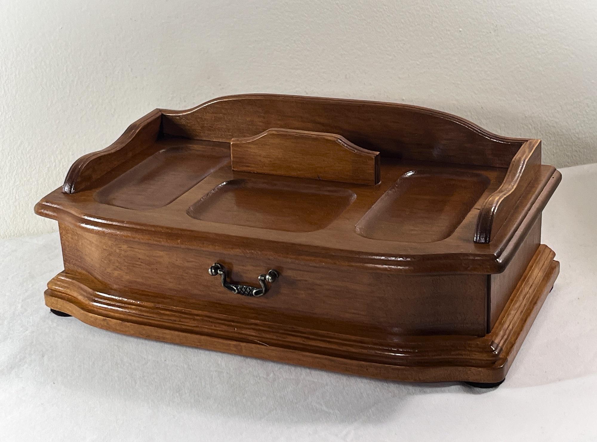 VINTAGE EXQUISITE CARVED GENUINE WALNUT JEWELRY DESK VALET BOX.