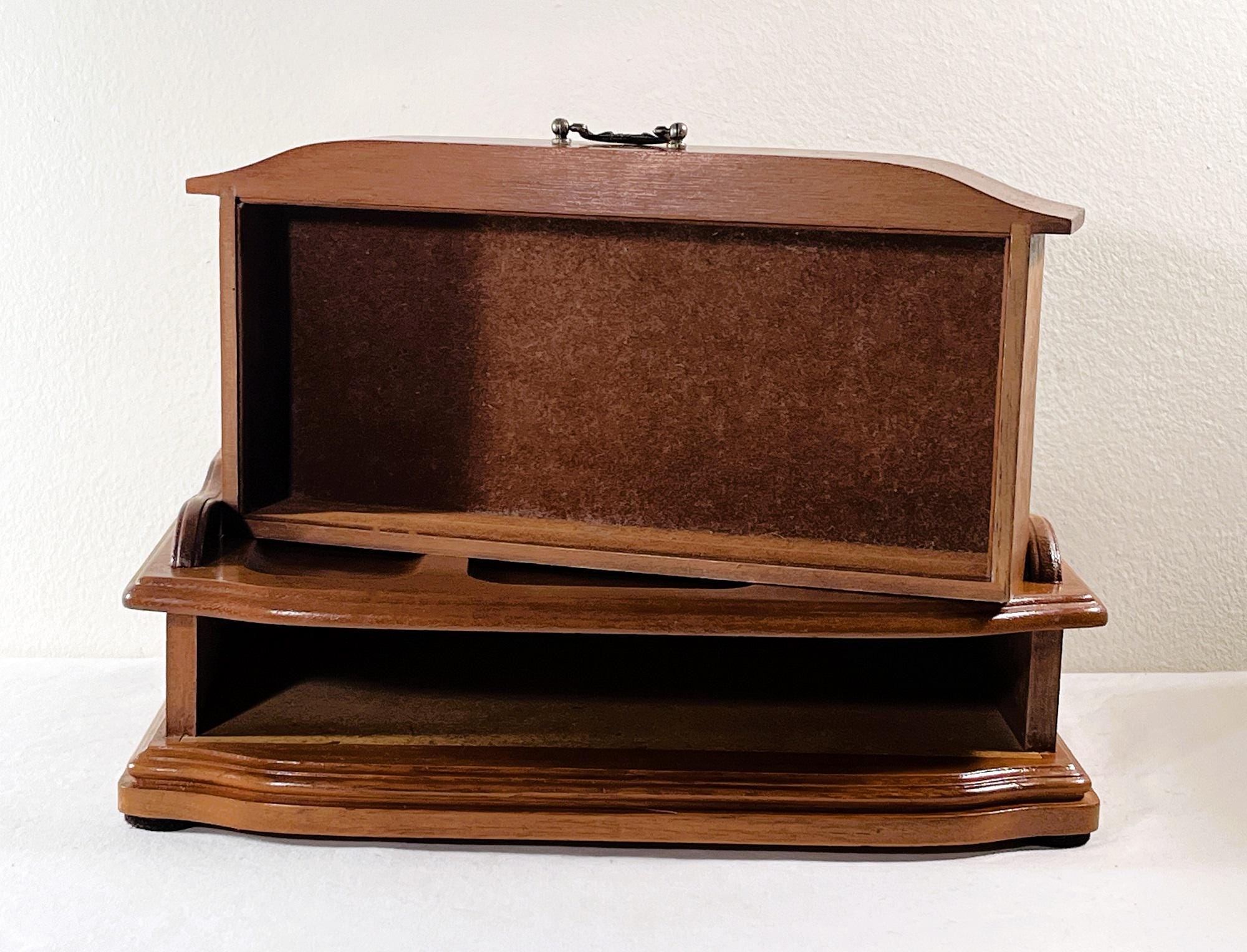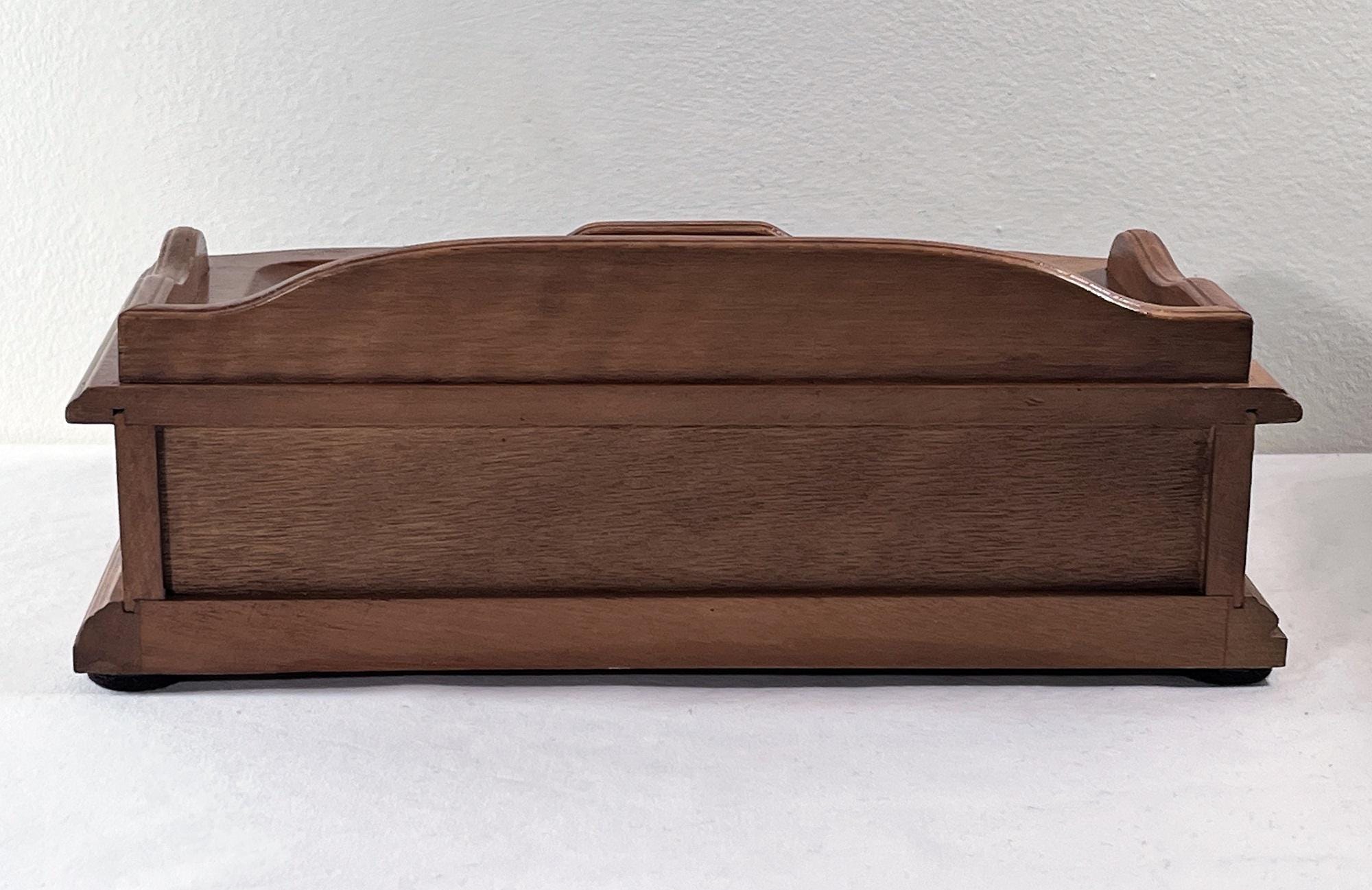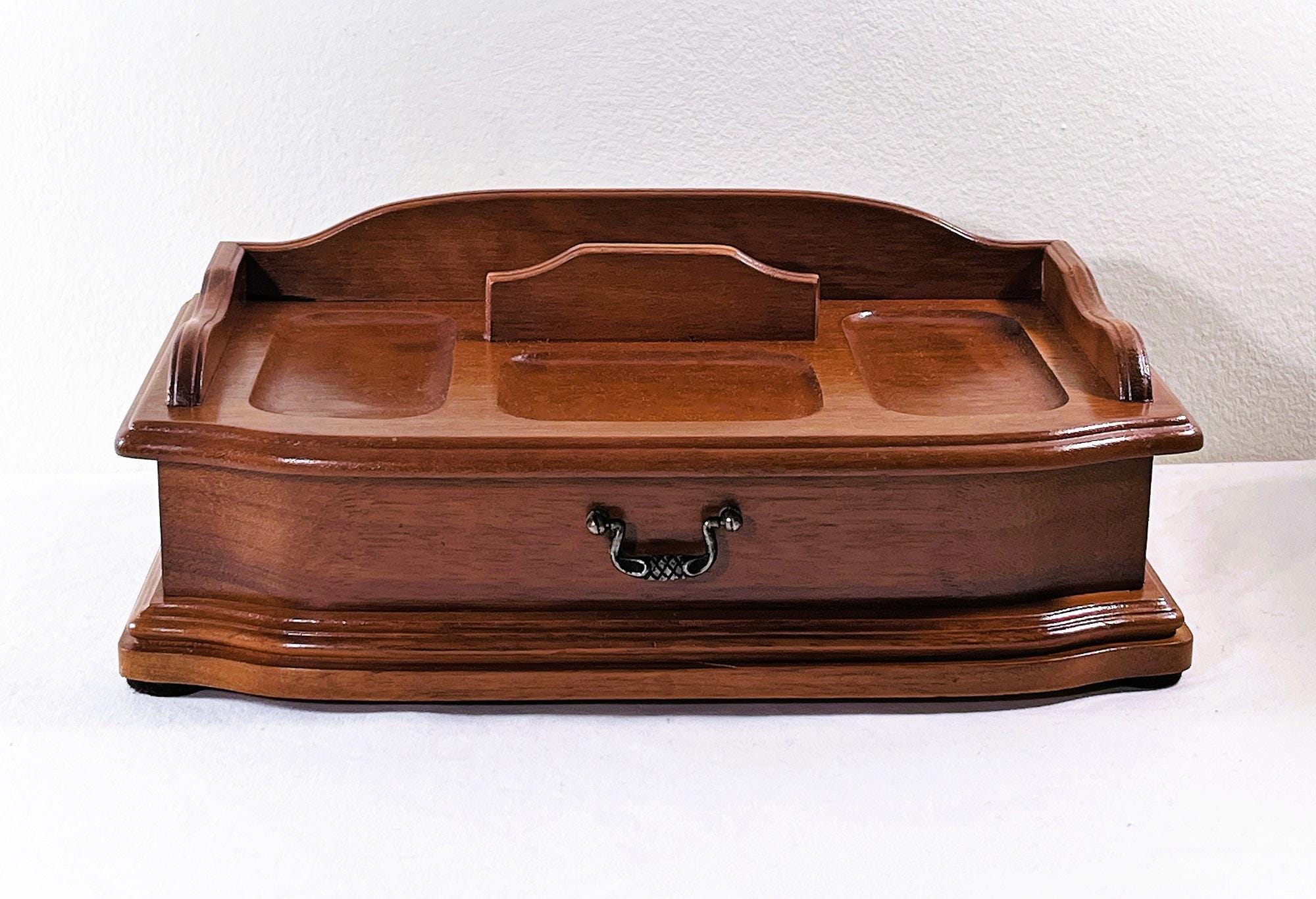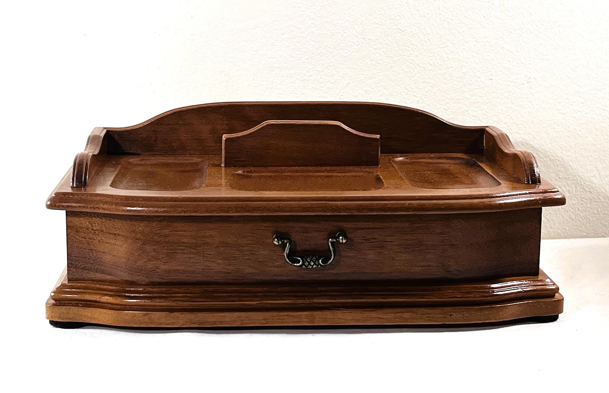 VINTAGE EXQUISITE CARVED GENUINE WALNUT JEWELRY DESK VALET BOX.