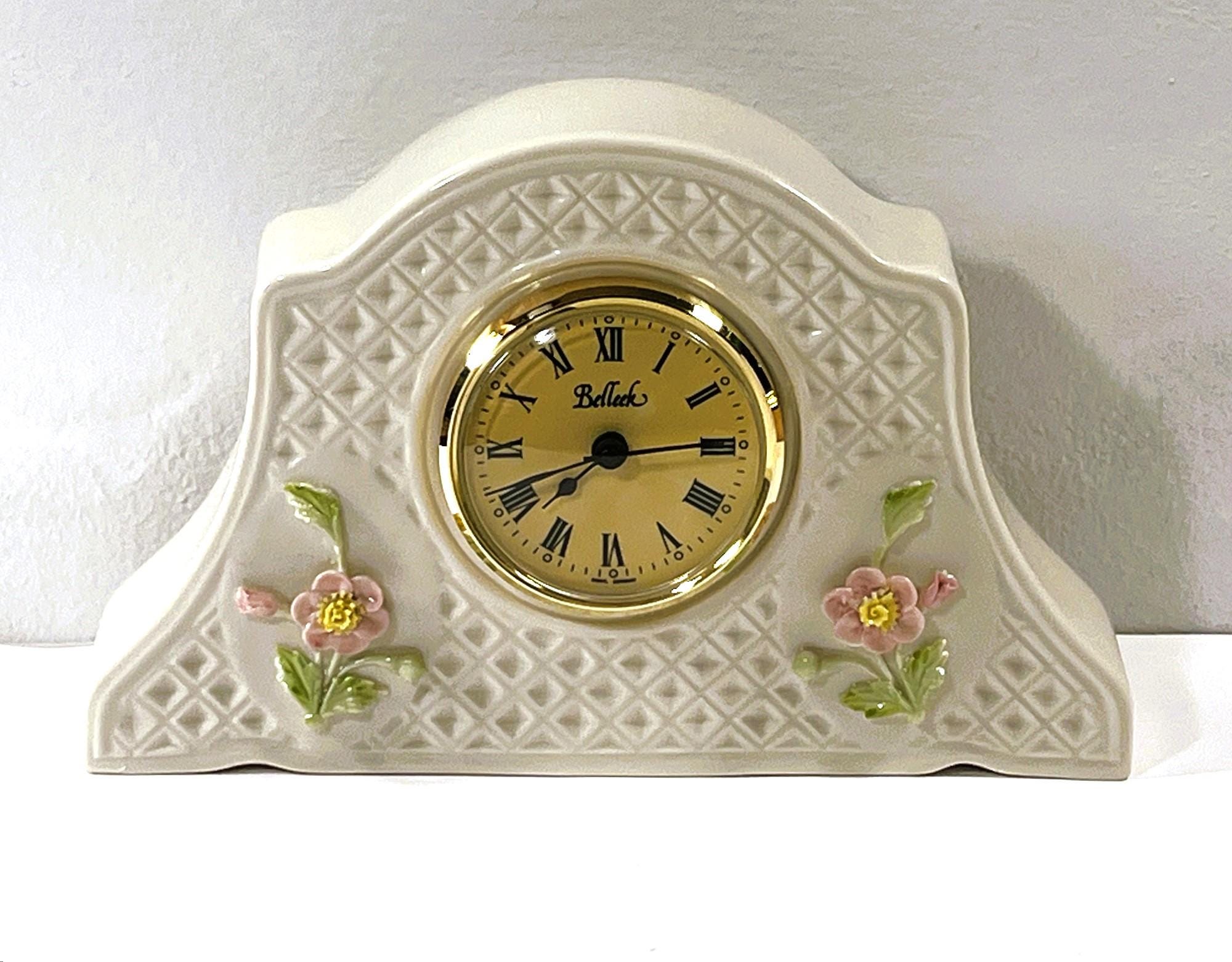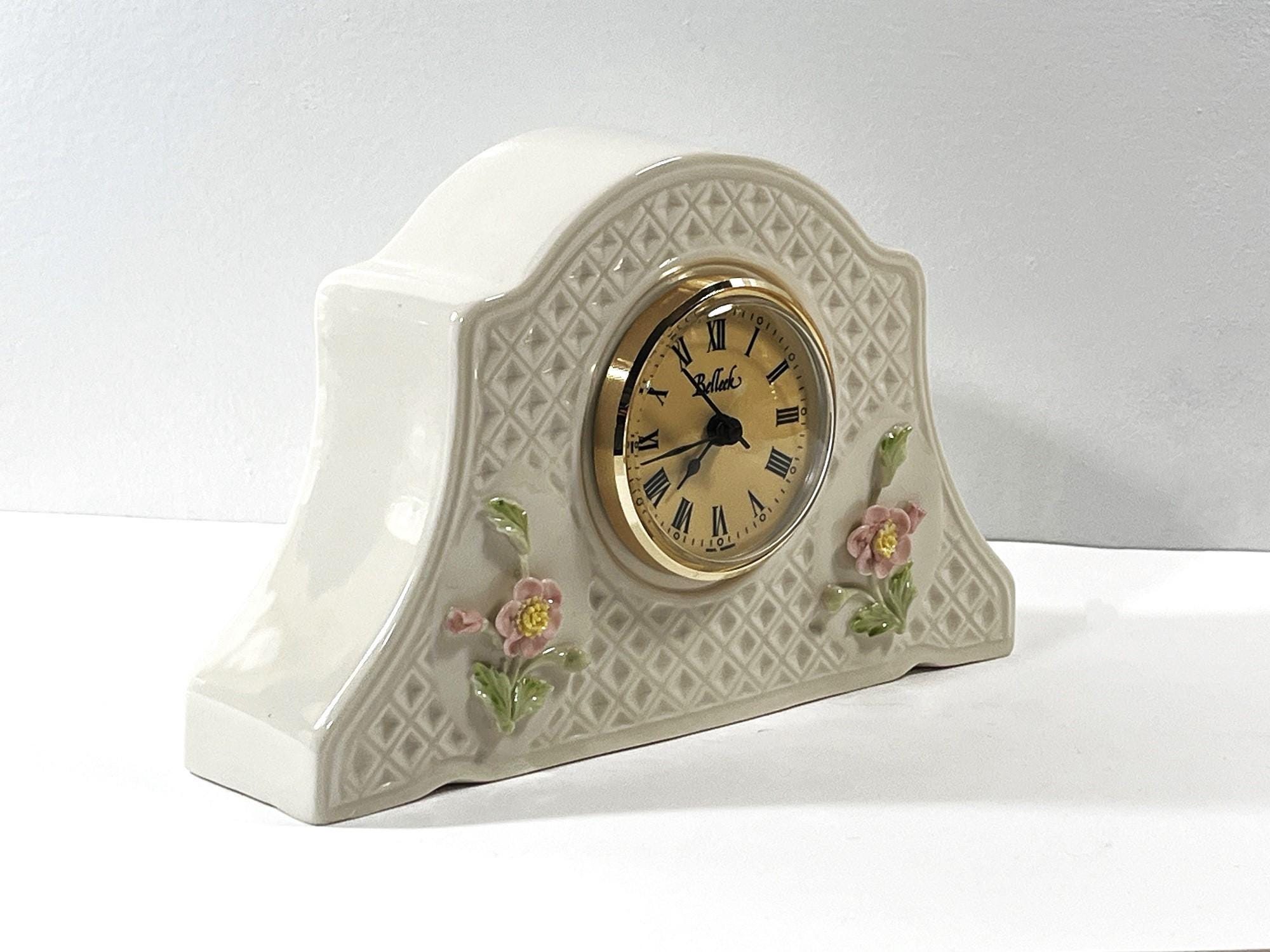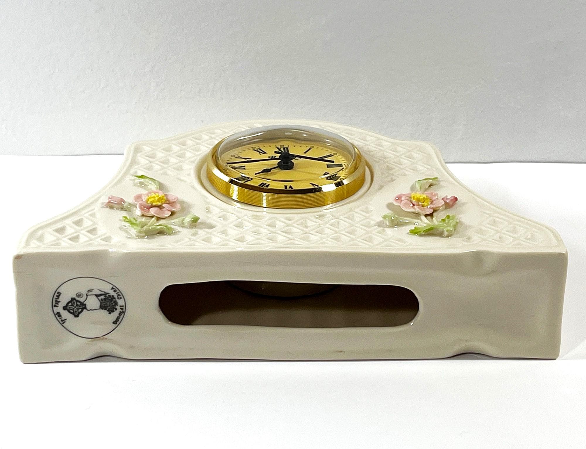 VINTAGE RARE BELLEEK™ IRISH PARIAN DONEGAL CHINA MANTEL CLOCK. SIGNED.