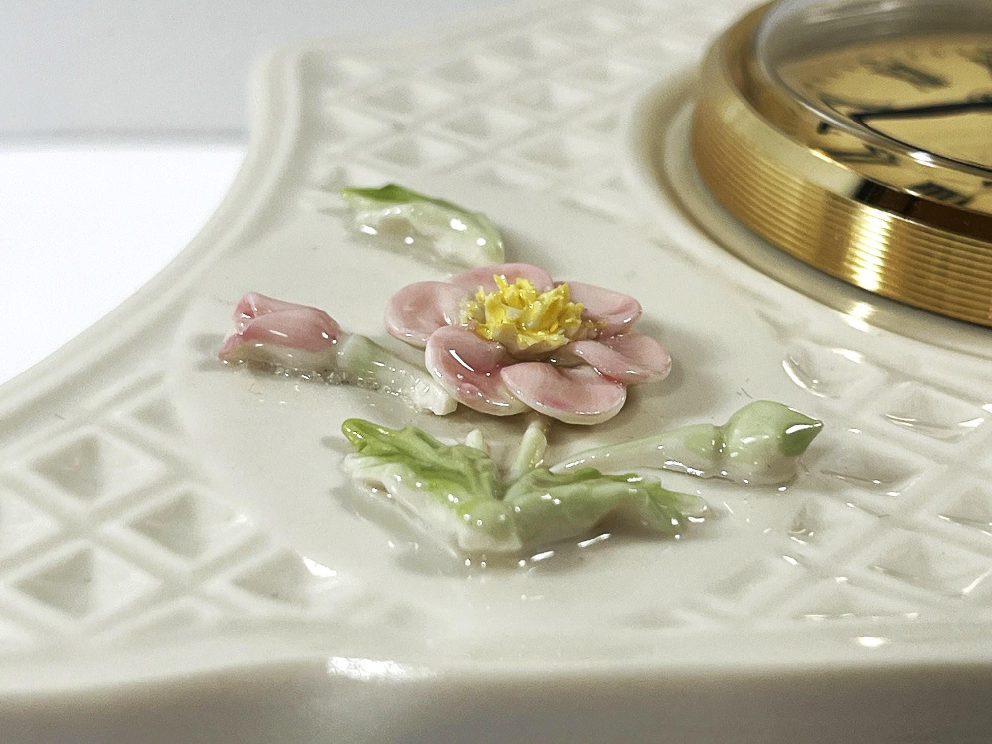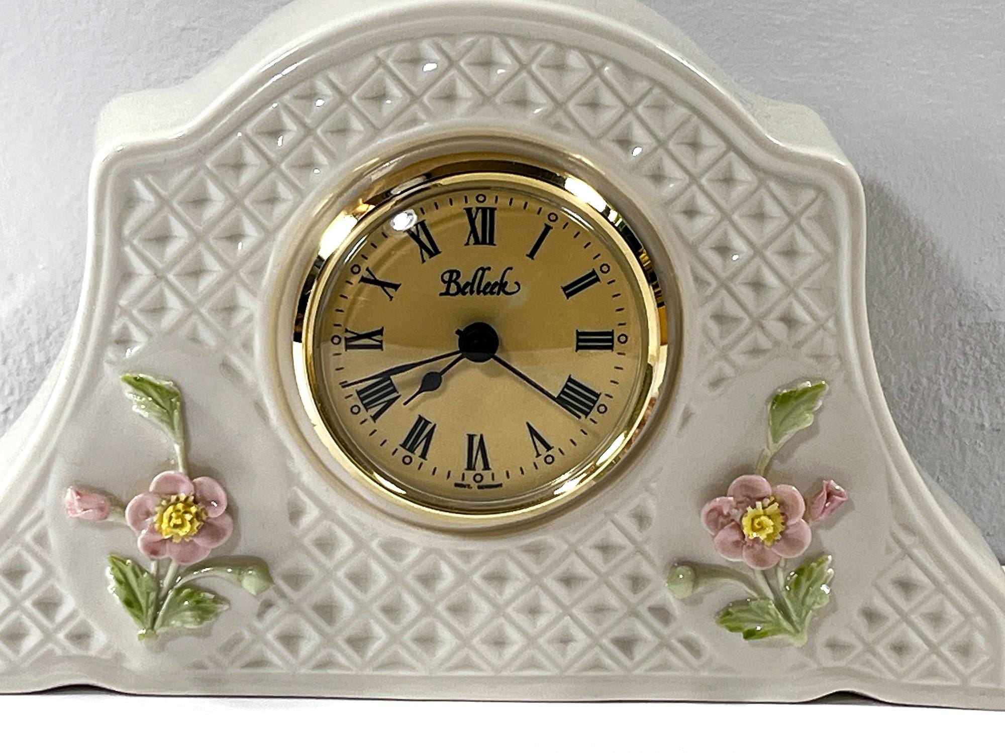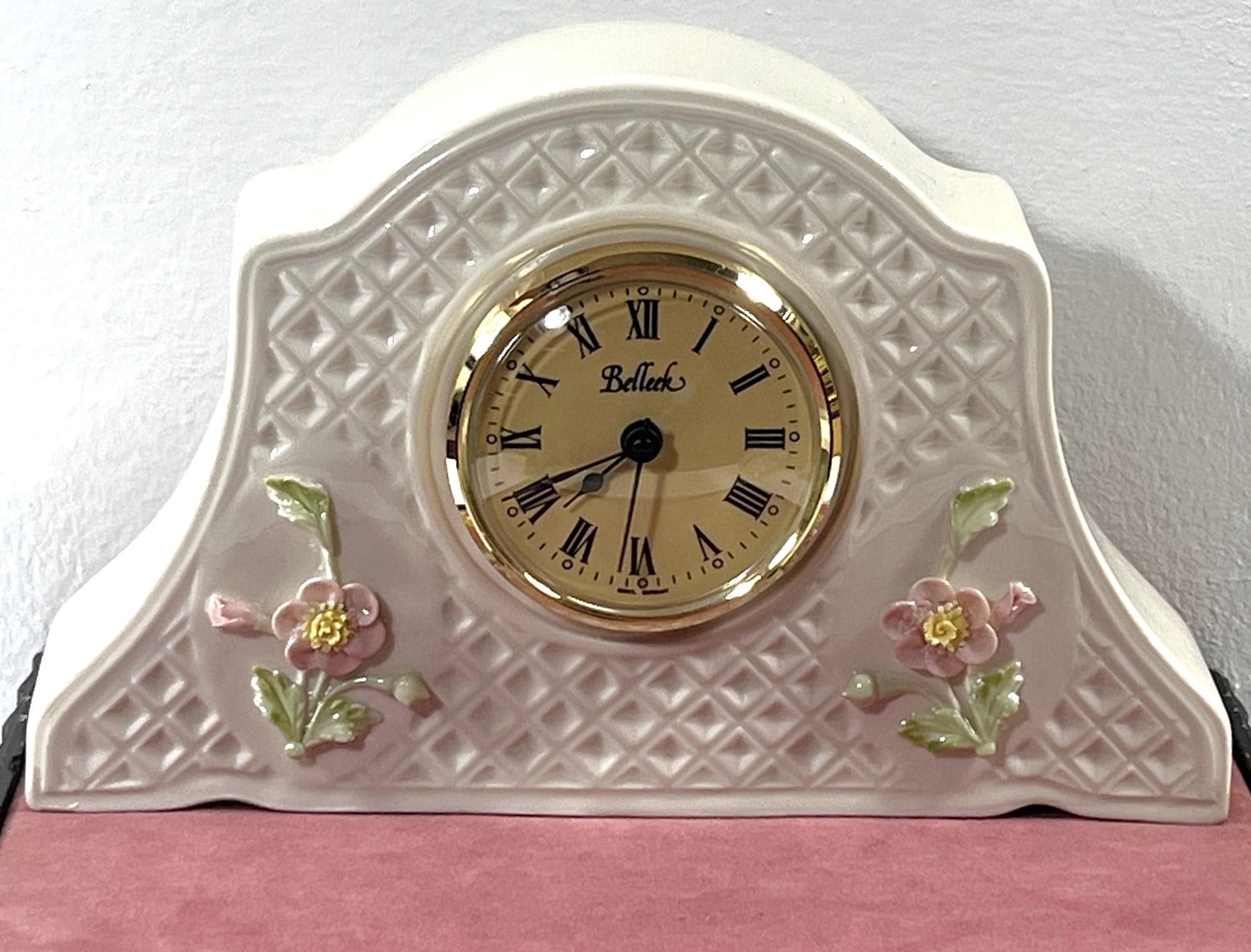 VINTAGE RARE BELLEEK™ IRISH PARIAN DONEGAL CHINA MANTEL CLOCK. SIGNED.
