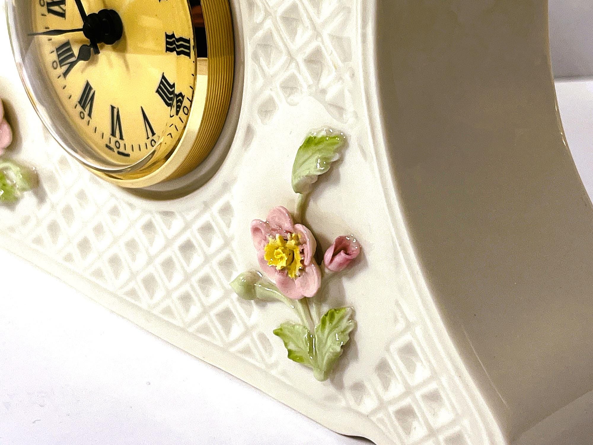 - CONDITION: EXCELLENT ALL AROUND, NO CHIPS OR BLEMISHES ON THE PORCELAIN, DEEPLY CLEANED, CLOCK WORKS PERFECTLY, WELL PRESERVED PRE-OWNED.