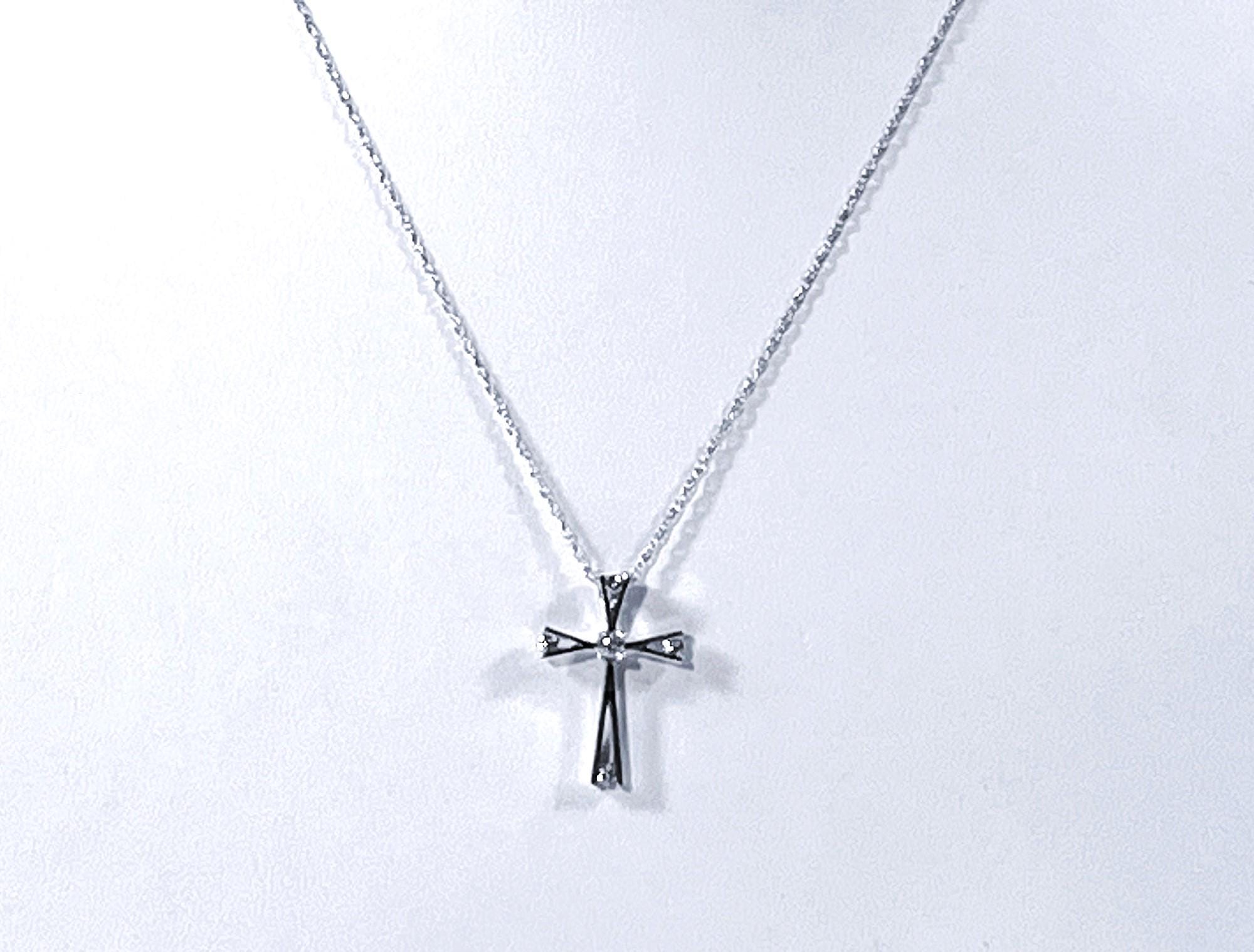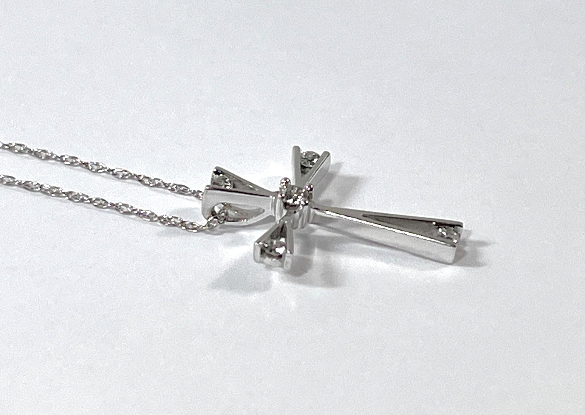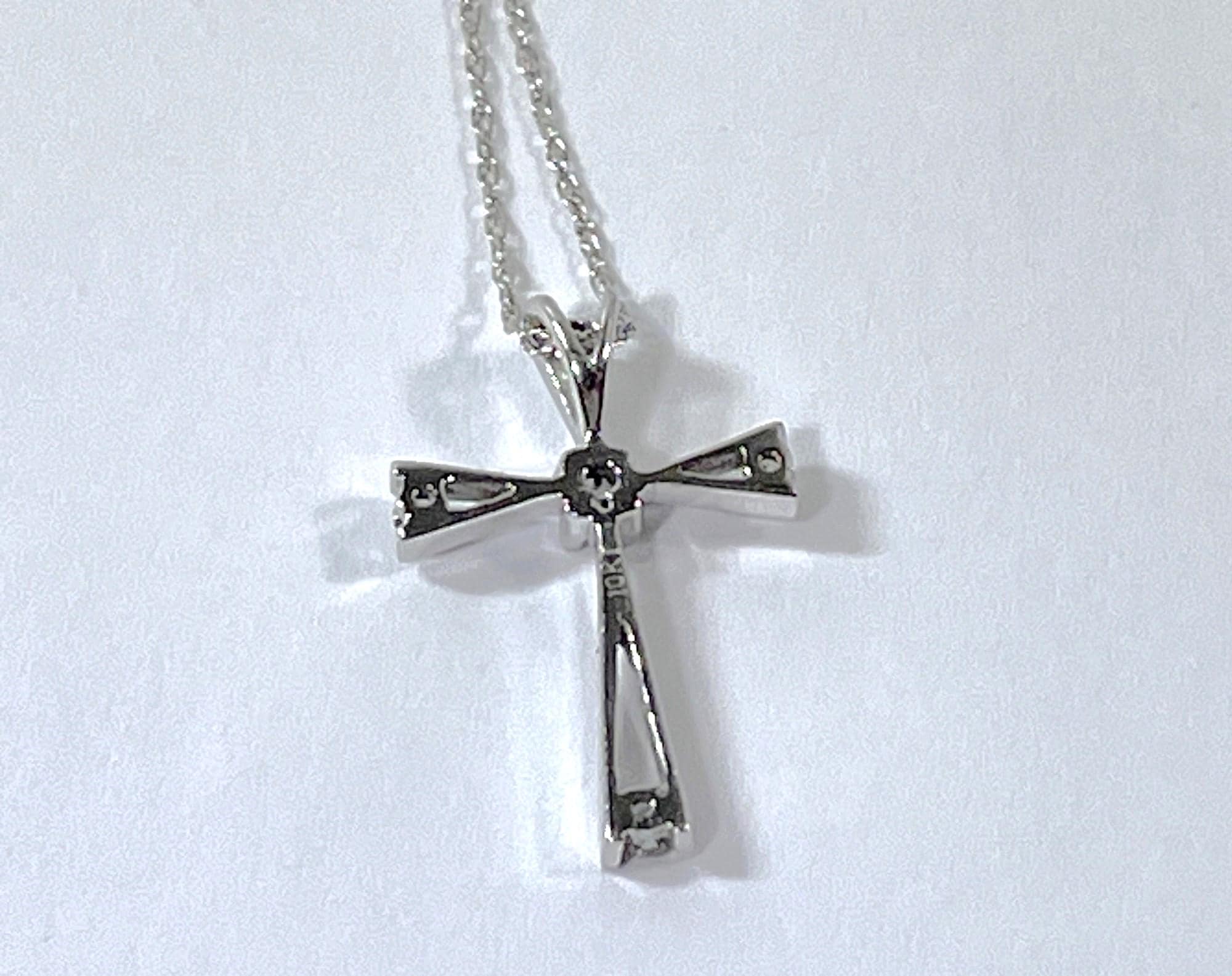 10K SOLID WHITE GOLD DIAMOND CROSS NECKLACE.