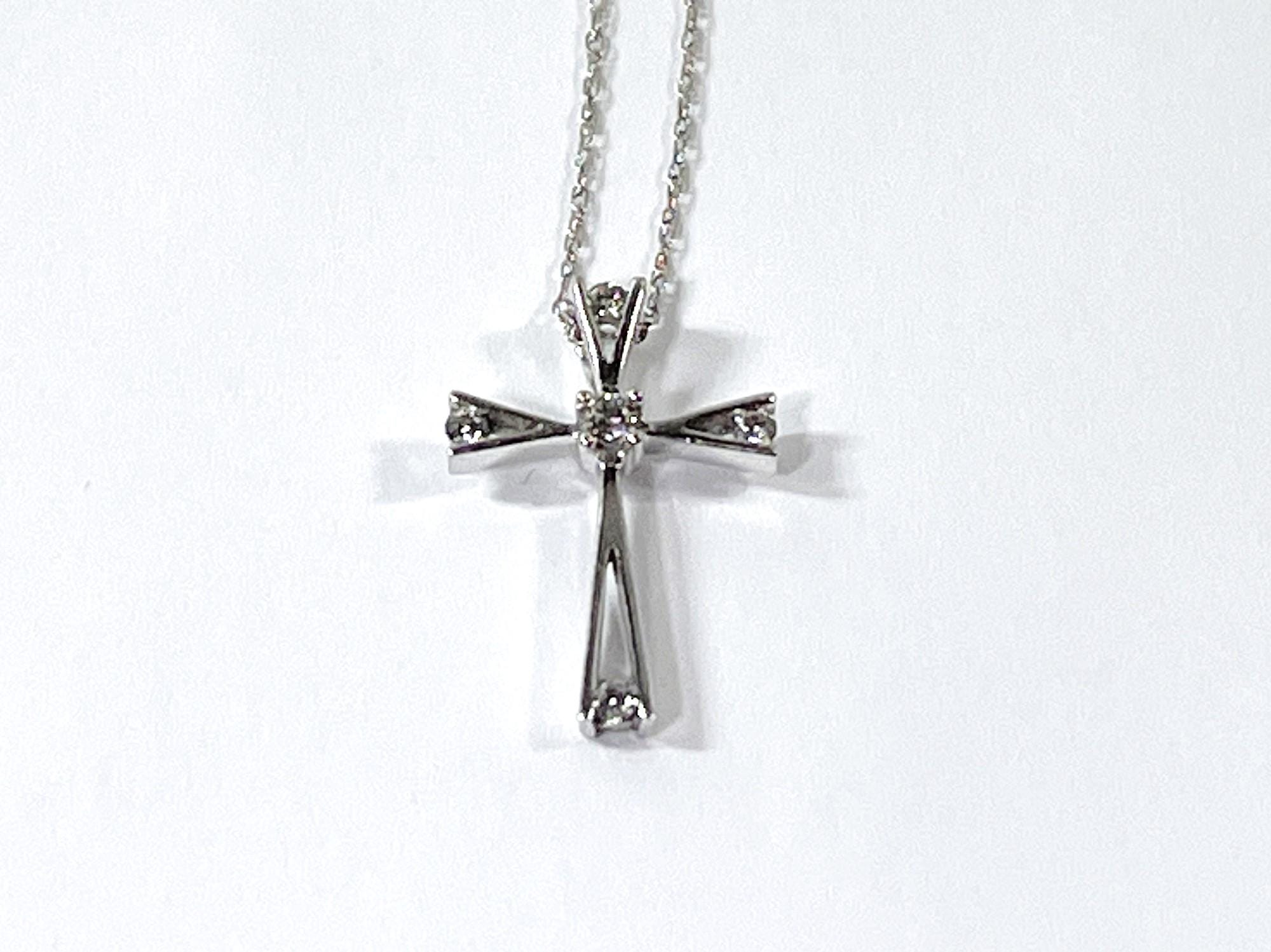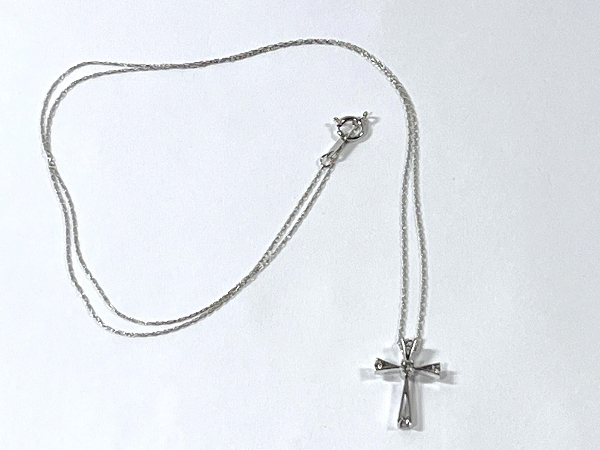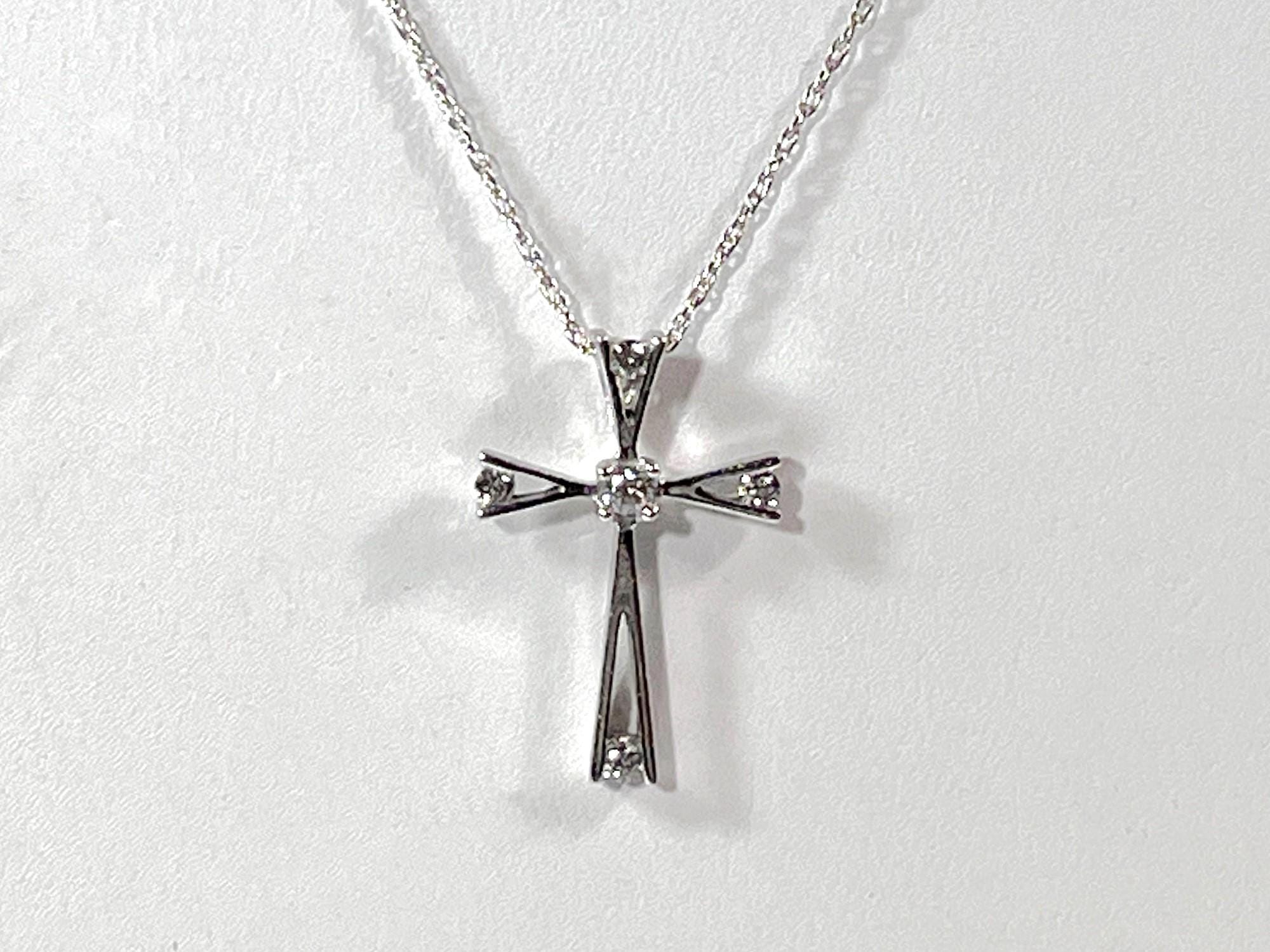 10K SOLID WHITE GOLD DIAMOND CROSS NECKLACE.