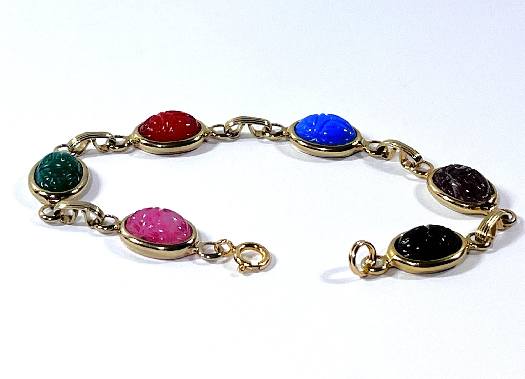 - 6 LARGE LUCITE MULTI GEMSTONES COLORS SCARABS.