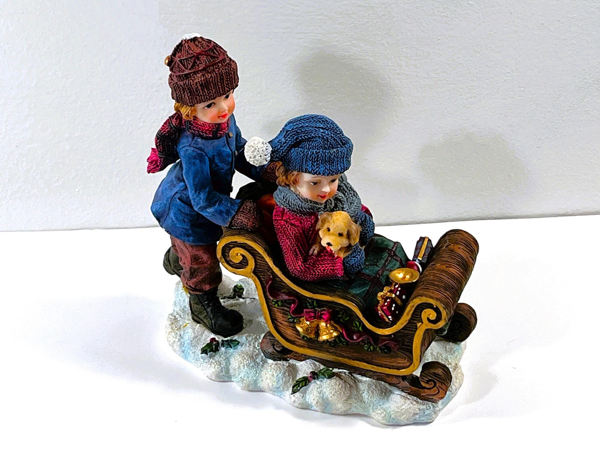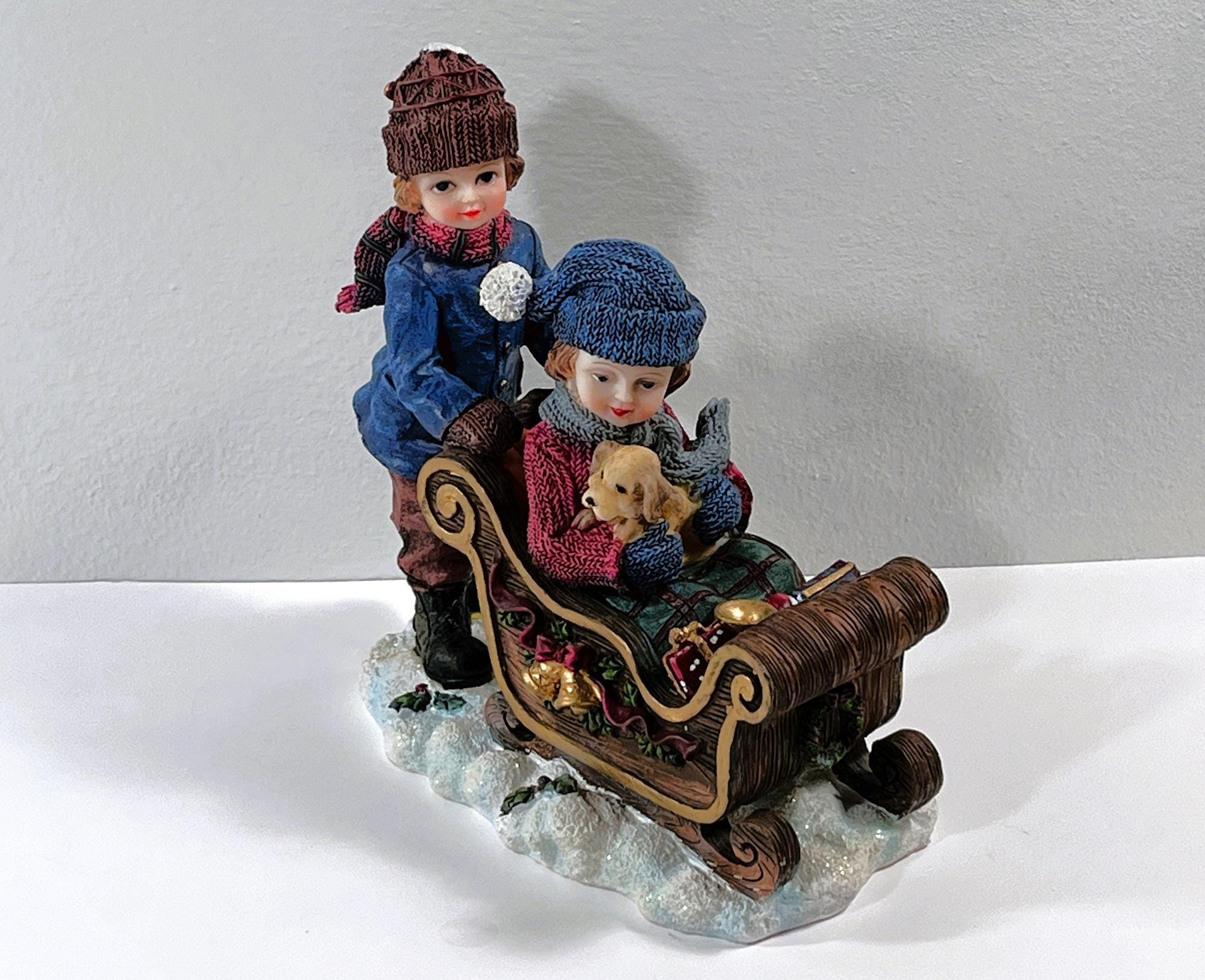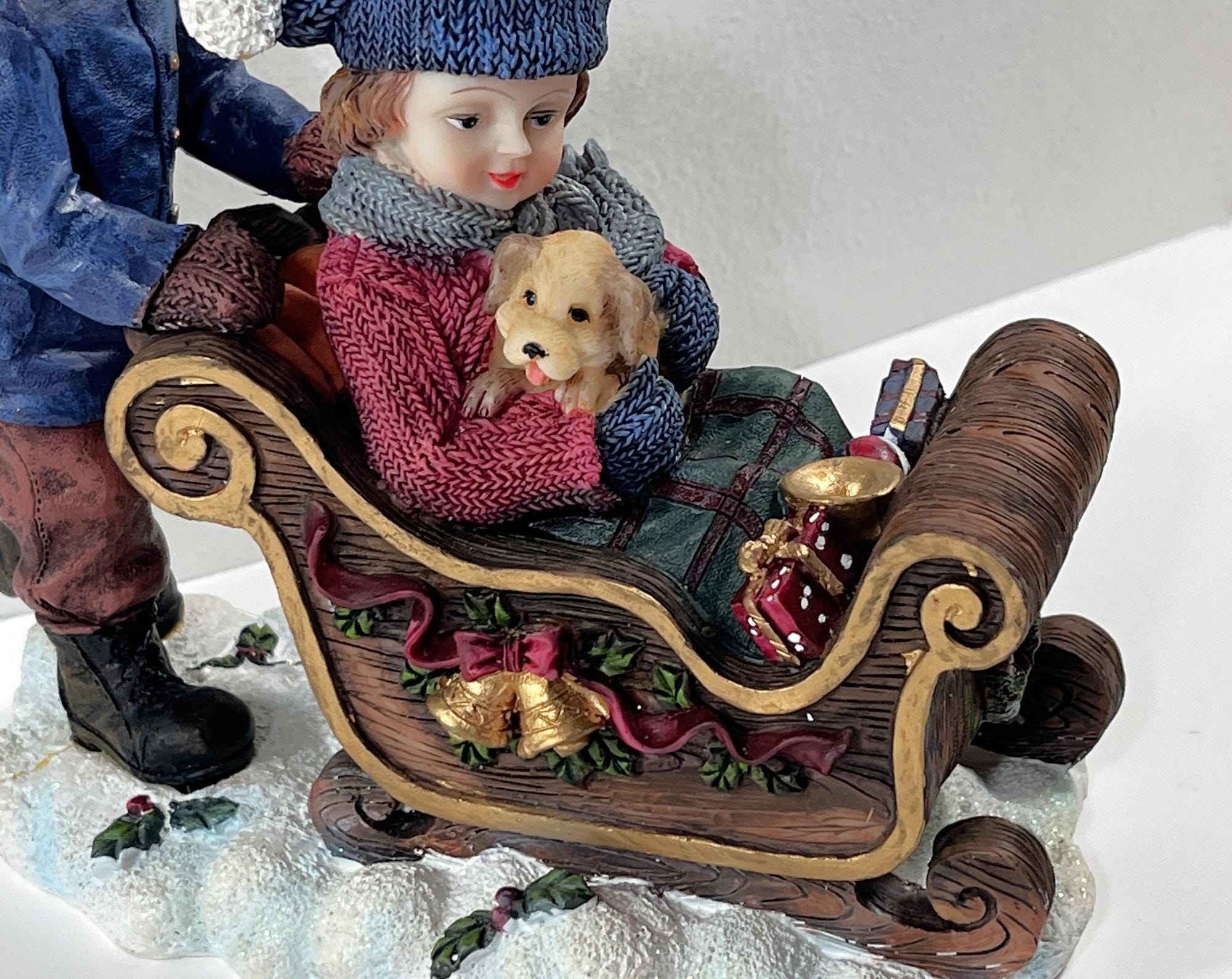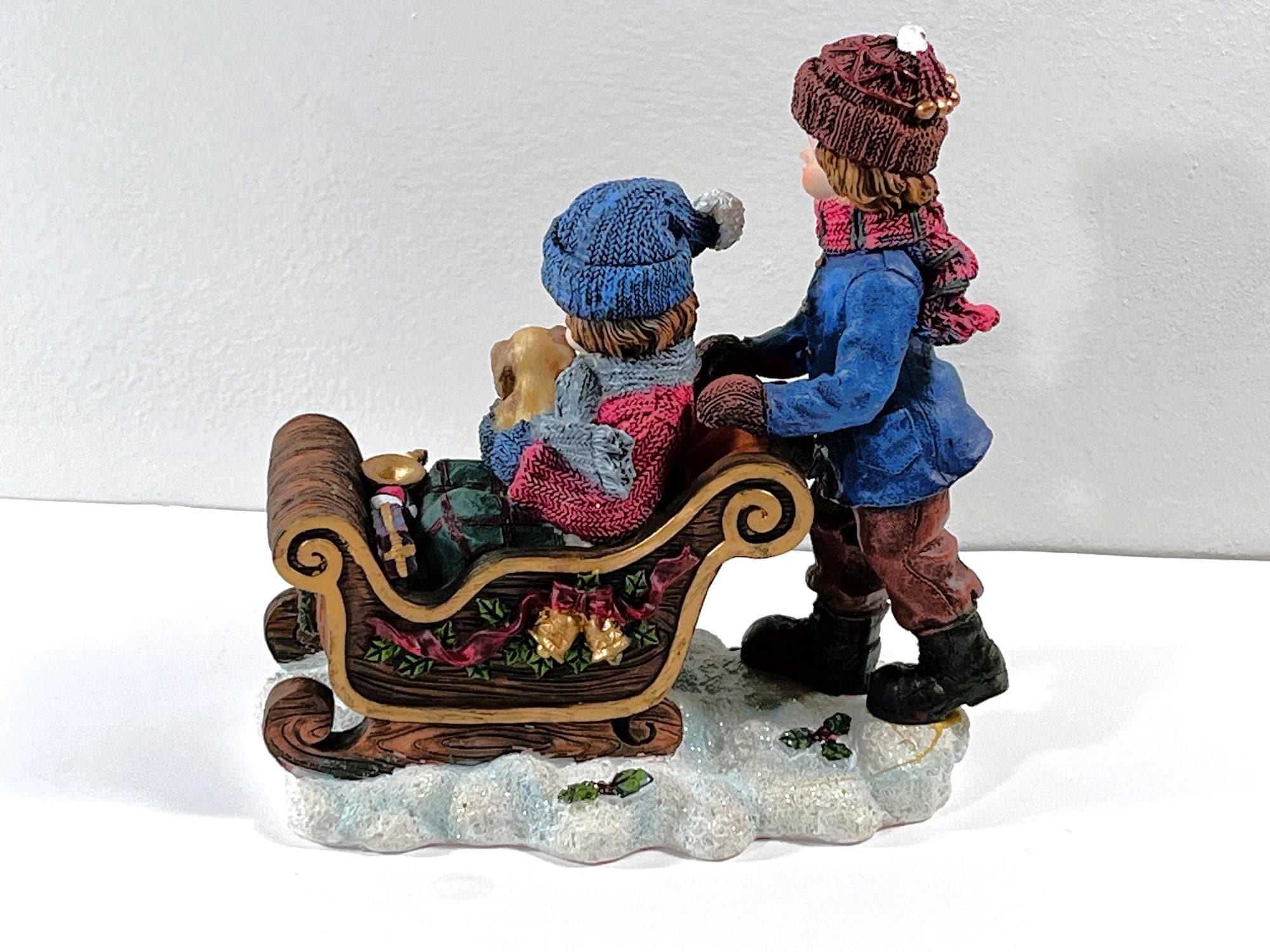 VINTAGE ©1993 CHRISTMAS SNOW DECORATED SLEDGE. BISQUE PORCELAIN.