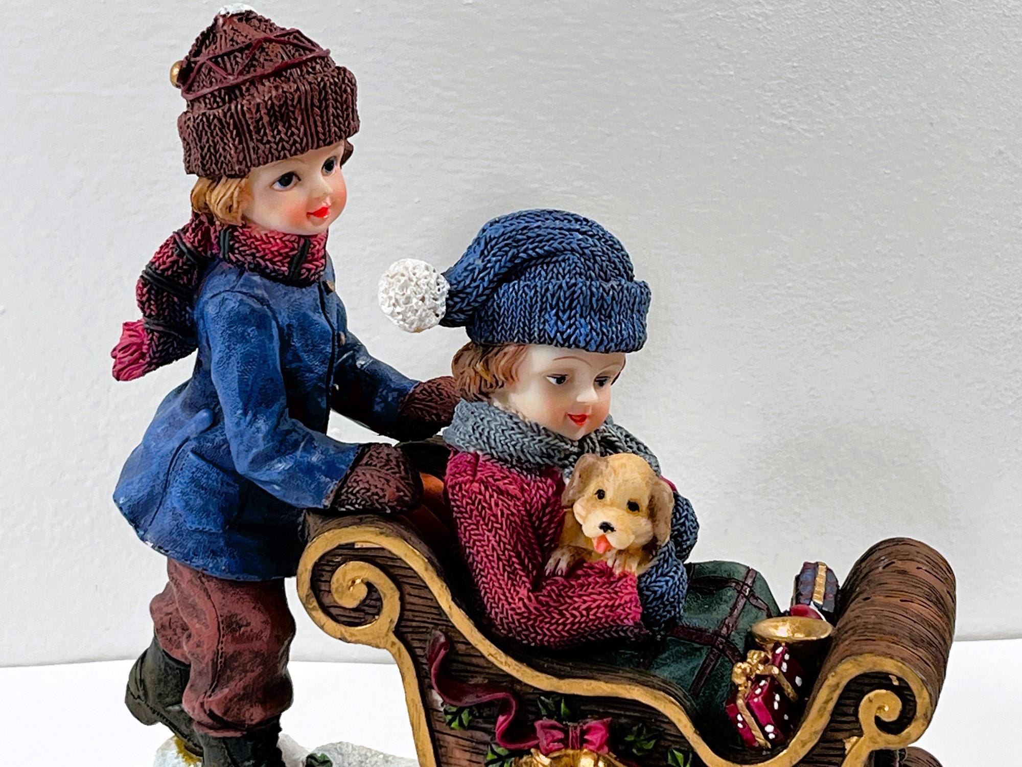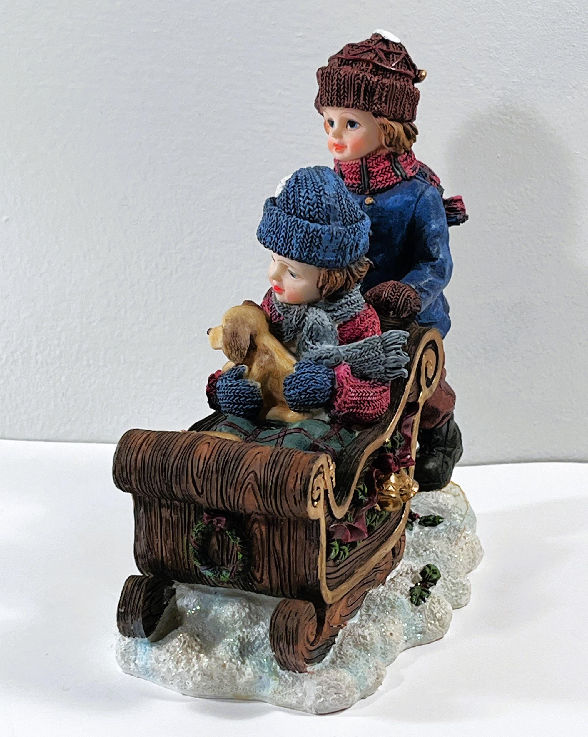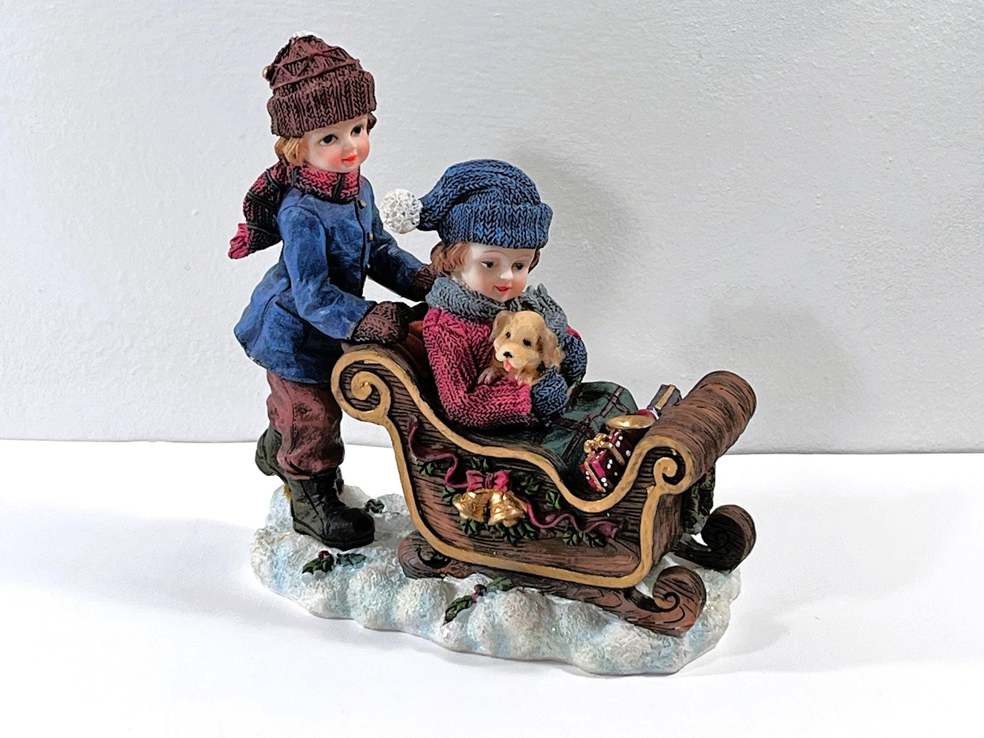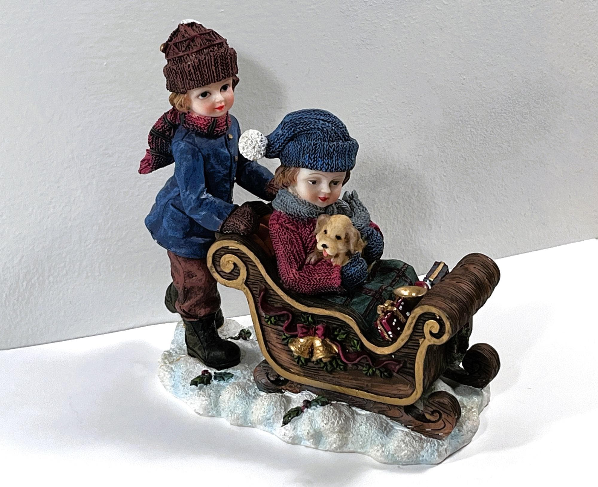 VINTAGE ©1993 CHRISTMAS SNOW DECORATED SLEDGE. BISQUE PORCELAIN.