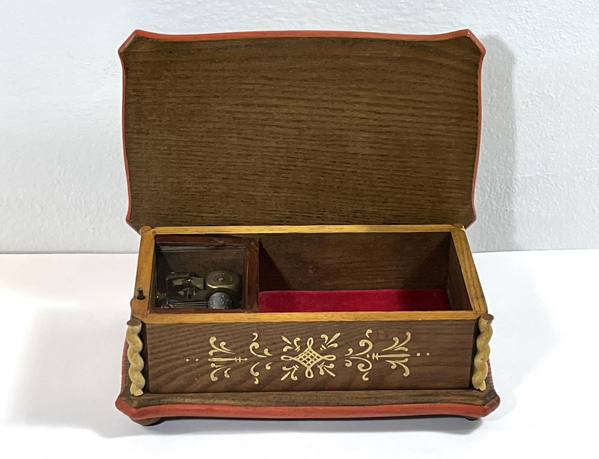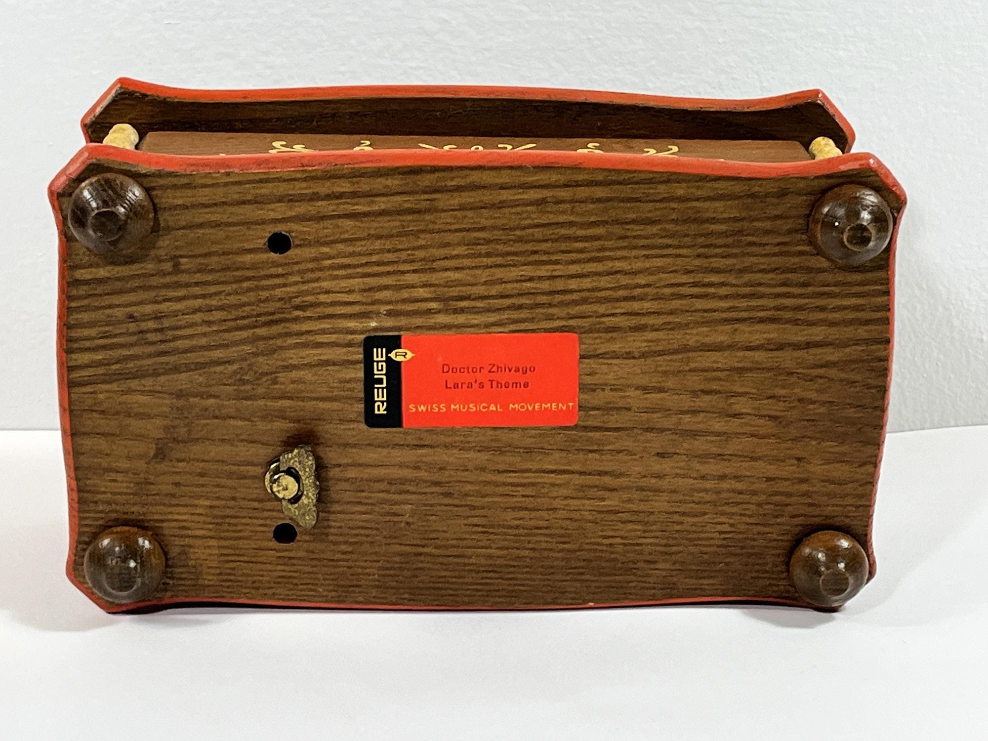 - MUSIC STARTS WHEN LID OPENS, WINDING KEY ON THE BOTTOM, PERFECT FUNCTION
