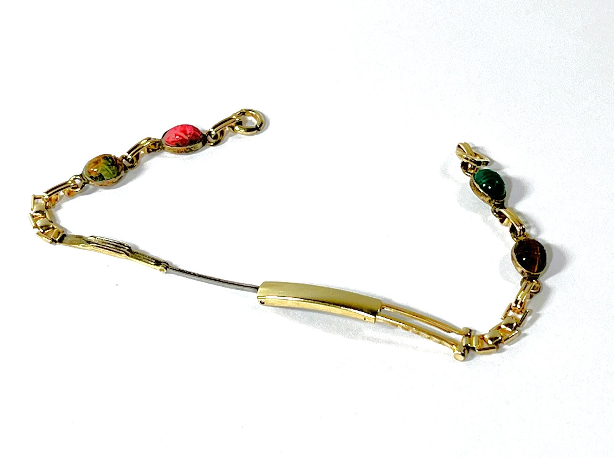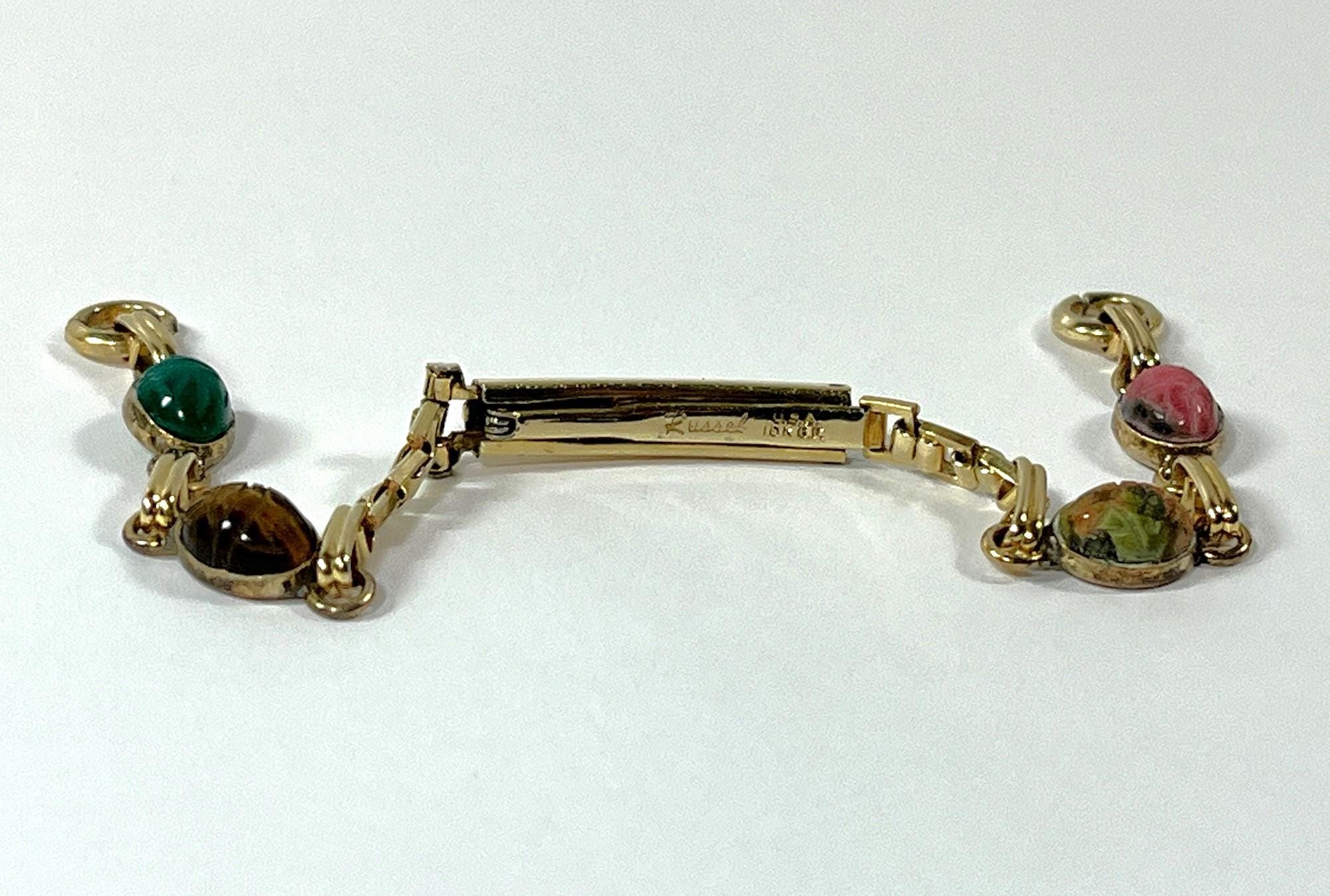 VINTAGE RARE RUSSEL® USA 10K GOLD FILLED WOMEN SCARAB BRACELET WATCH BAND.
