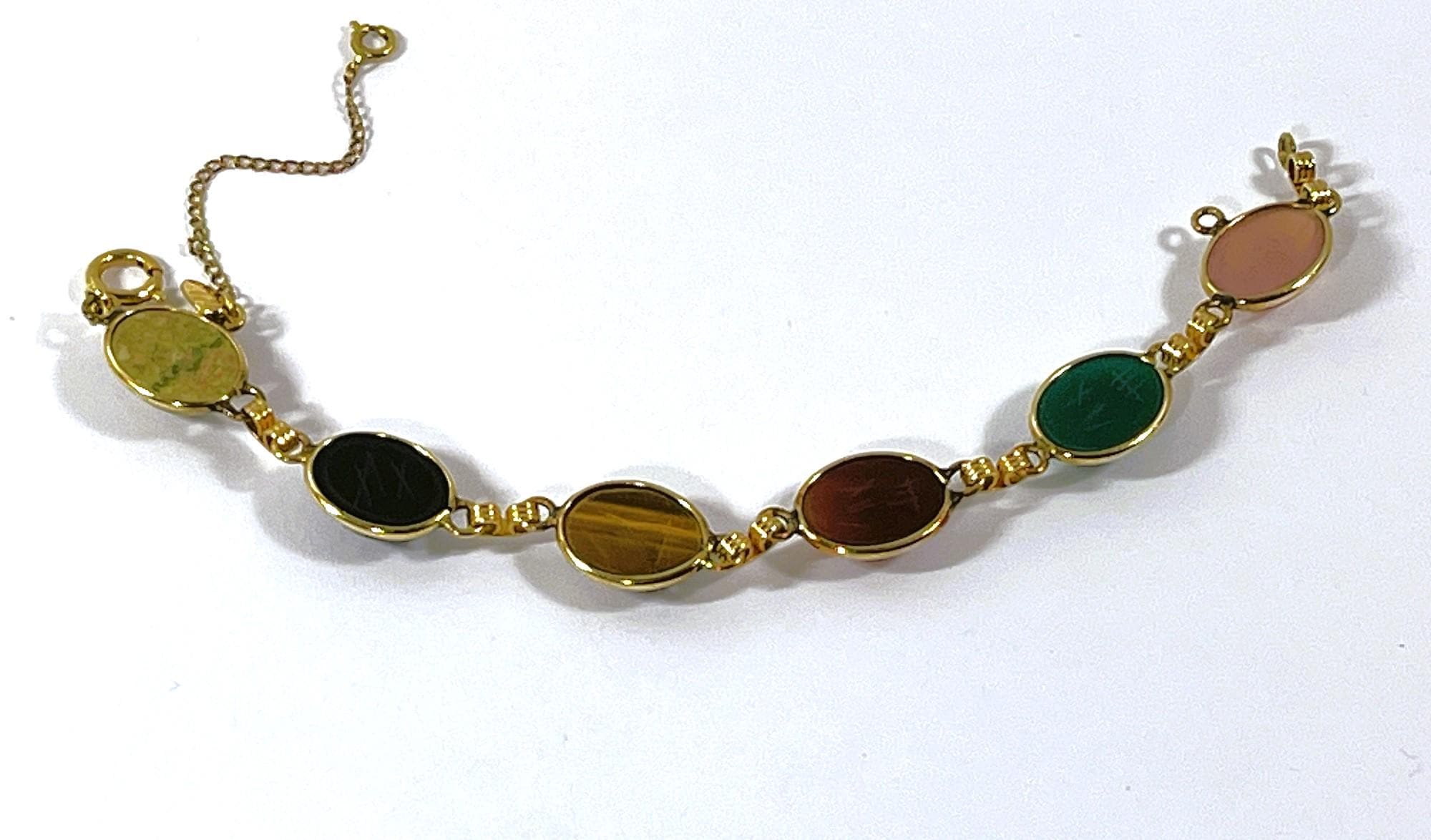 - GEMS: TIGER'S EYE, GREEN NEPHRITE JADE, BLACK ONYX, UNAKITE, RED CARNELIAN & TOURMALINE