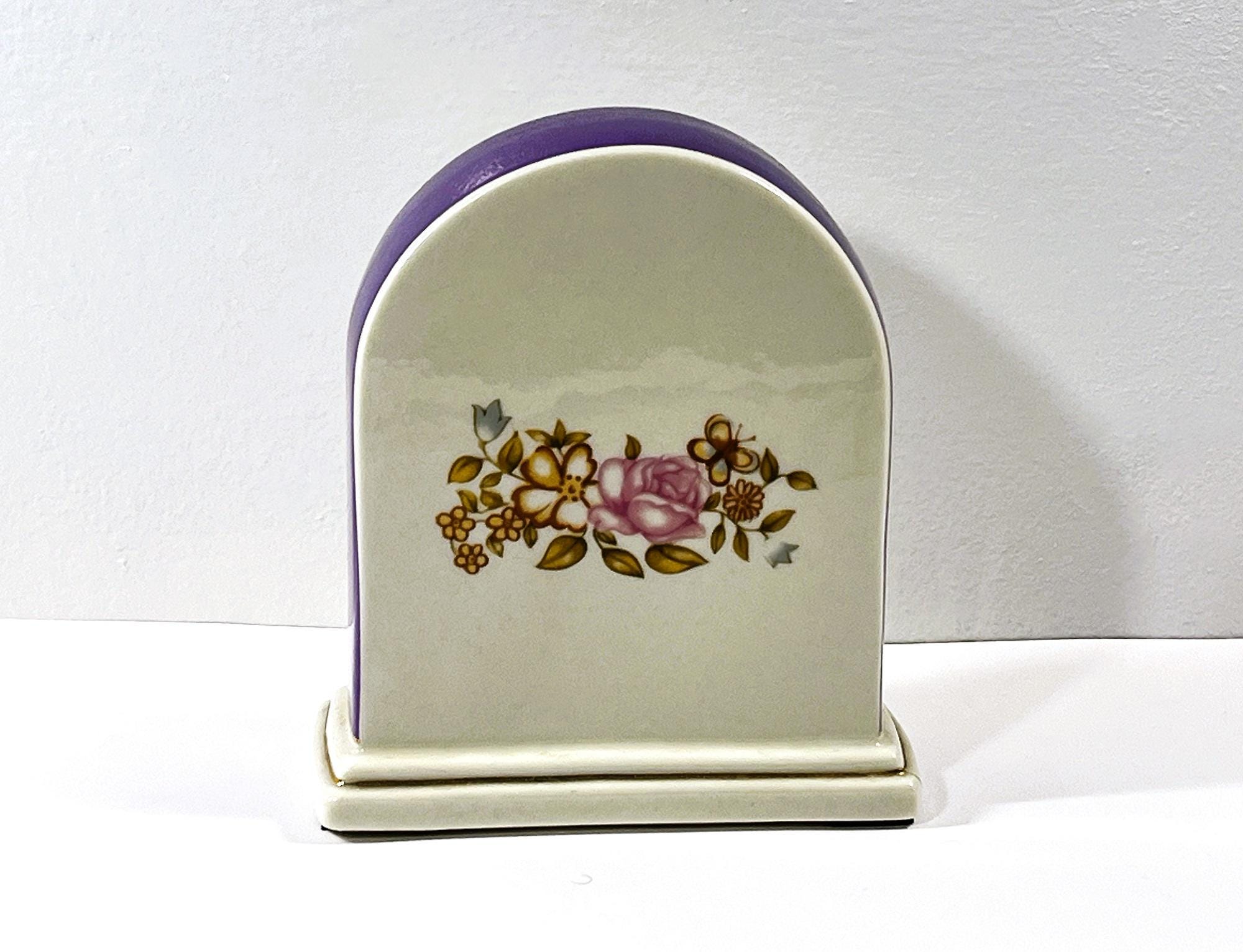 - COLORFUL ROSES & FLOWERS ON FRON AND BACK. PURPLE ENAMEL OVER THE SIDES.