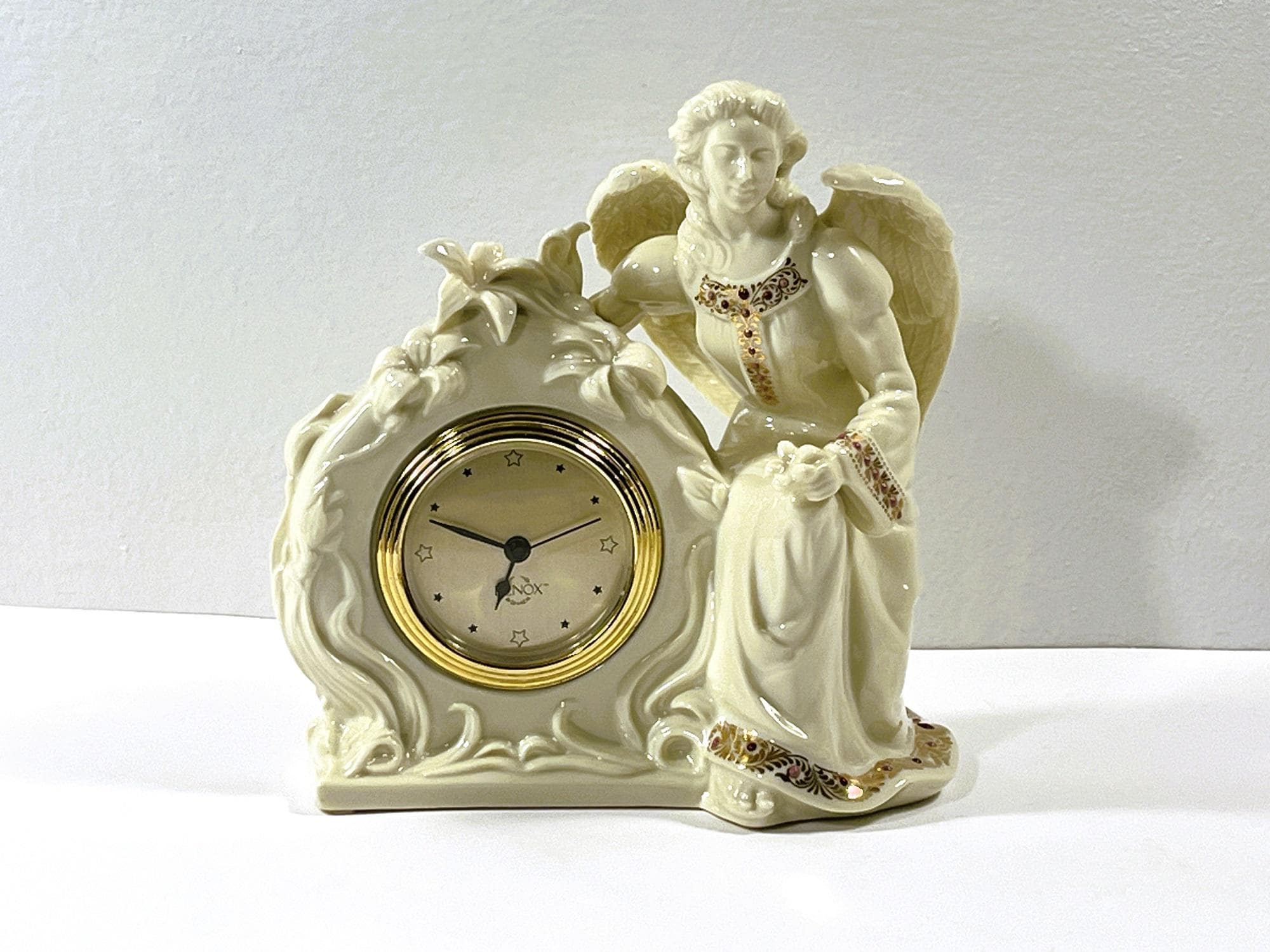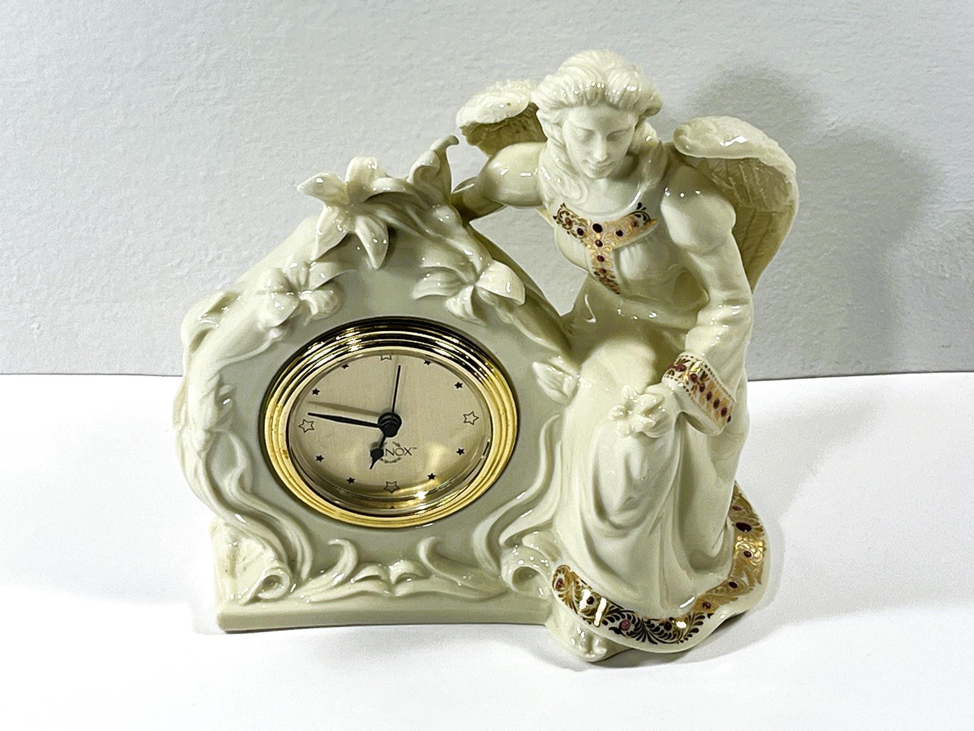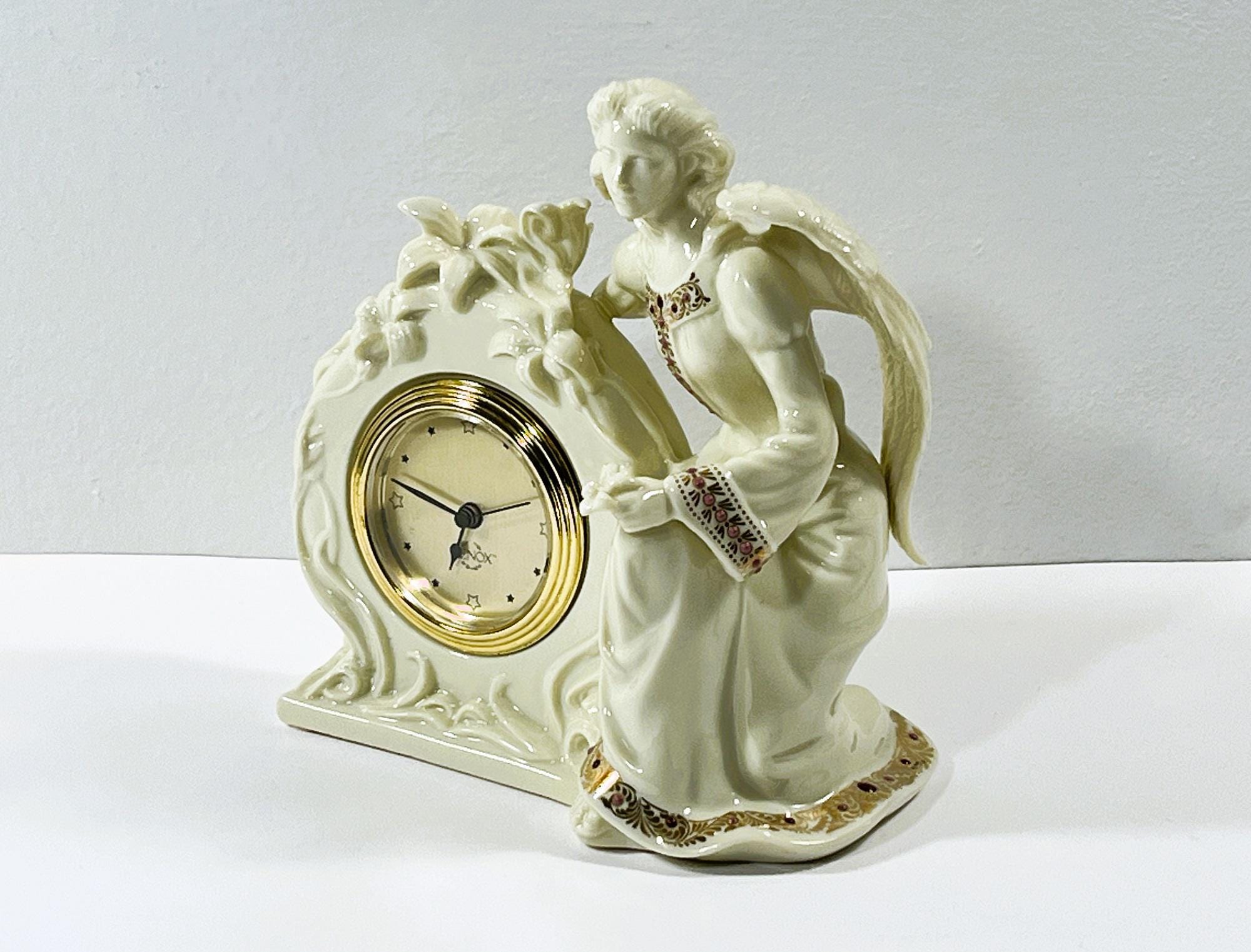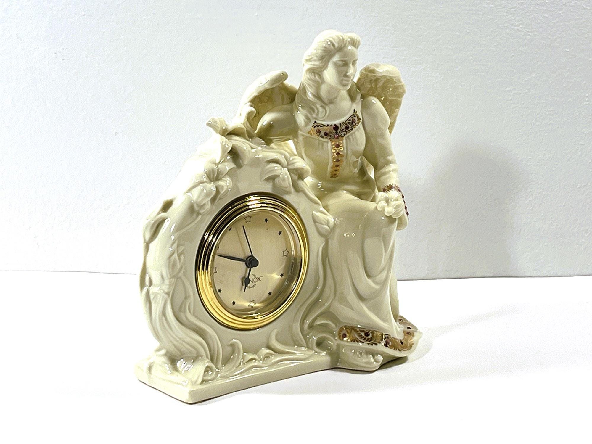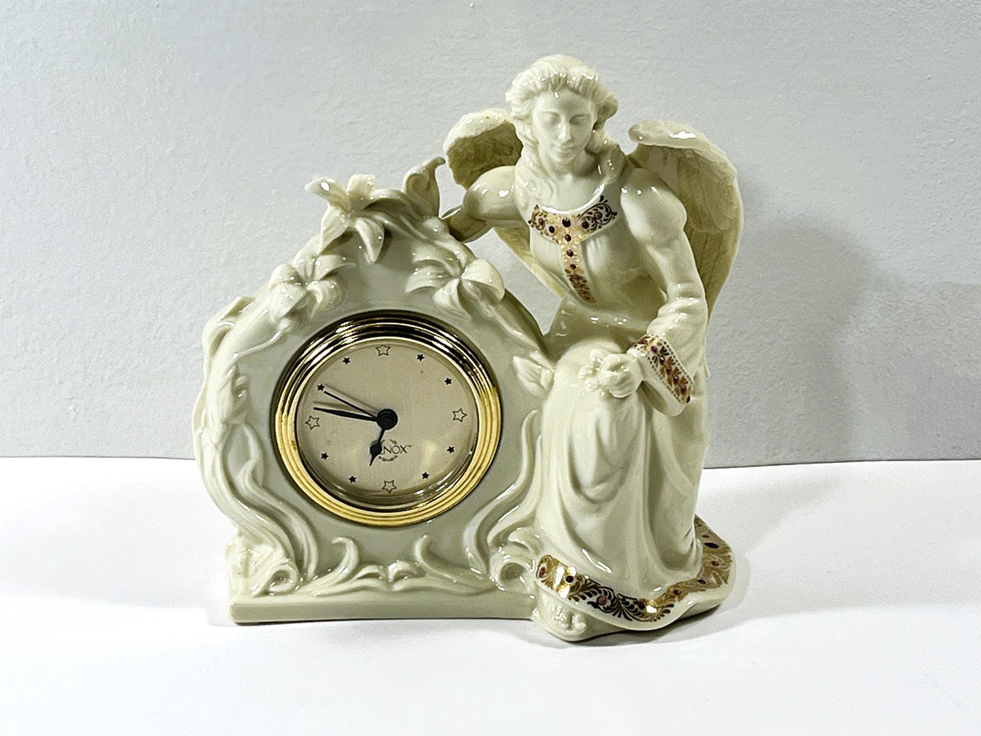 VINTAGE LENOX™ JEWELS COLLECTION ANGEL FIGURINE BONE CHINA MANTLE CLOCK.