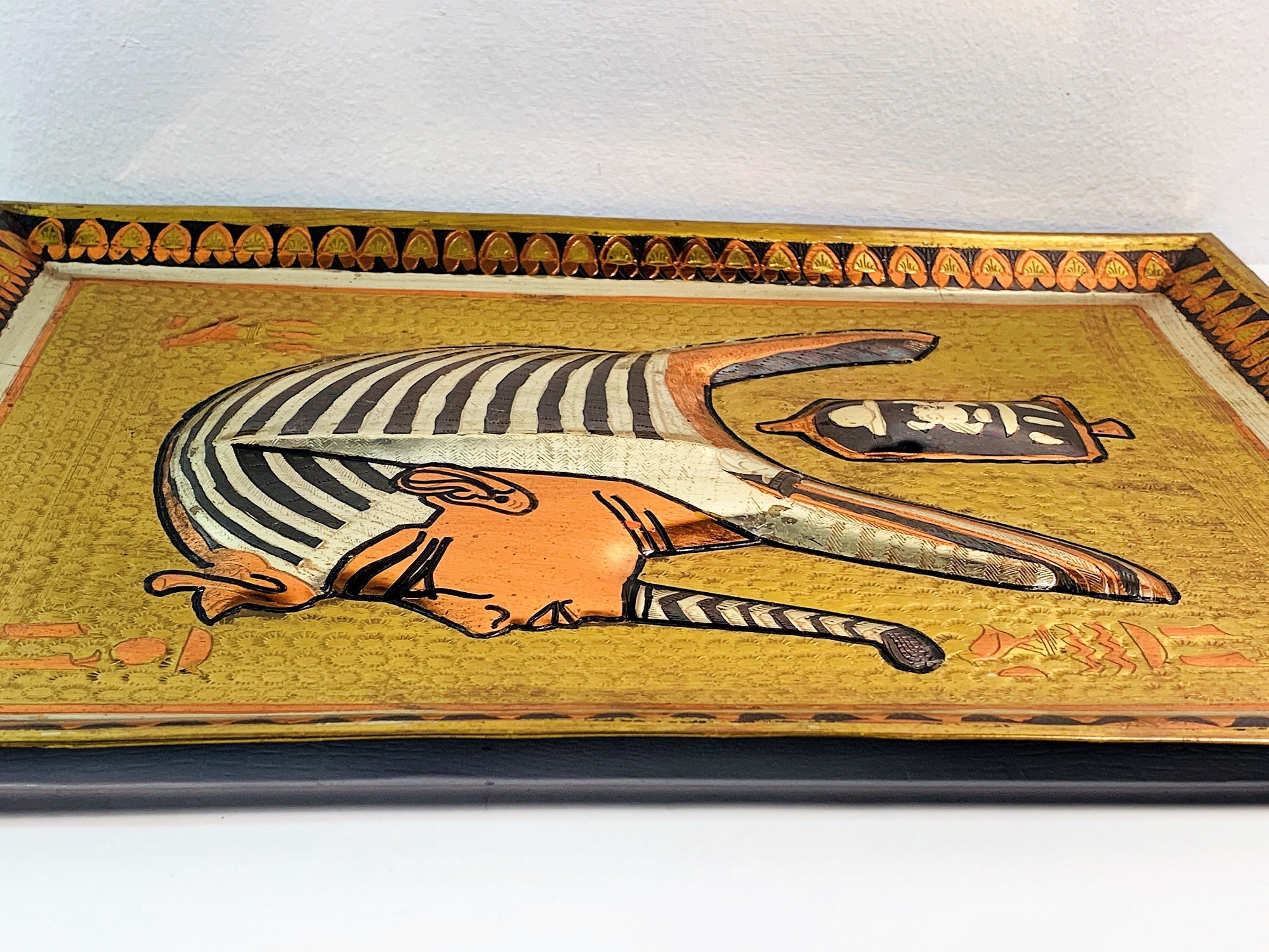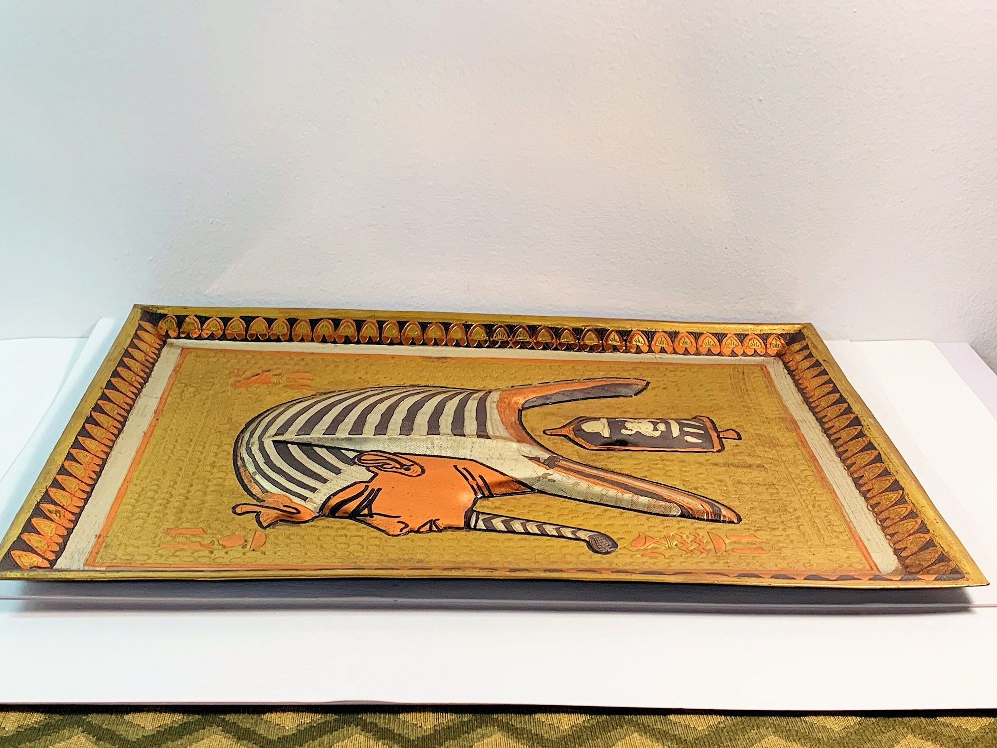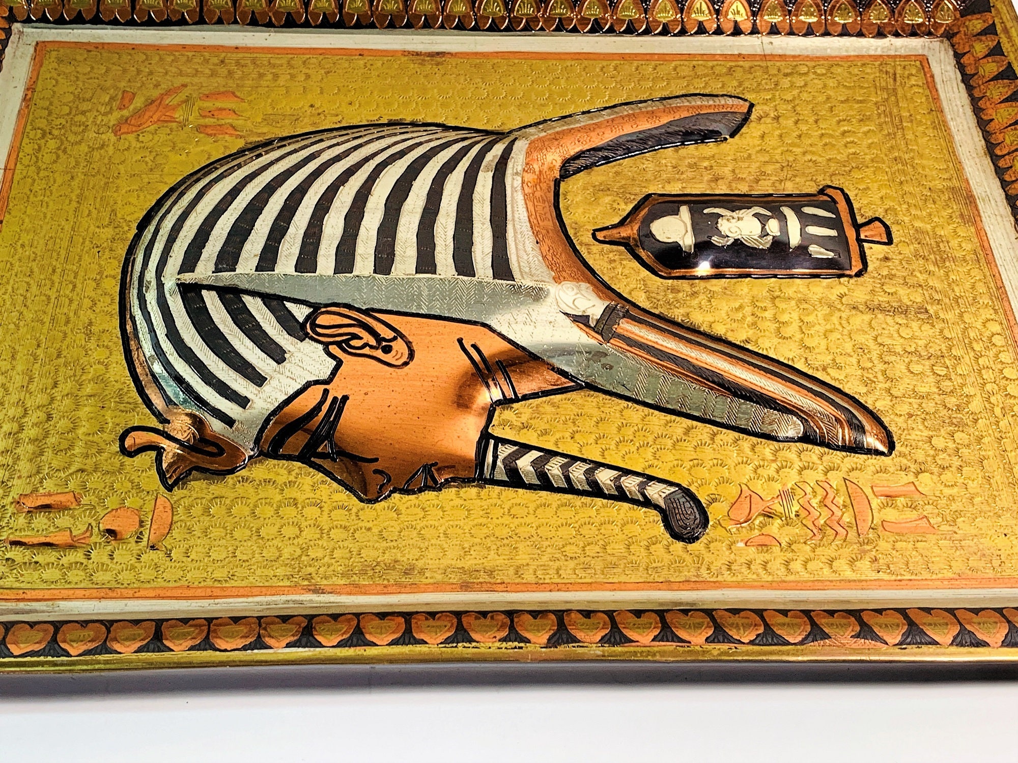 - EMBOSSED HAMMERED OUT RELIEF OF KING TUT GOLD MASK & HIEROGLYPHICS.
