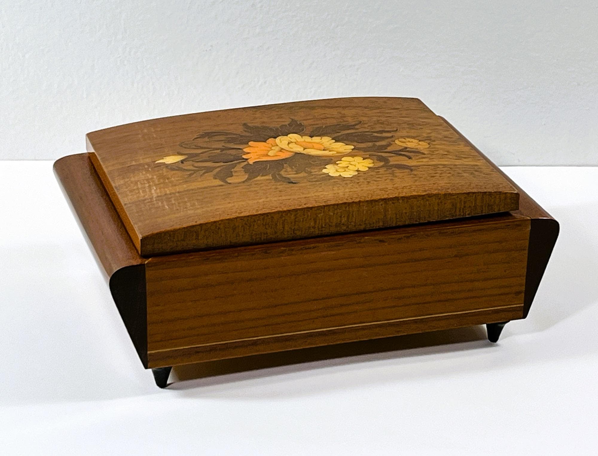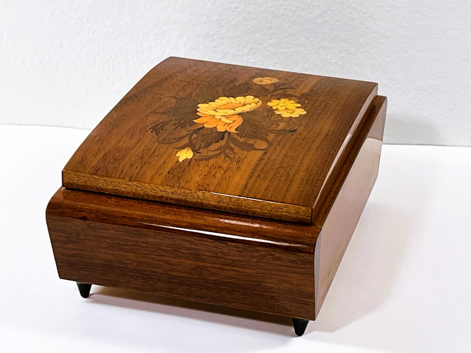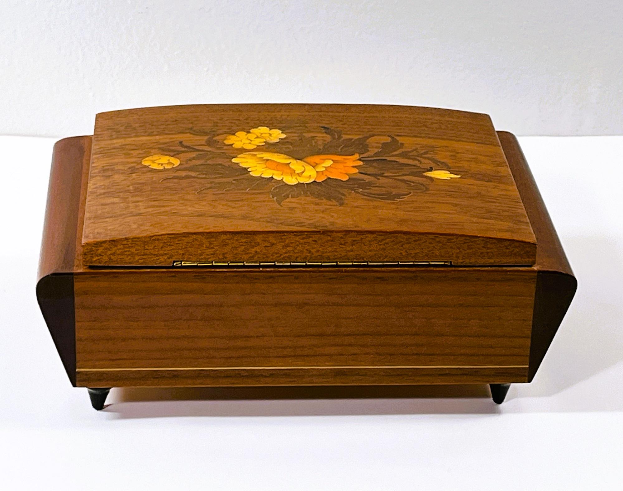 - BOX: HANDCRAFTED IN ITALY, WILD ROSES SCENERY INLAY ON THE LID. UNIQUE SHAPE.