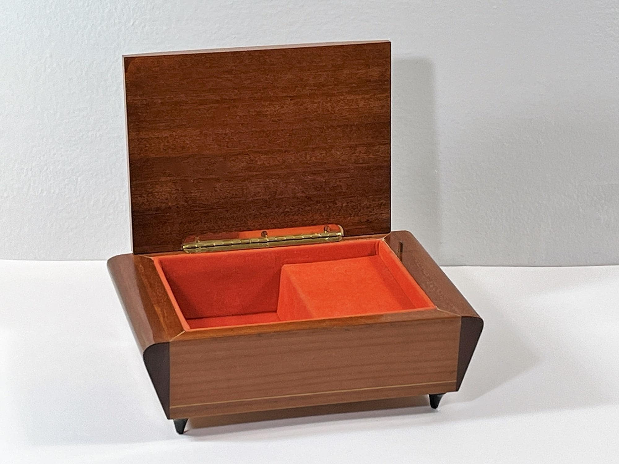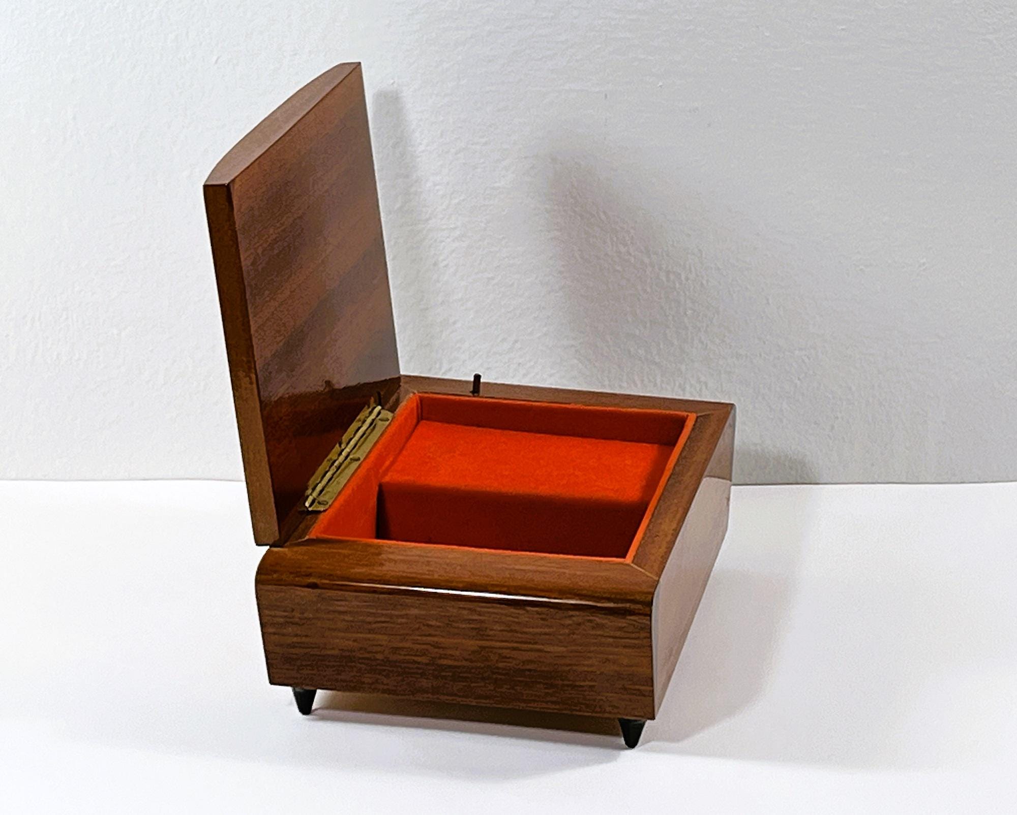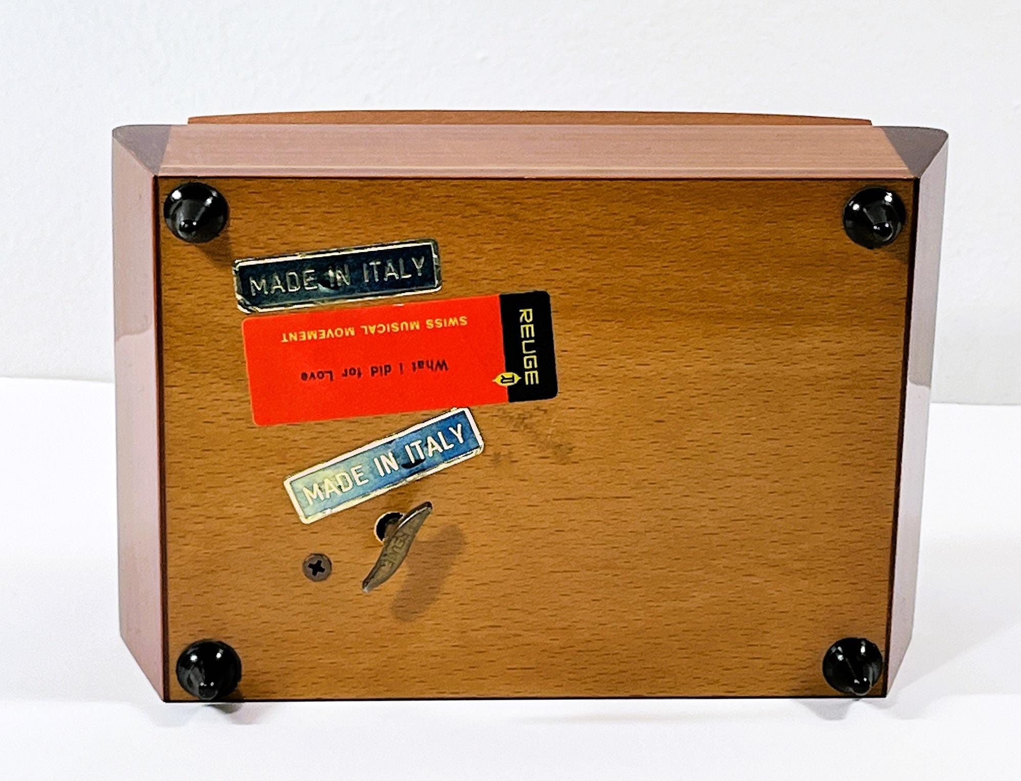 - MUSIC STARTS WHEN LID OPENS, WINDING KEY ON THE BOTTOM,