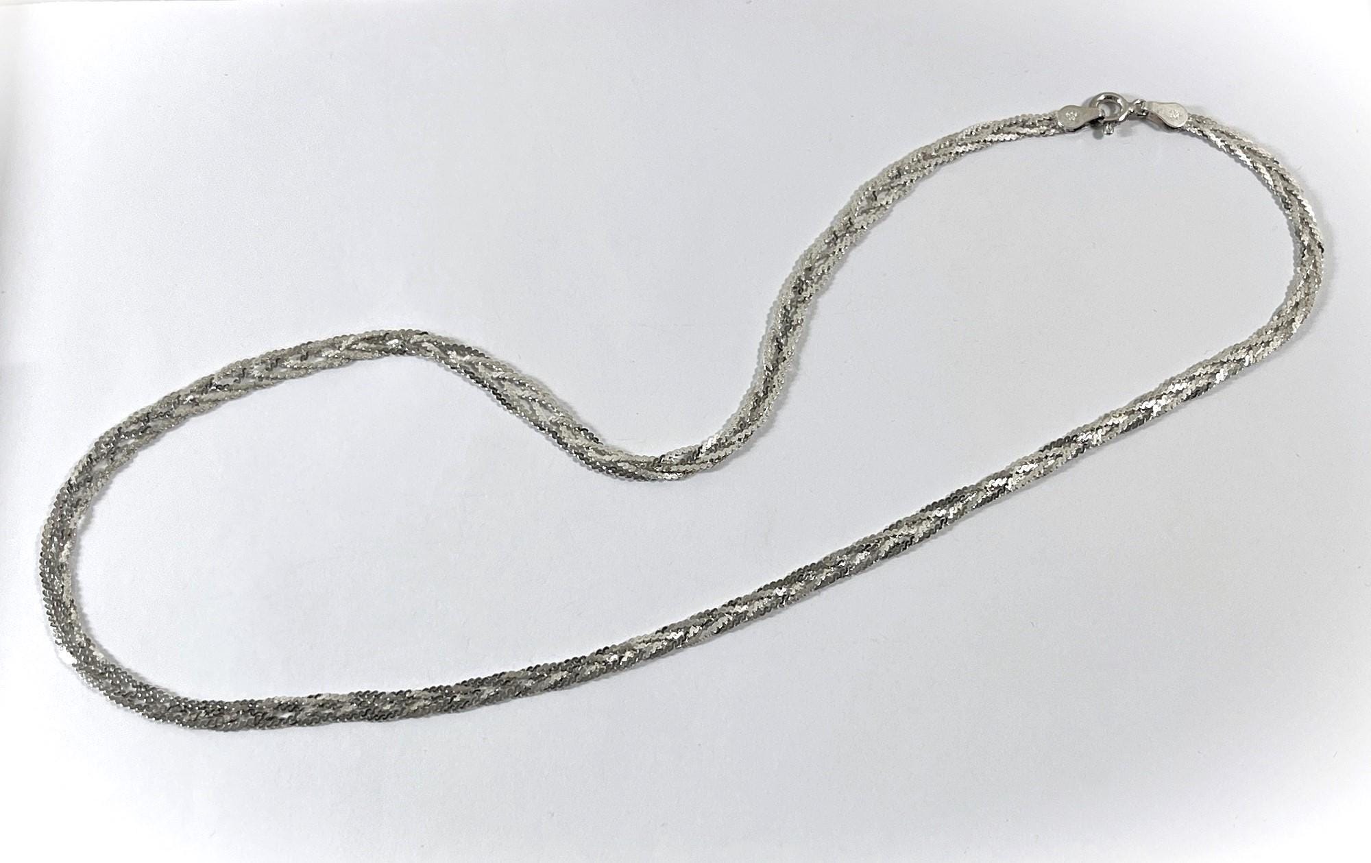 VINTAGE CLASSIC STERLING SILVER .925 BRAIDED TEXTURED HERRINGBONE NECKLACE.