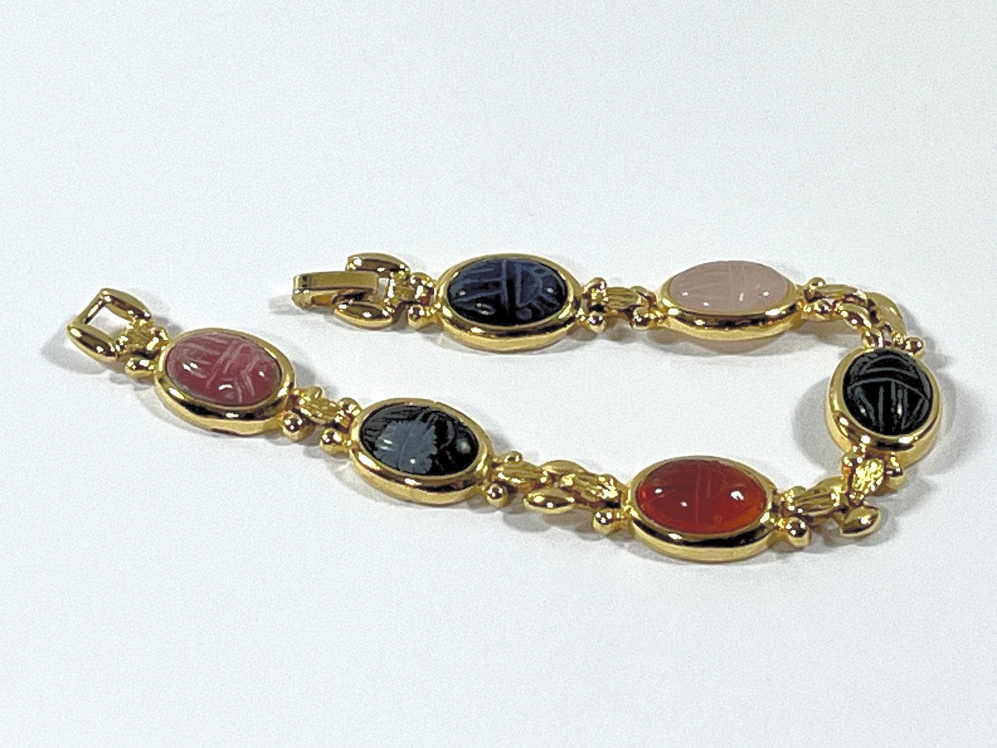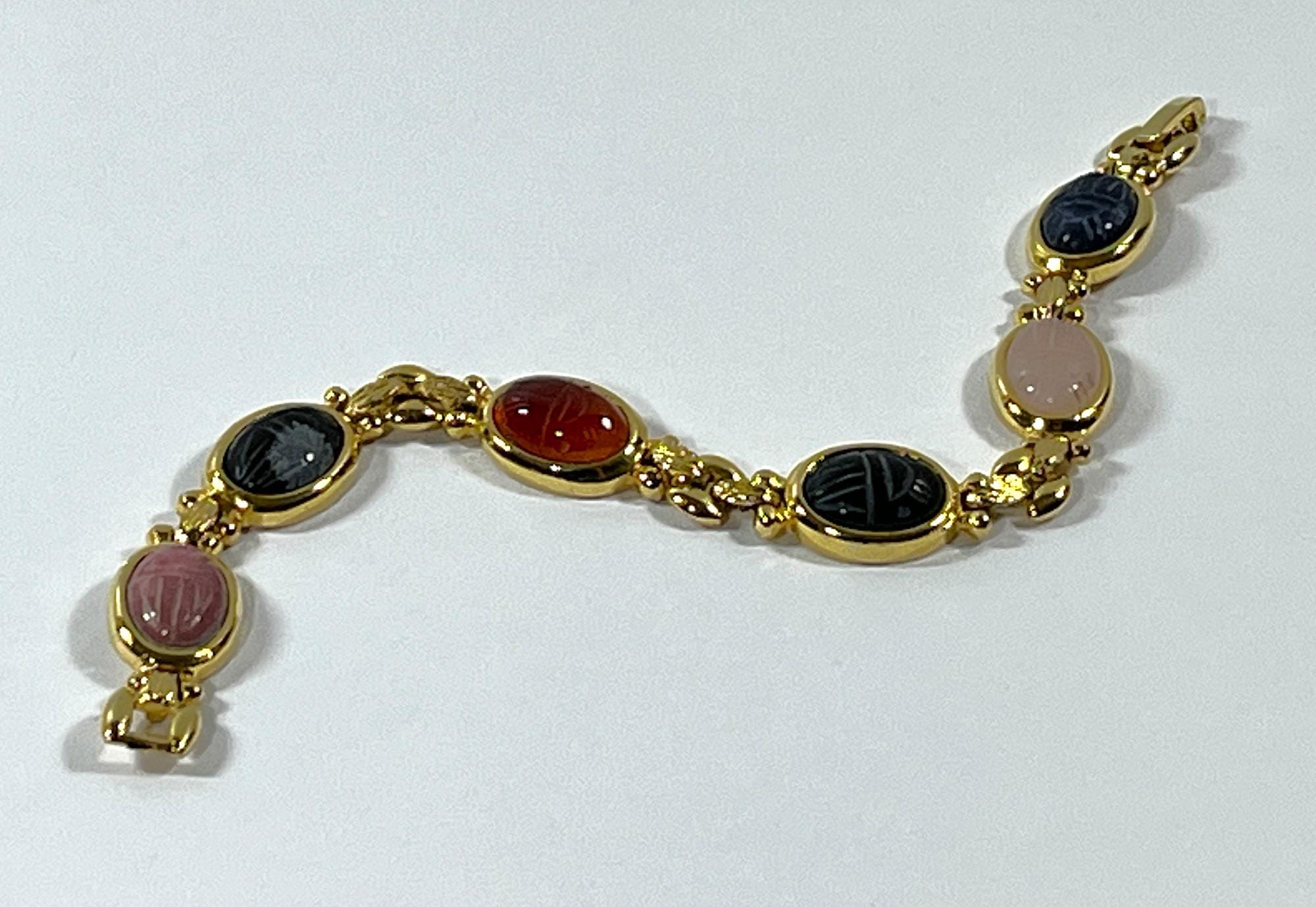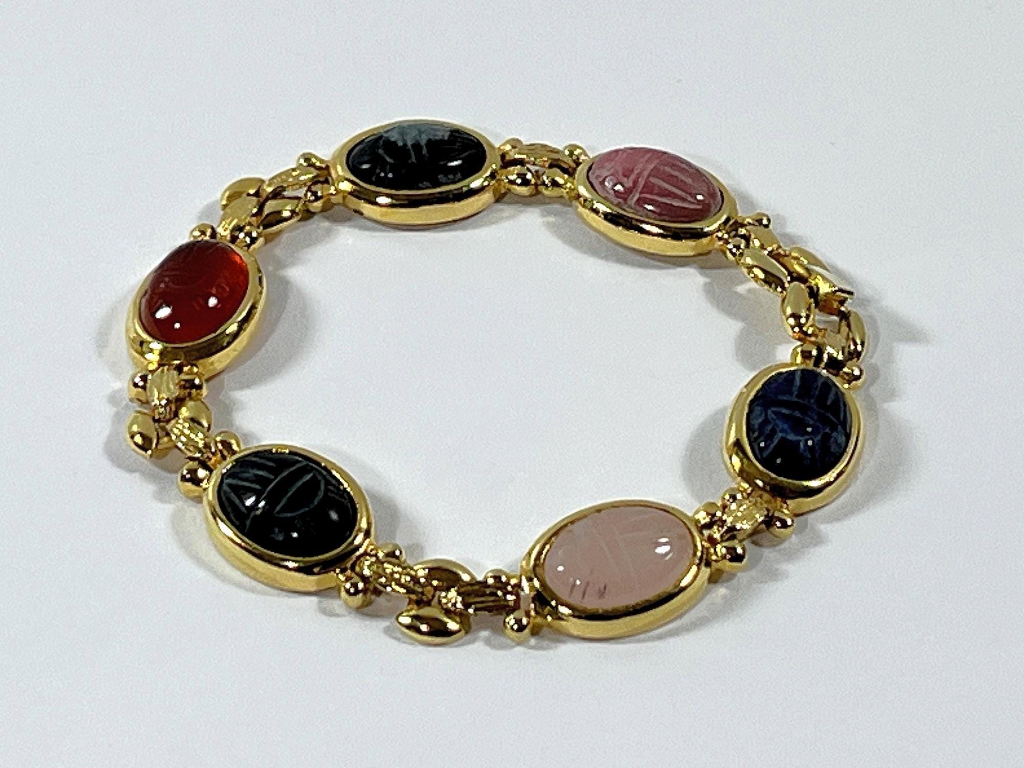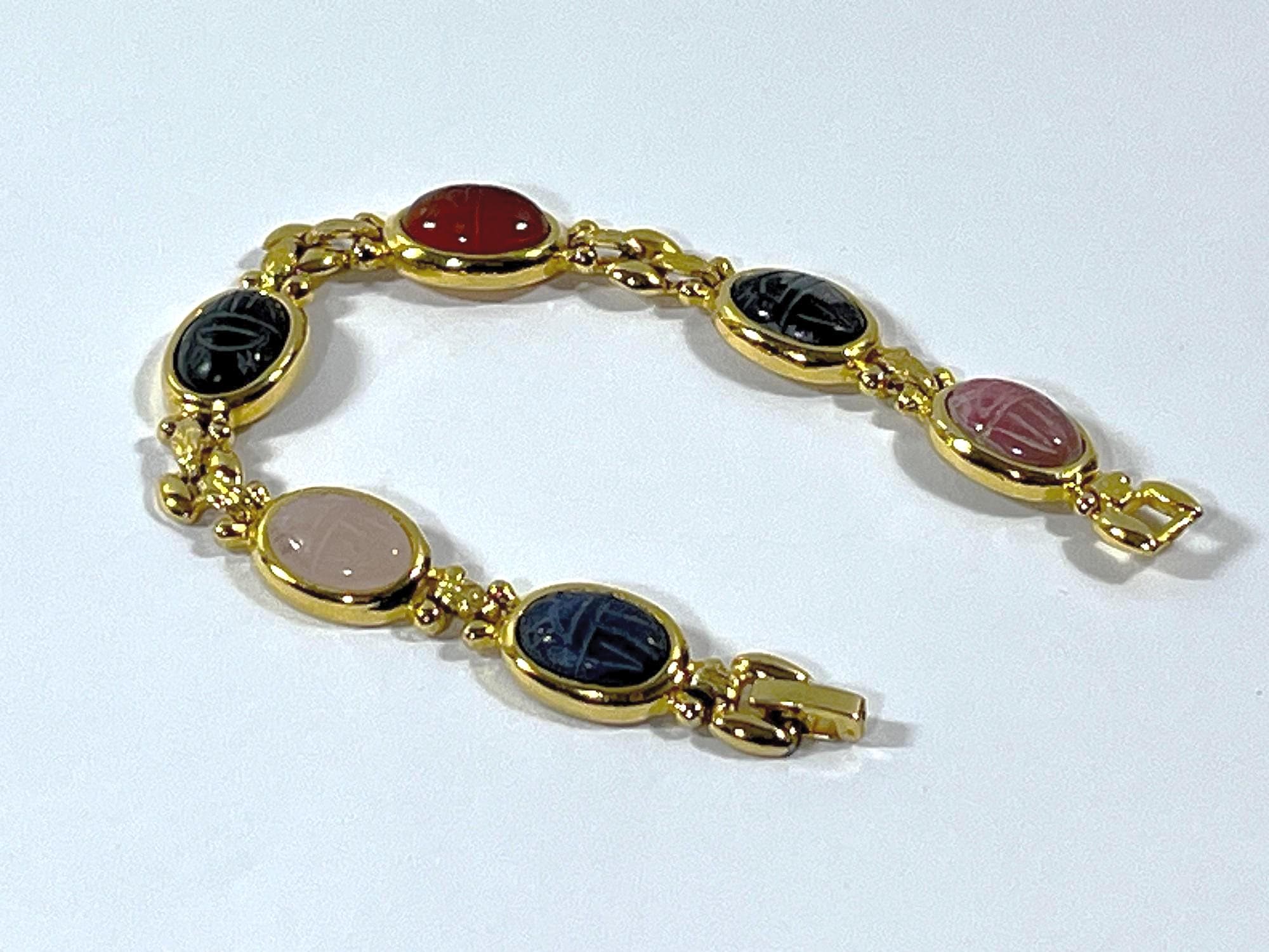 VINTAGE BEAUTIFUL GEMSTONE EGYPTIAN SCARABS BRACELET.