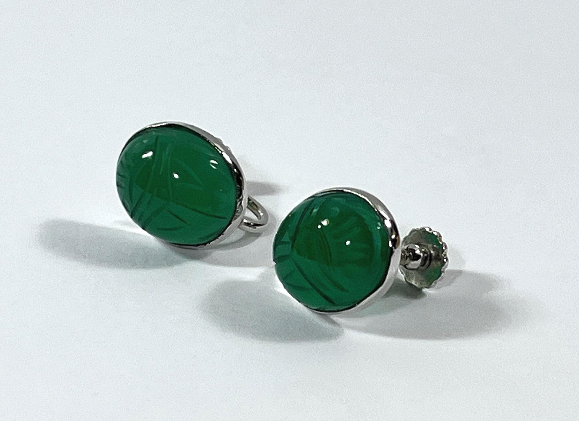 - CARVED GREEN CHRYSOPRASE GEMSTONE SCARABS 14 X 12 mm.
