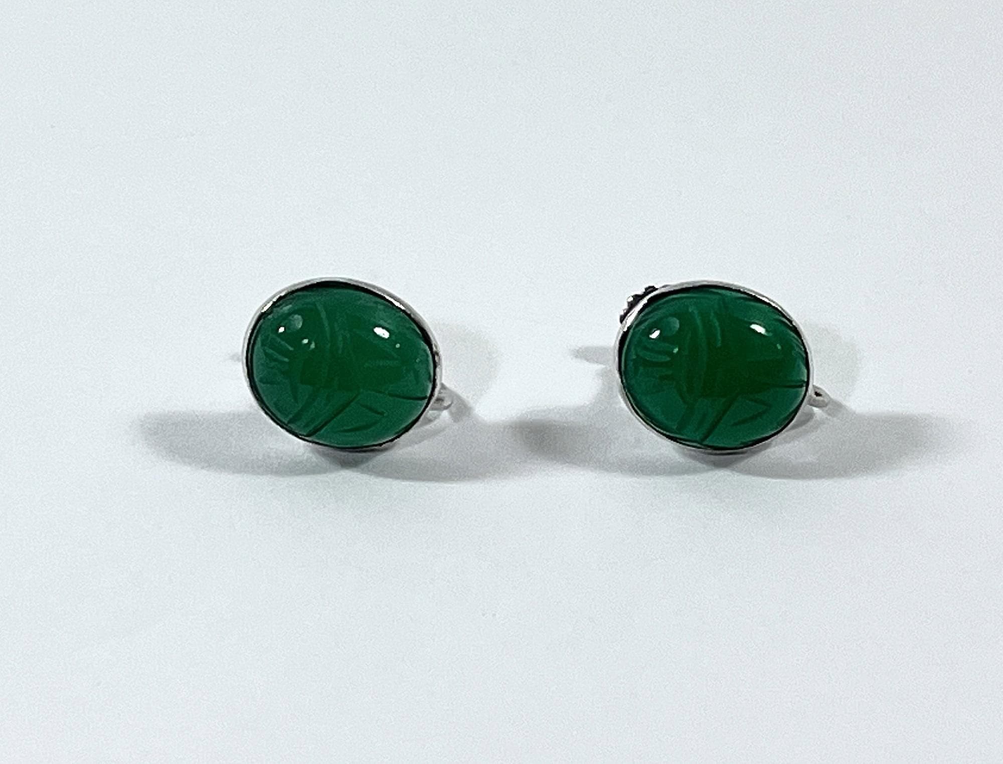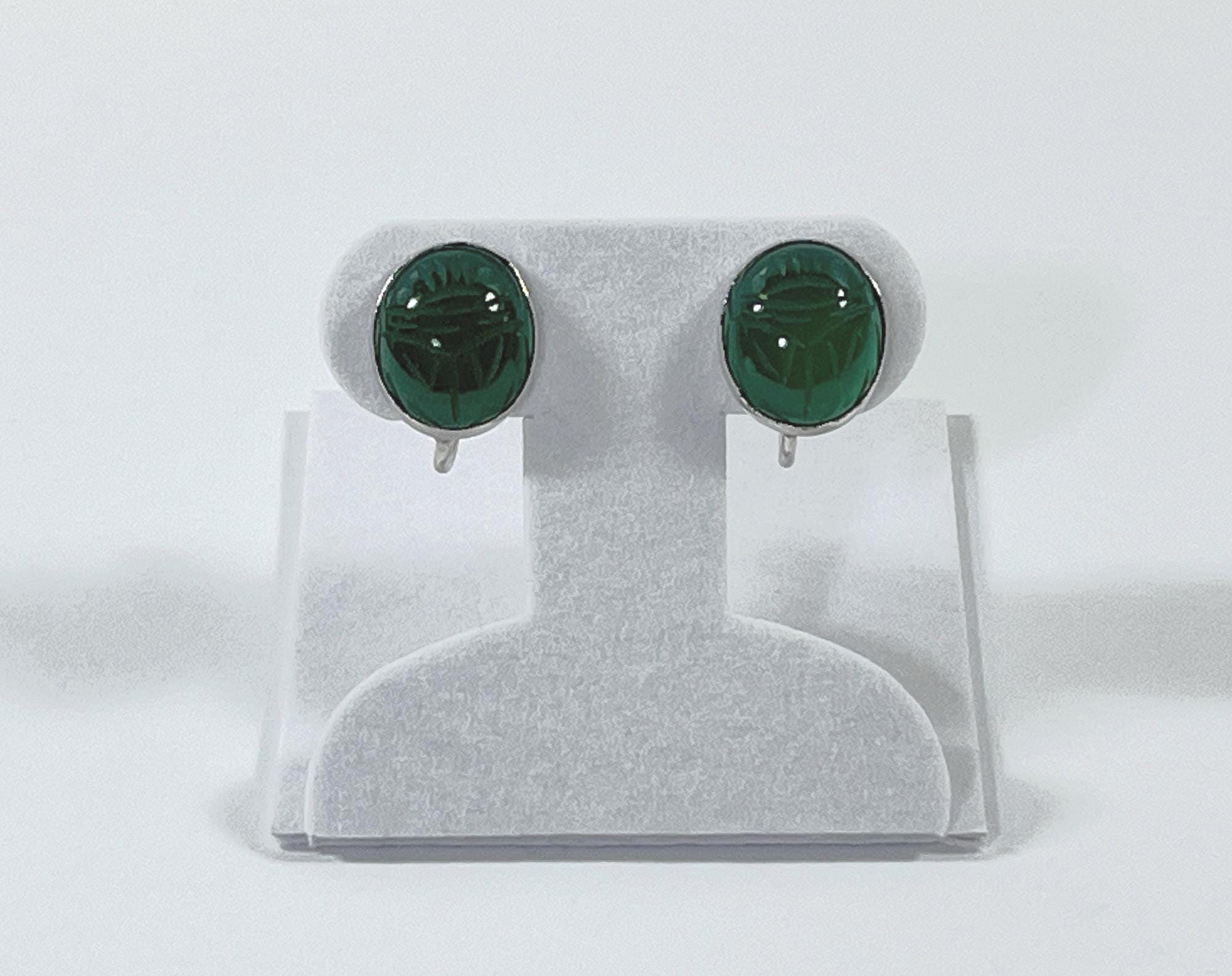 VINTAGE 1950's STERLING SILVER EGYPTIAN SCARAB EARRINGS.