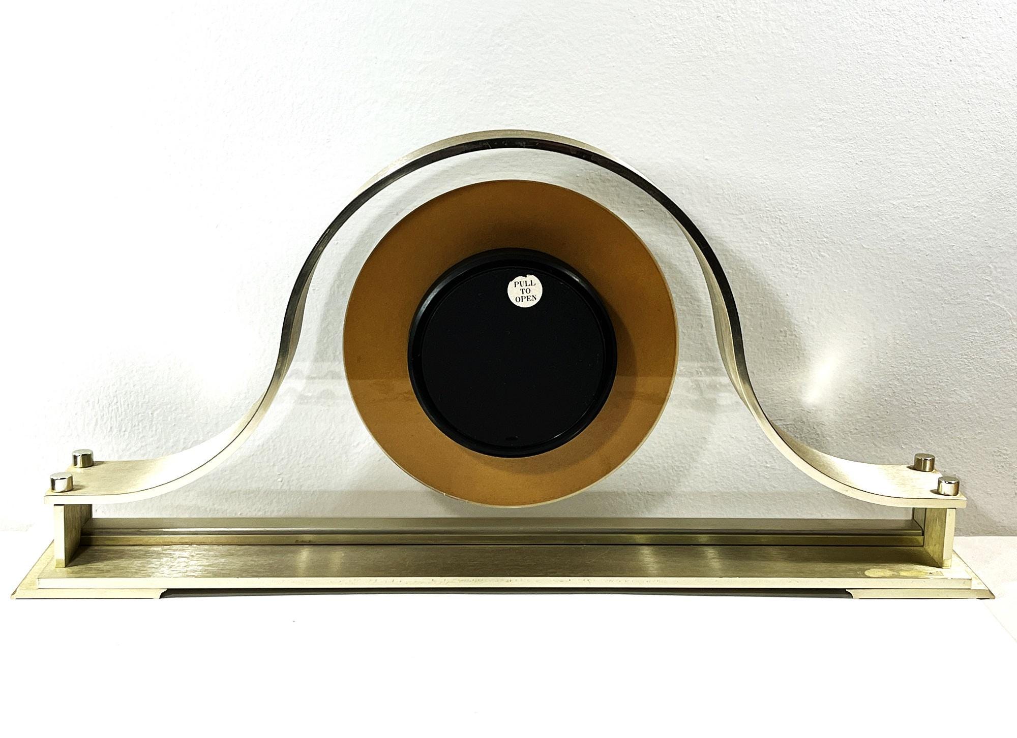 - LARGE CLEAR SILVER 6" FLOATING CONTRAST DIAL, BLACK ROMAN NUMERAL & SERPENTINE HANDS. POLISHED & BRUSHED RIM, MOUNTED ON CLEAR PLEXIGLASS.