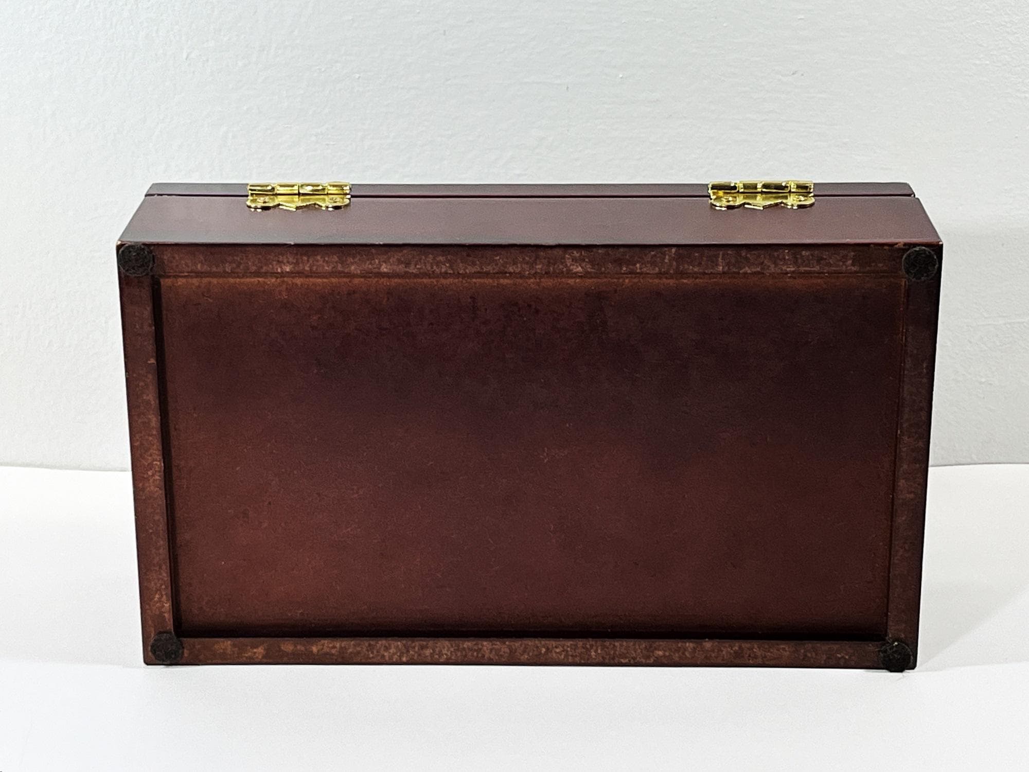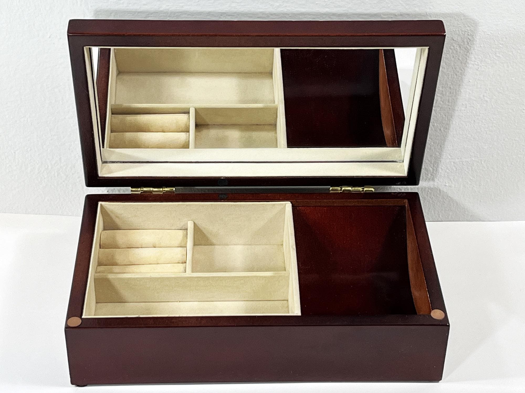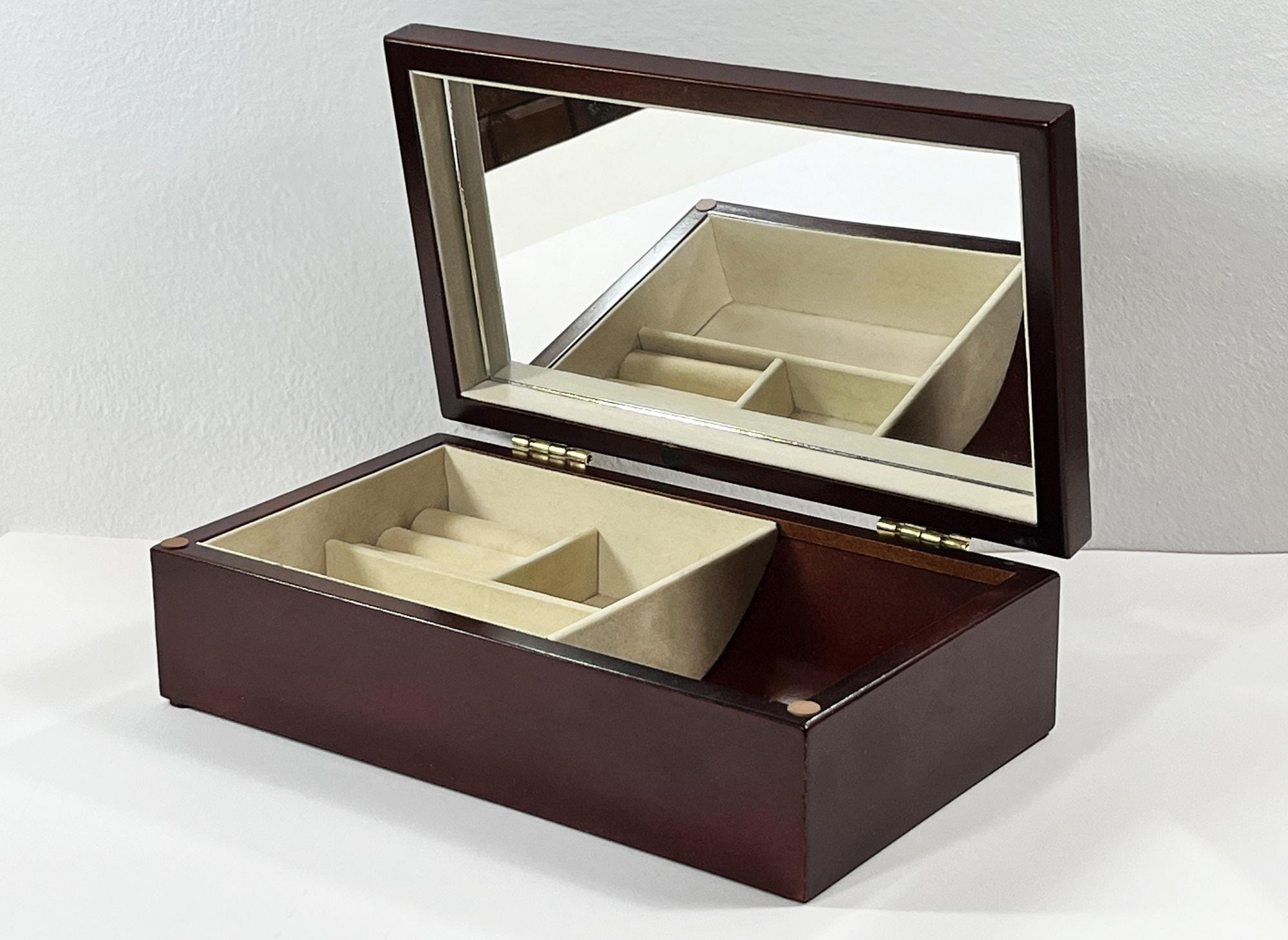 VINTAGE MAHOGANY WOOD FLORAL JEWELRY BOX. TAIWAN 1980's.