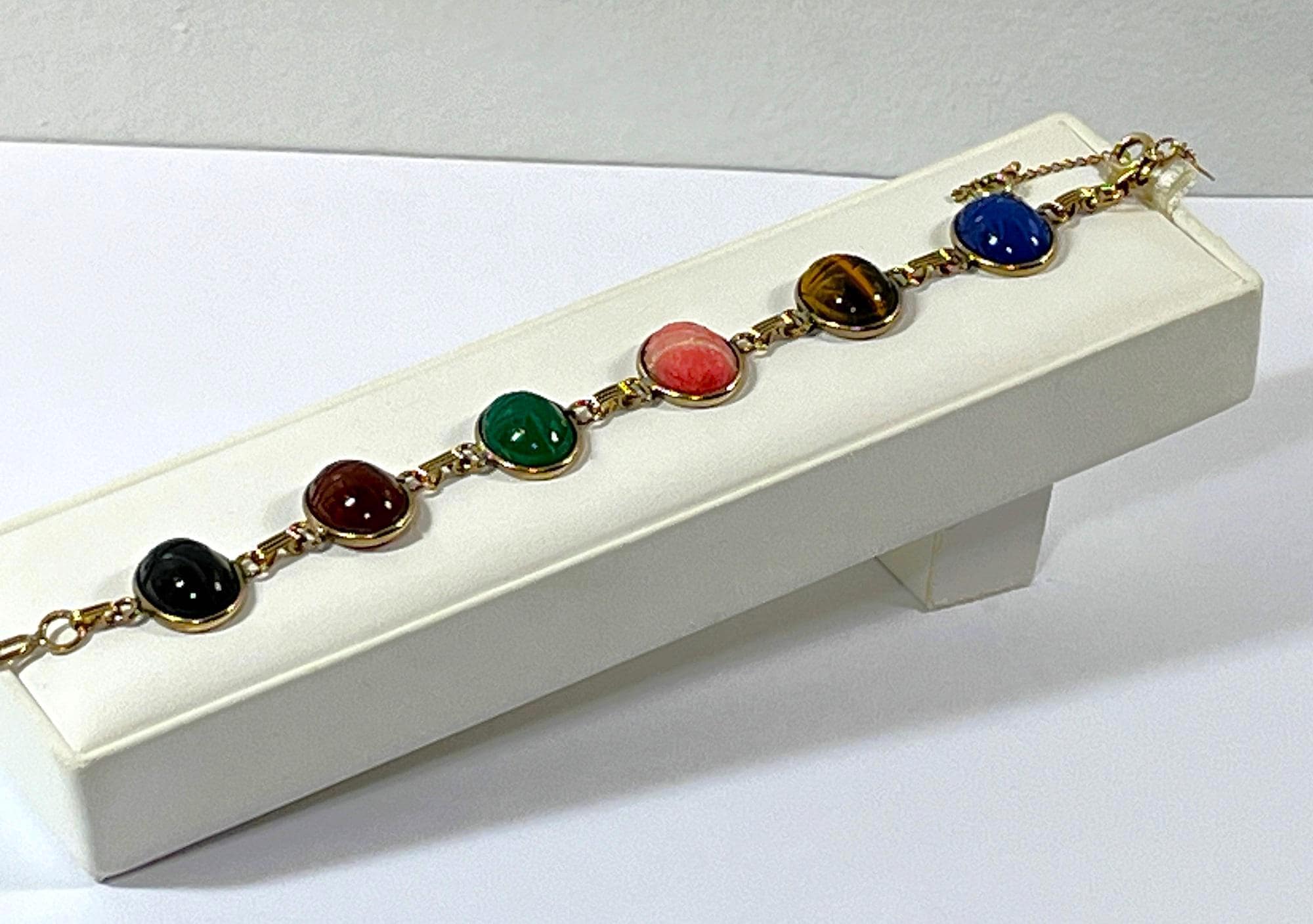 - GEMS: TIGER's EYE, BLUE CHALCEDONY, RHODONITE, GREEN CHRYSOPRASE, RED CARNELIAN AND BLACK ONYX