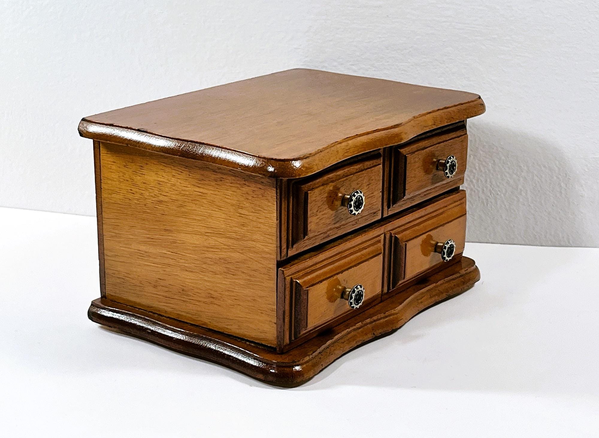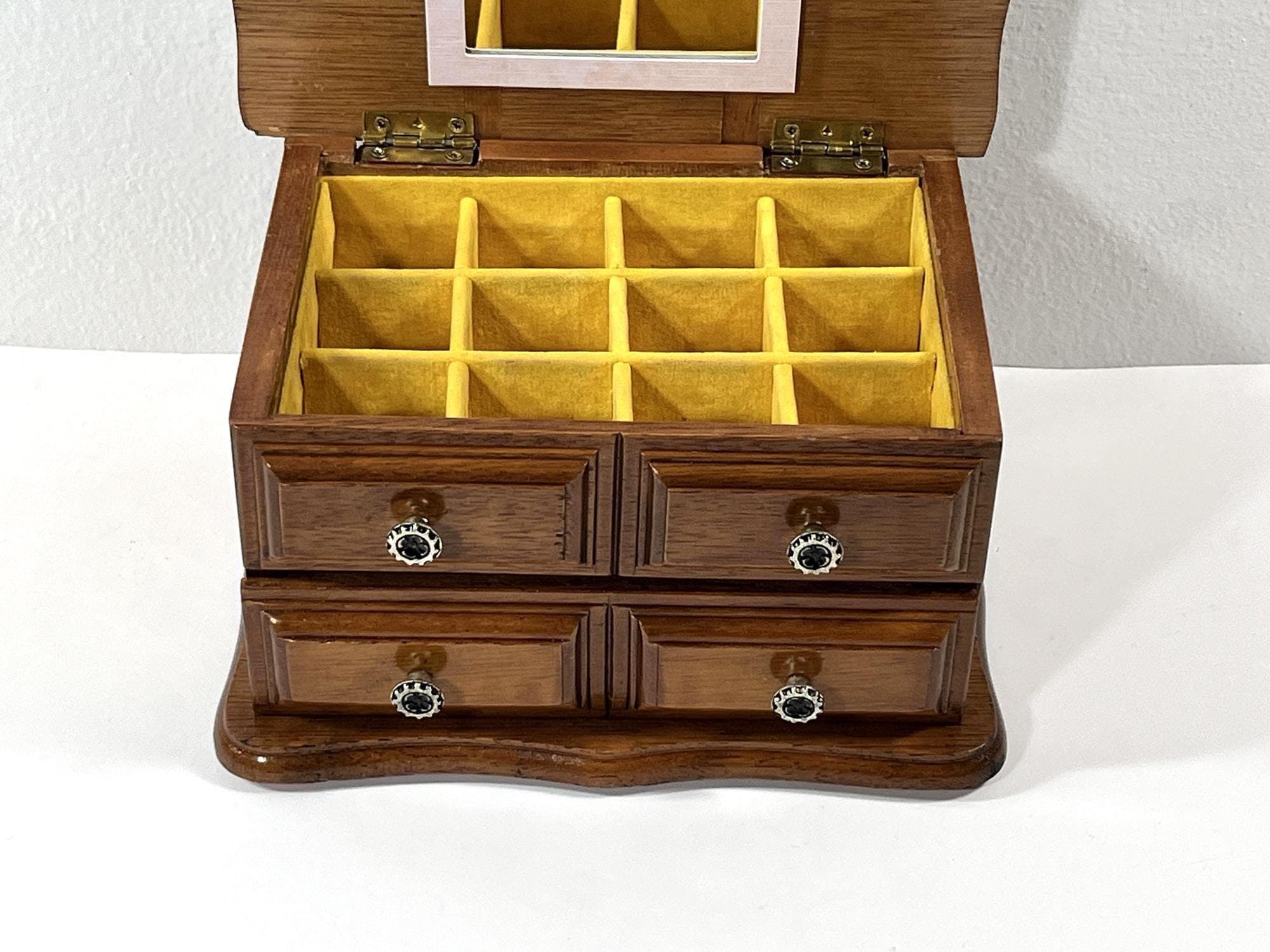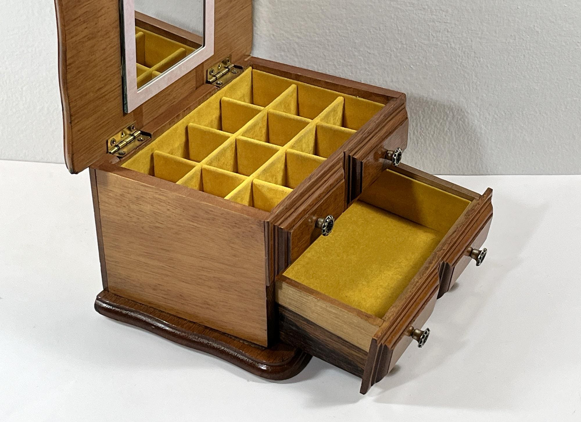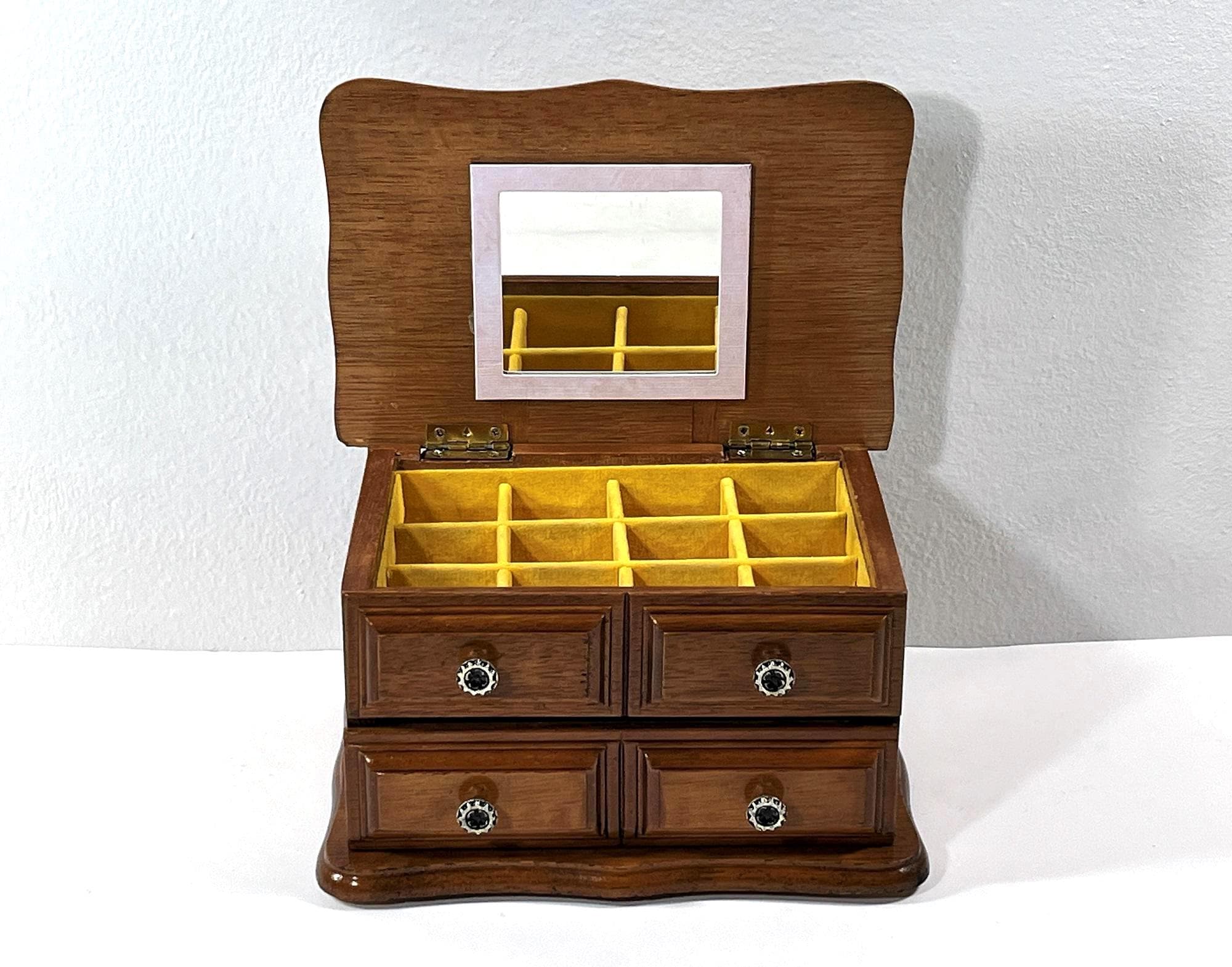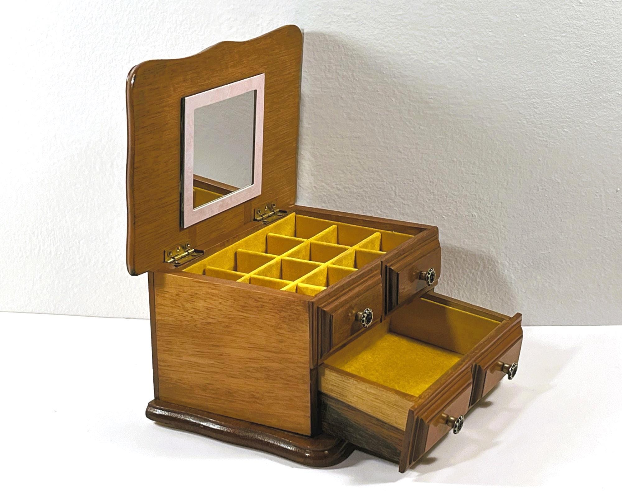 *THIS JEWELRY BOX IS REFURBISHED, DEEPLY CLEANED AND THE WOOD RE-STAINED, NEW FELT PADS ON THE BOTTOM