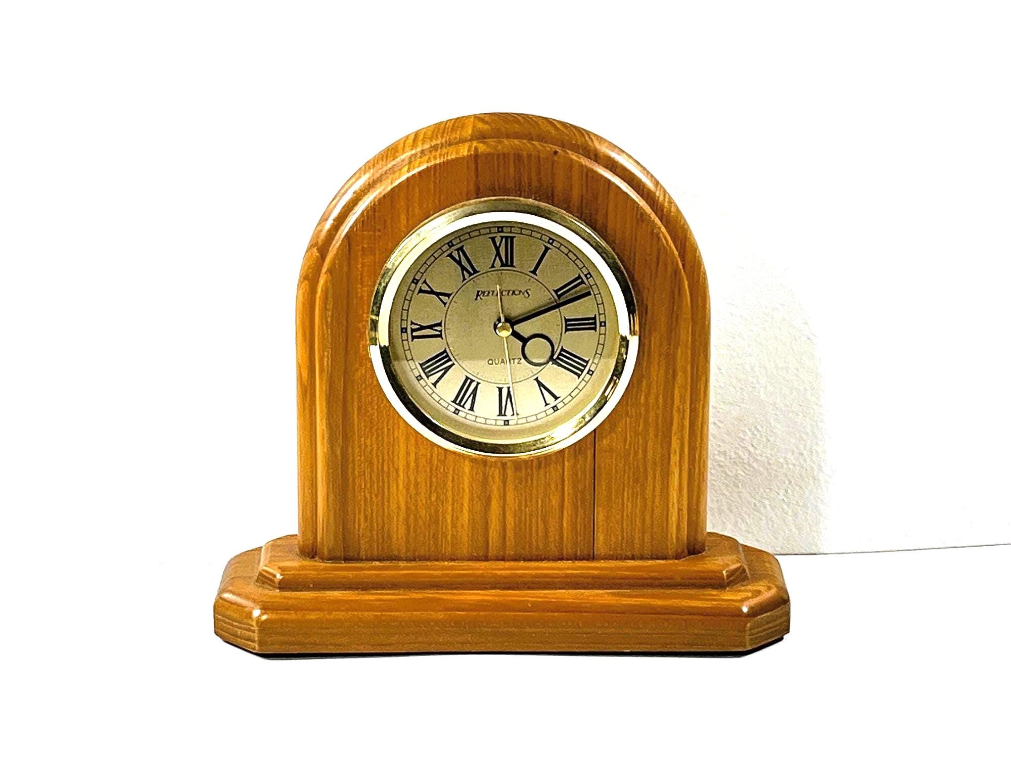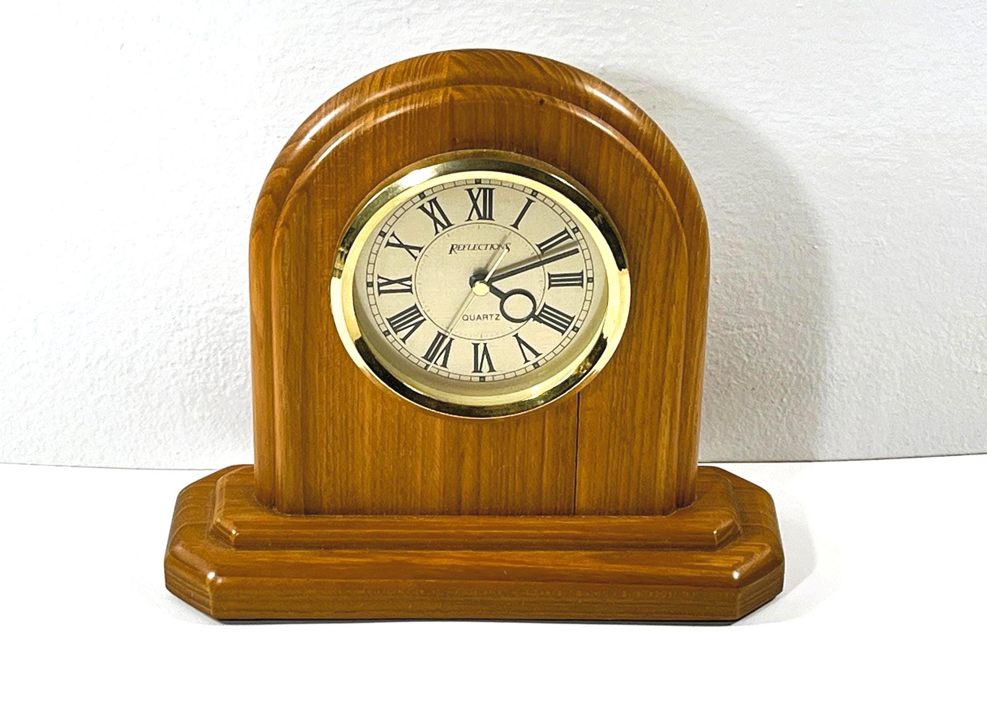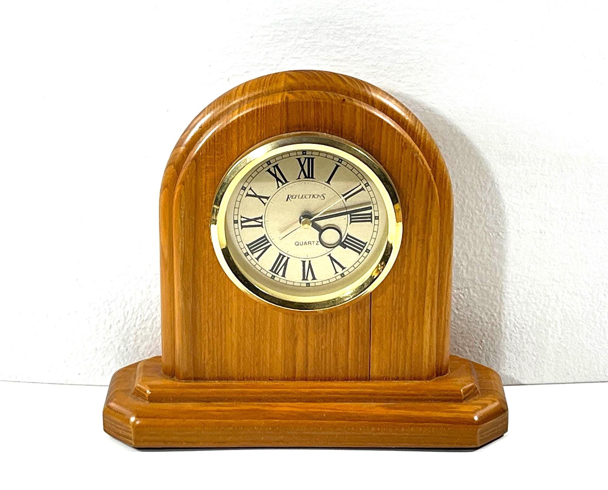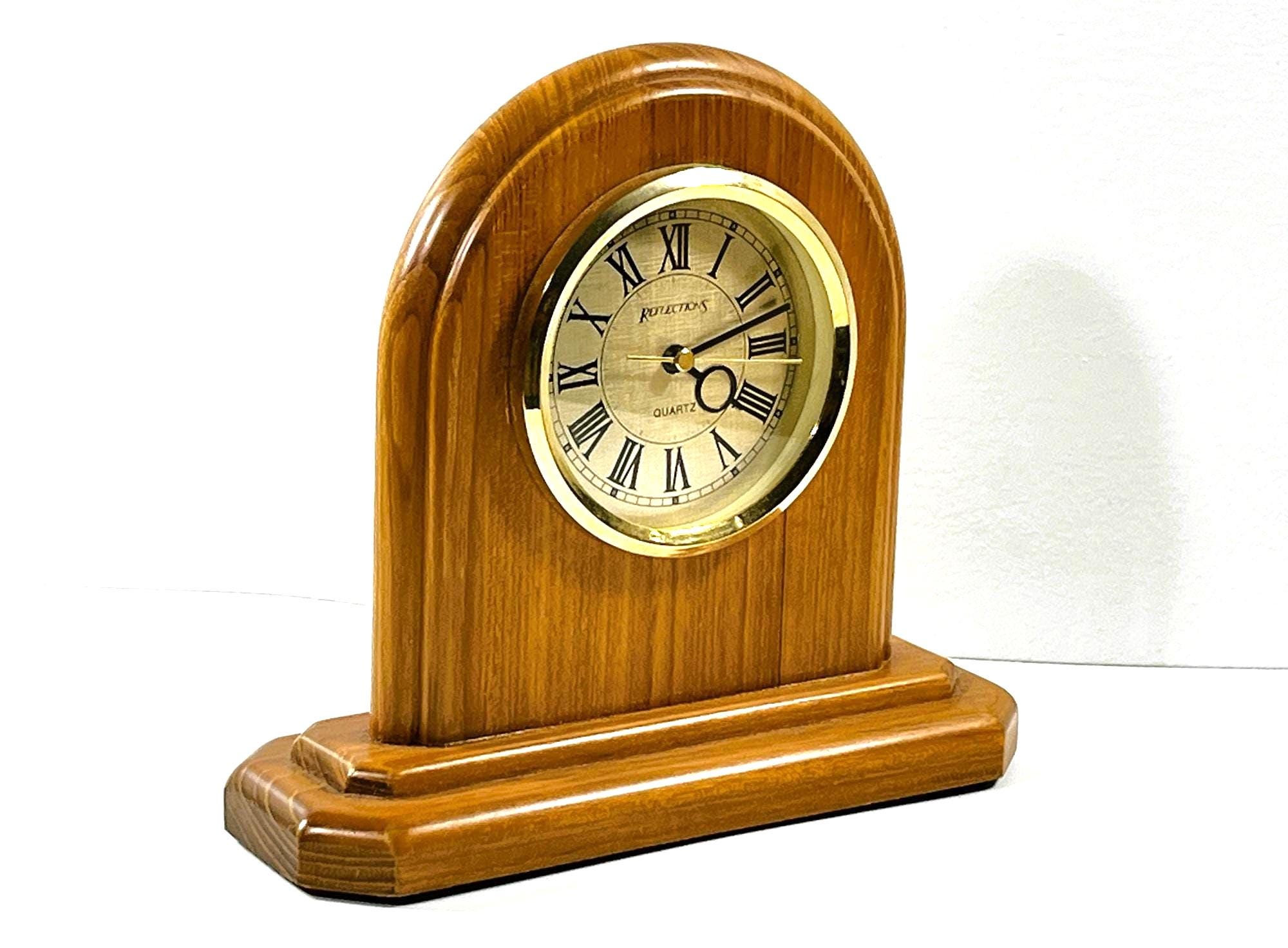 VINTAGE REFLECTIONS™ UNIQUE CARVED OAK WOOD MANTEL CLOCK.