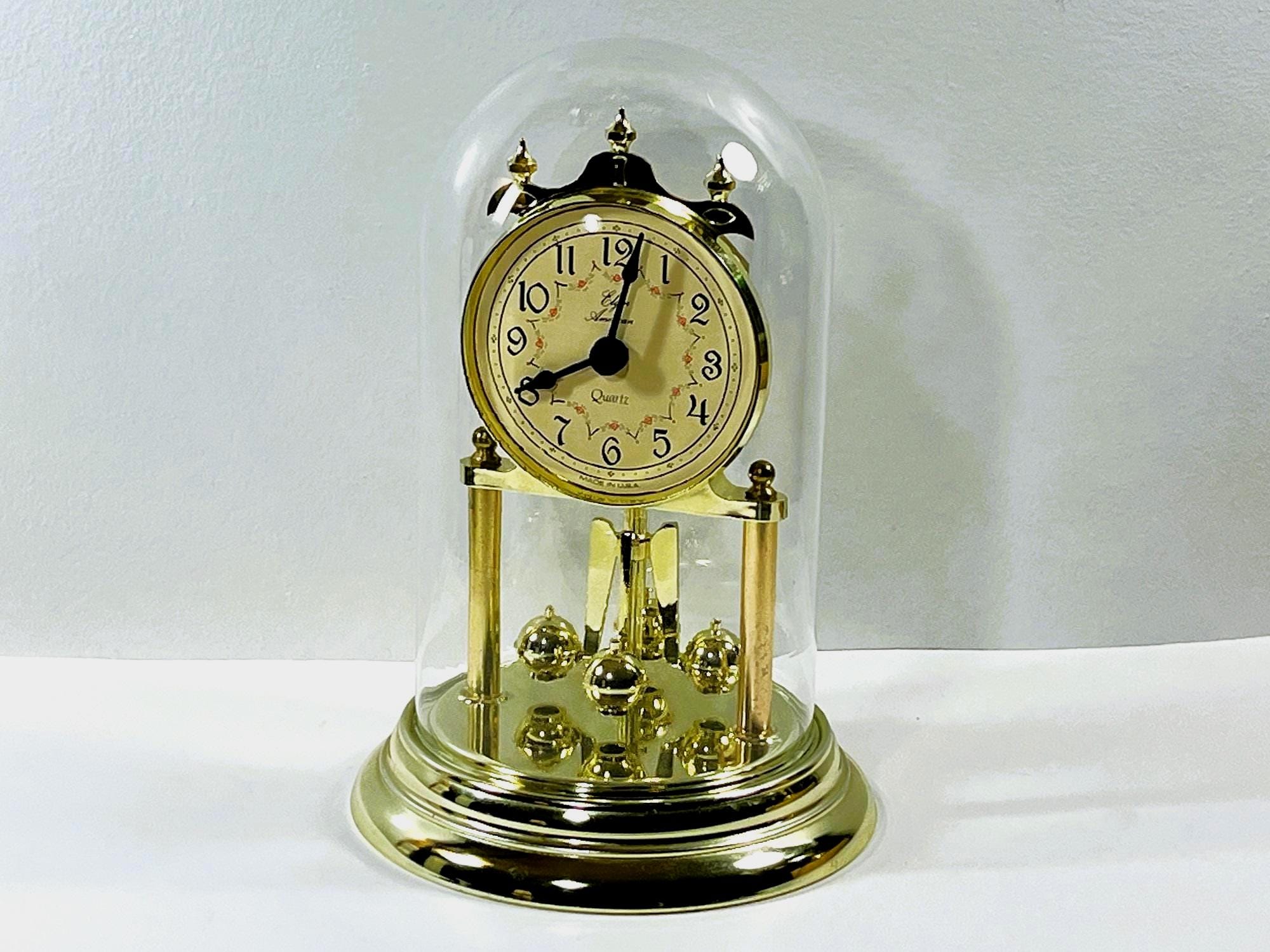 - GLASS DOME, ROTATING SPHERE PENDULUM, TRIPLE FINIAL CROWN