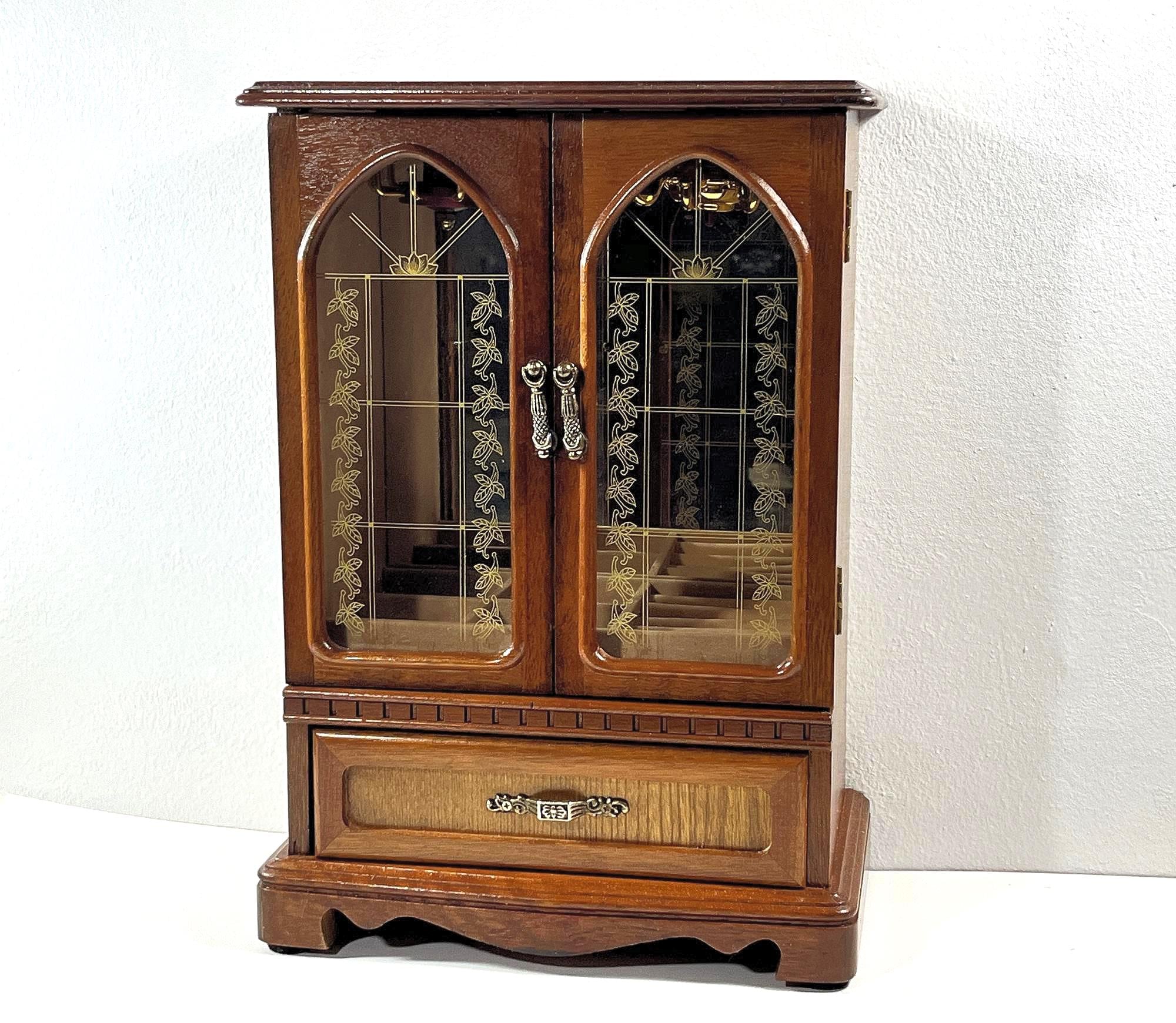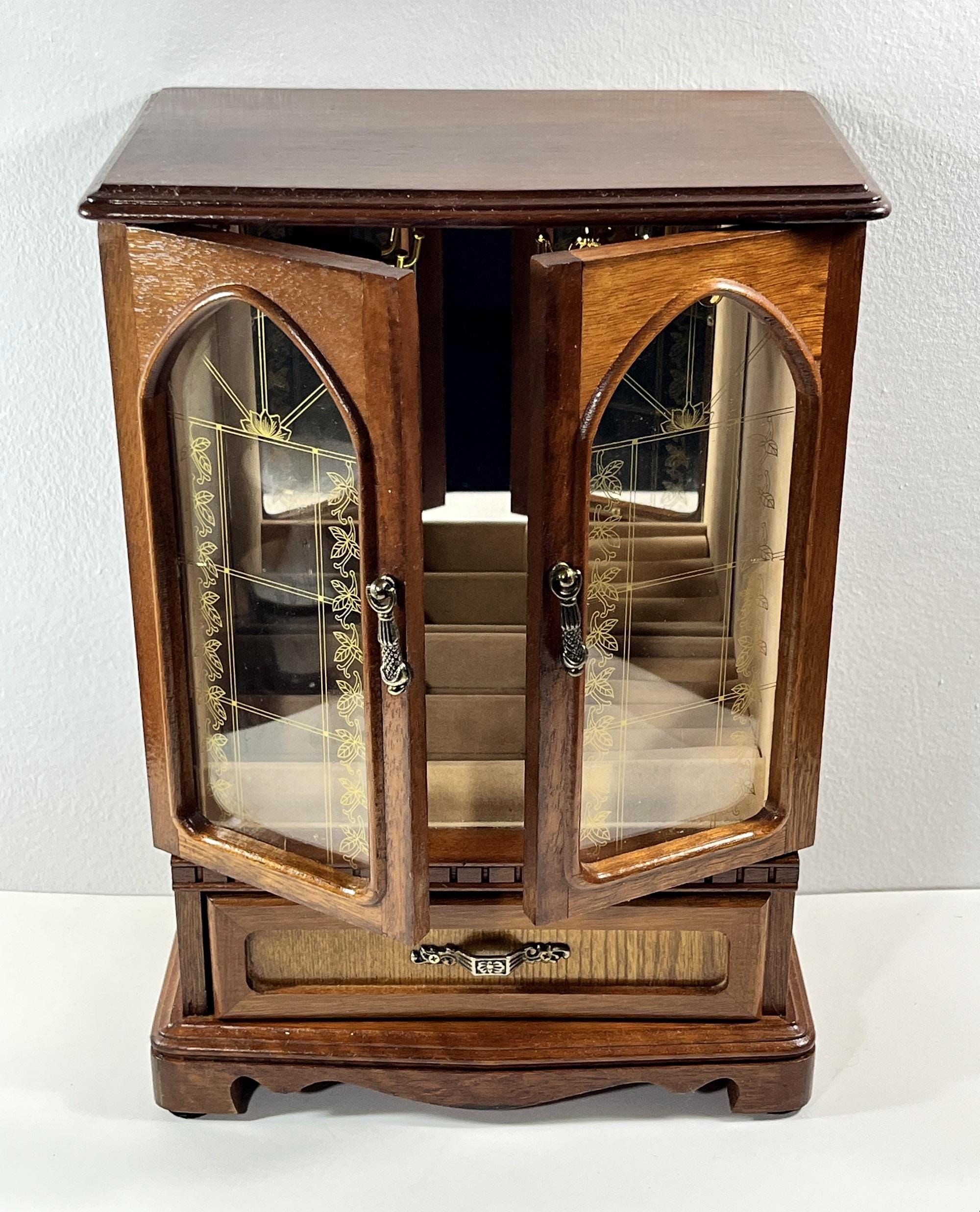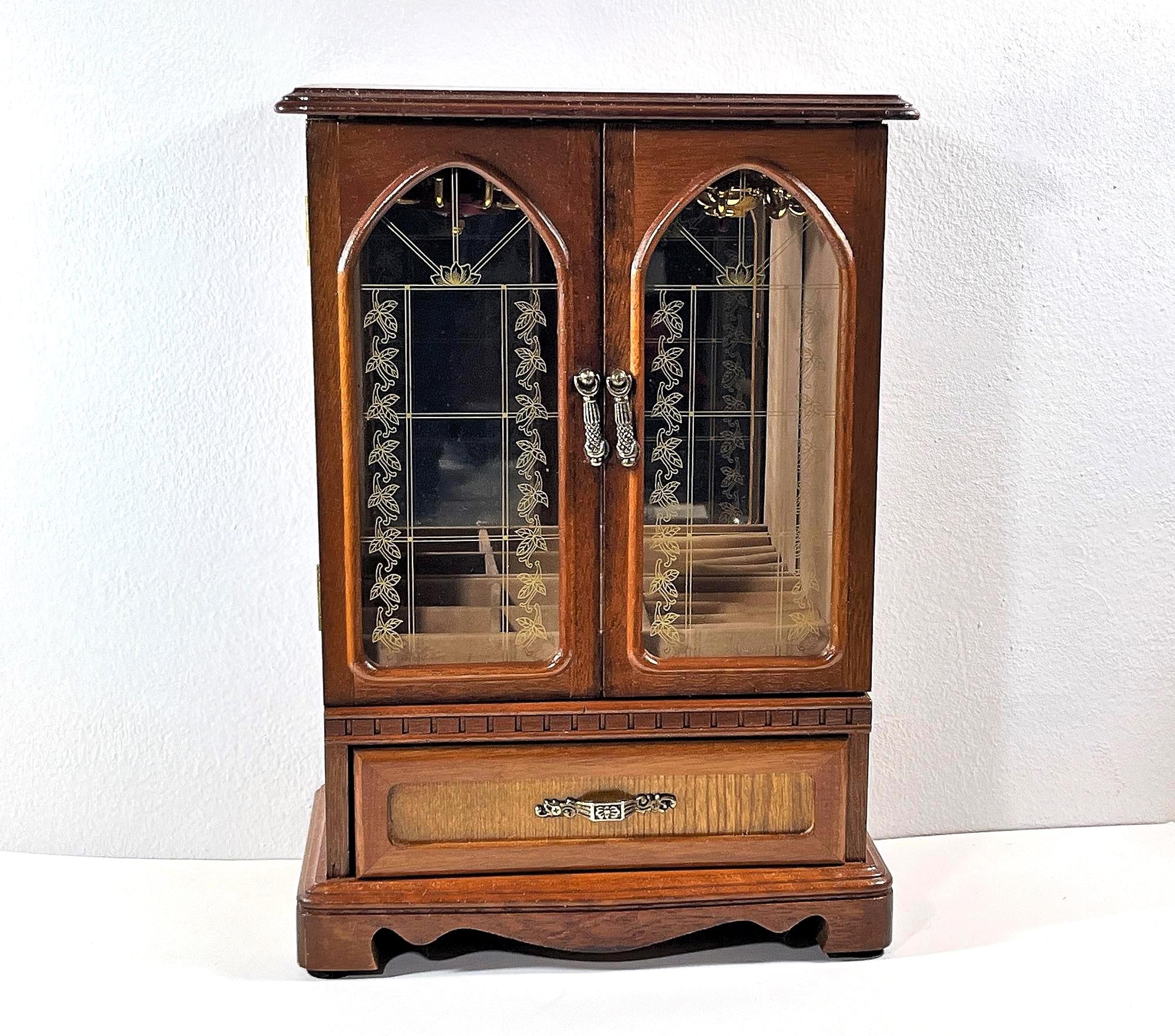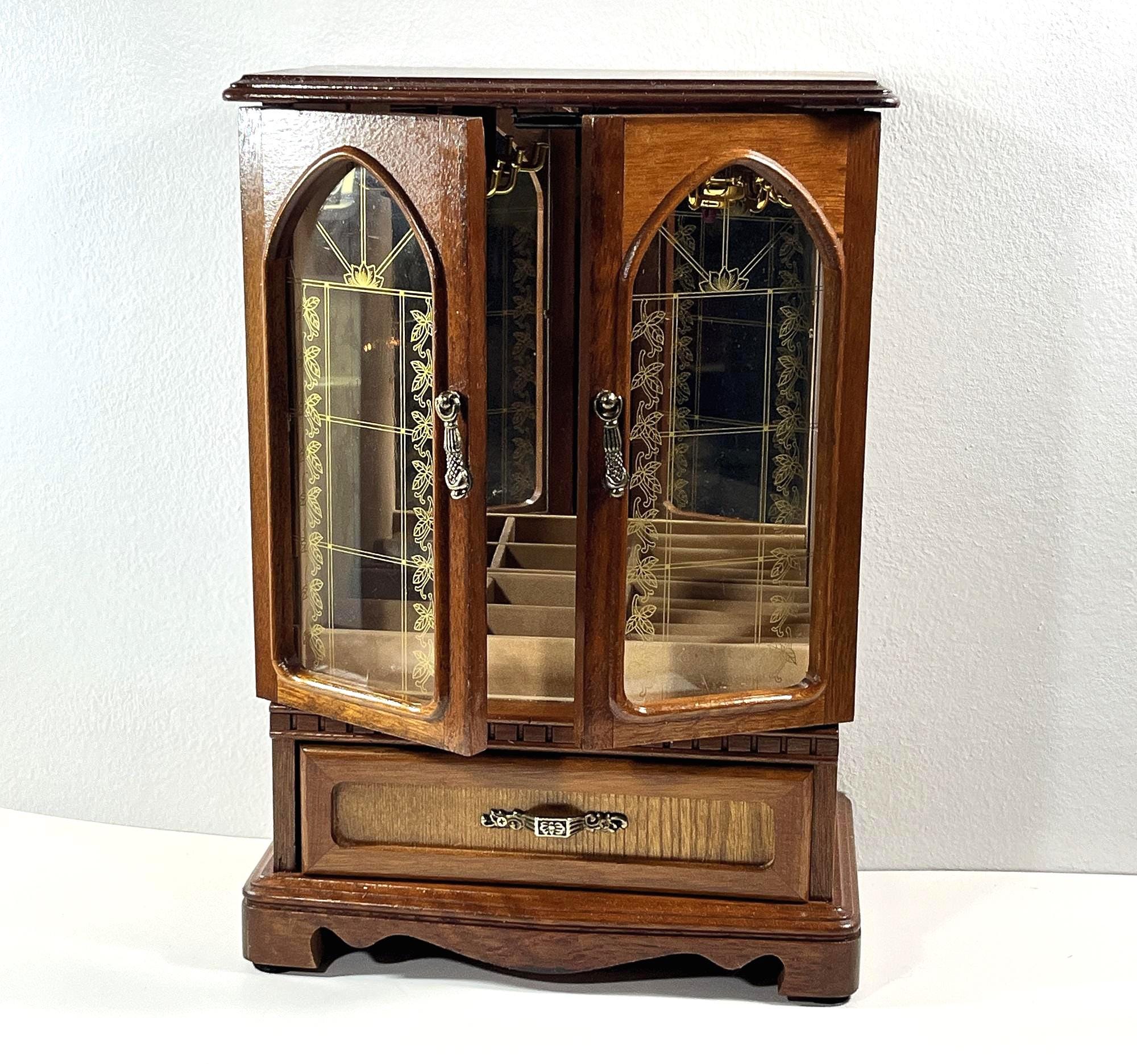 VINTAGE MELE™ 1980's CARVED WOOD LARGE JEWELRY ARMOIRE.