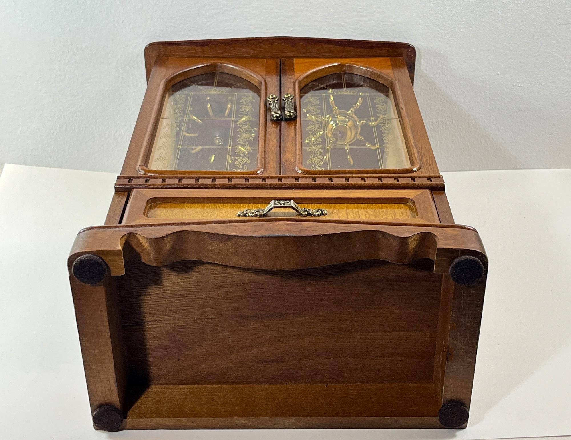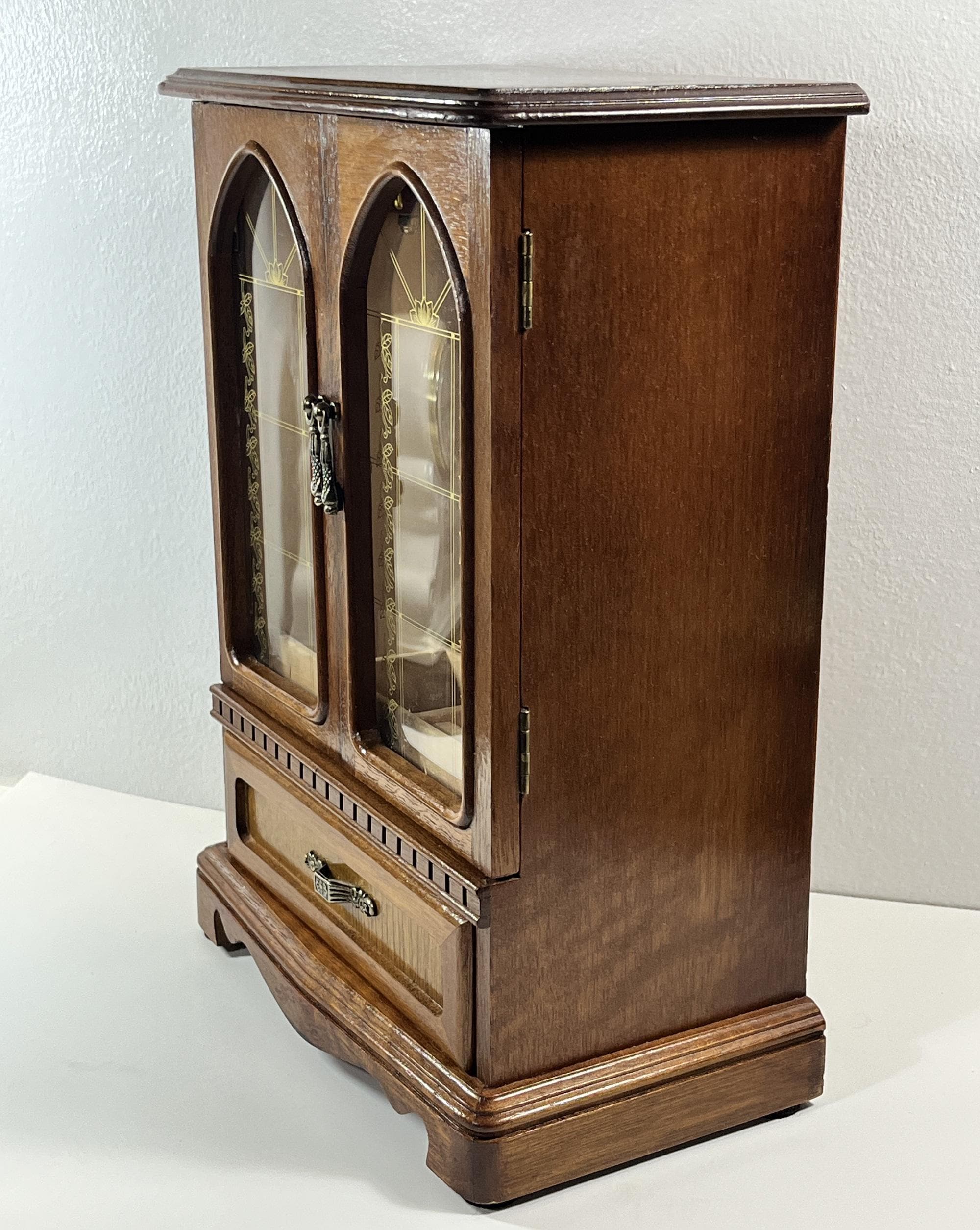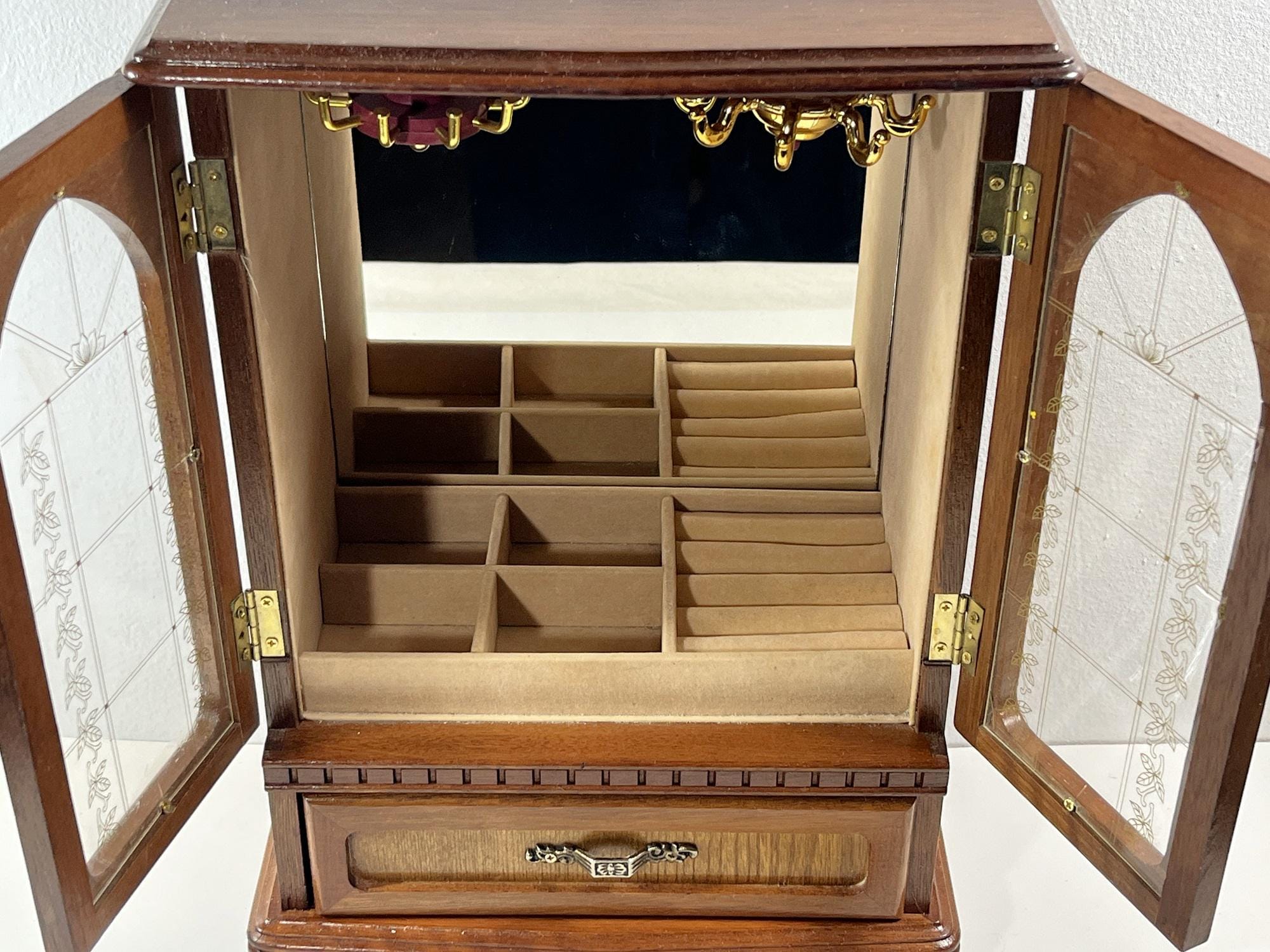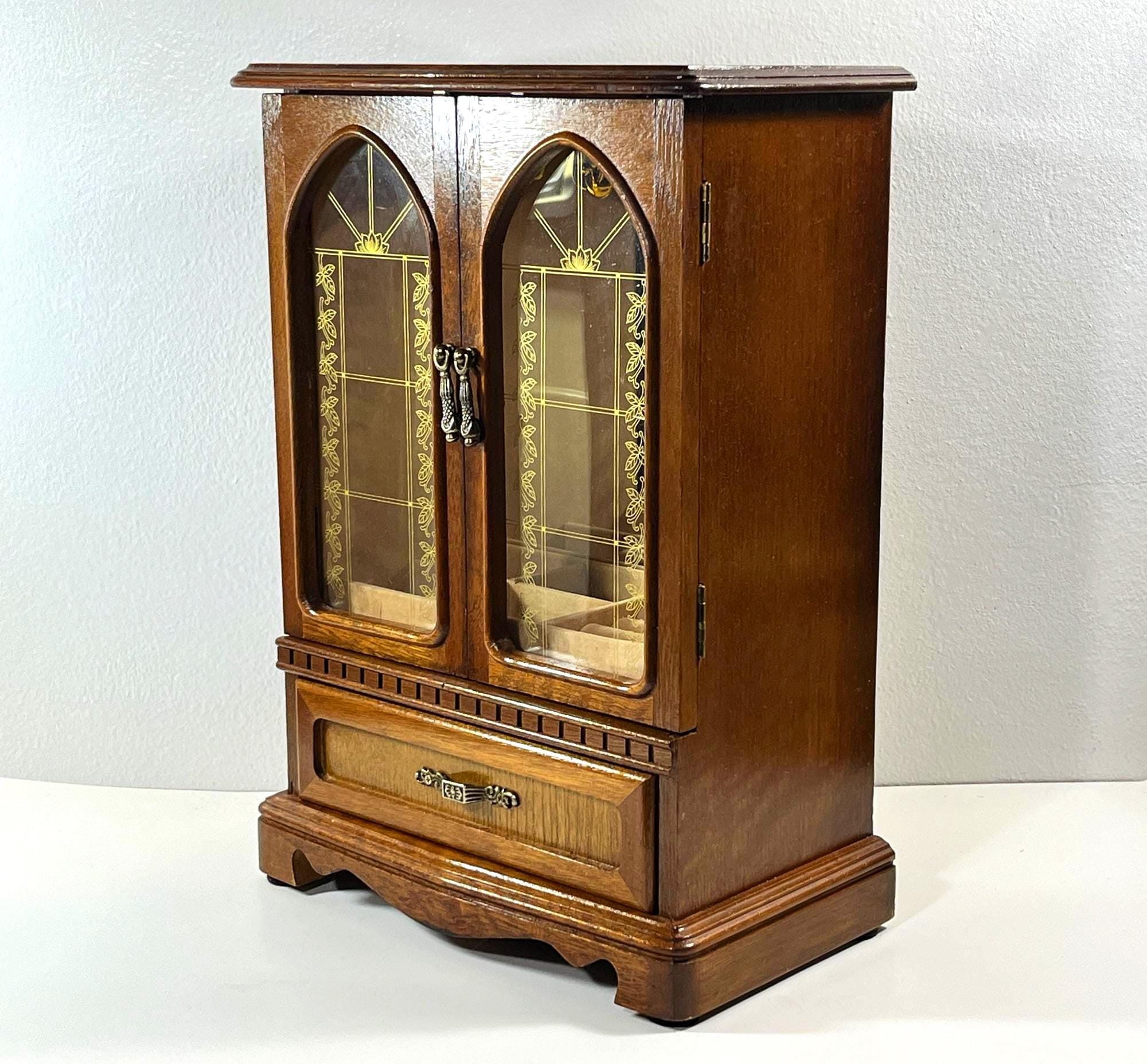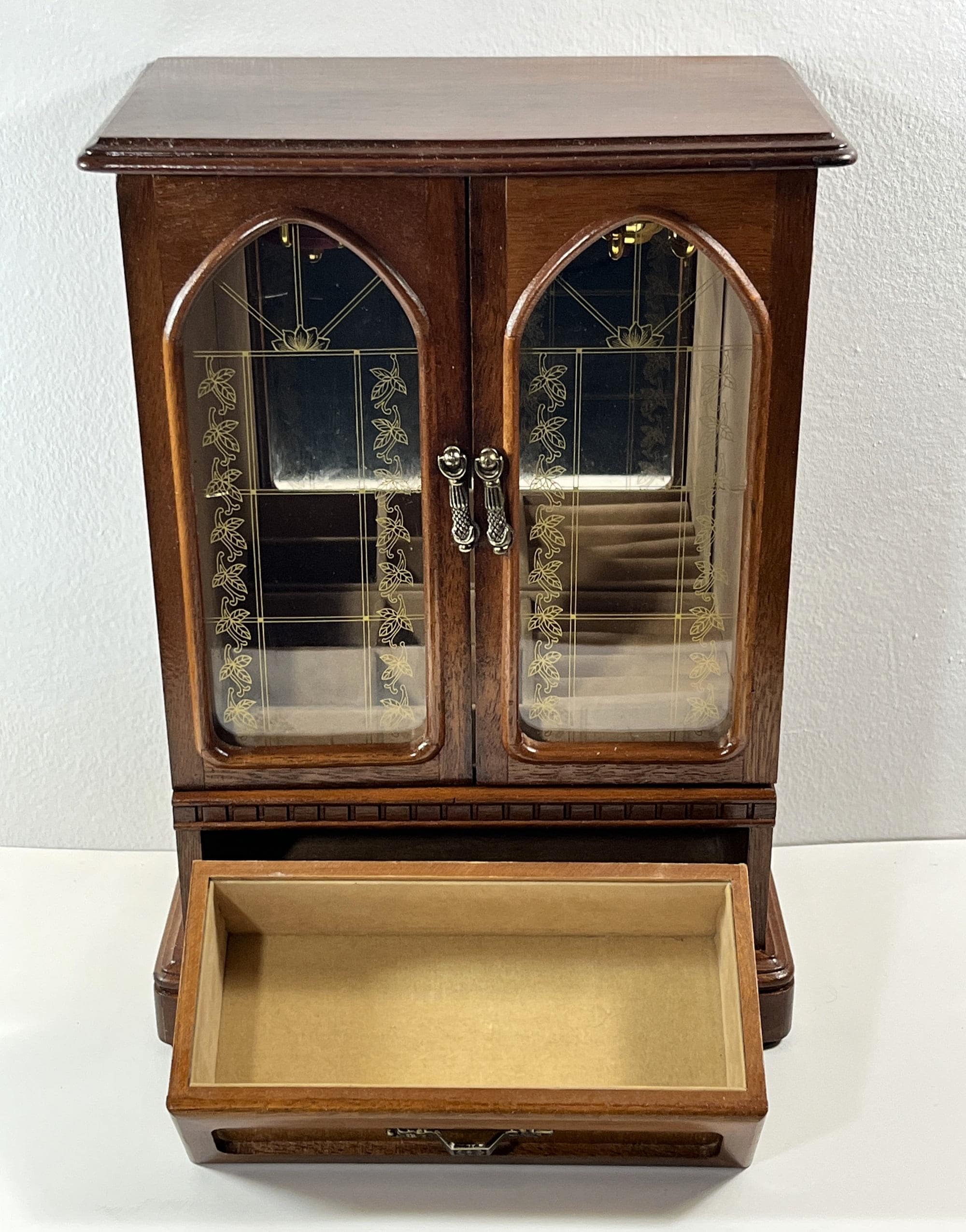 VINTAGE MELE™ 1980's CARVED WOOD LARGE JEWELRY ARMOIRE.