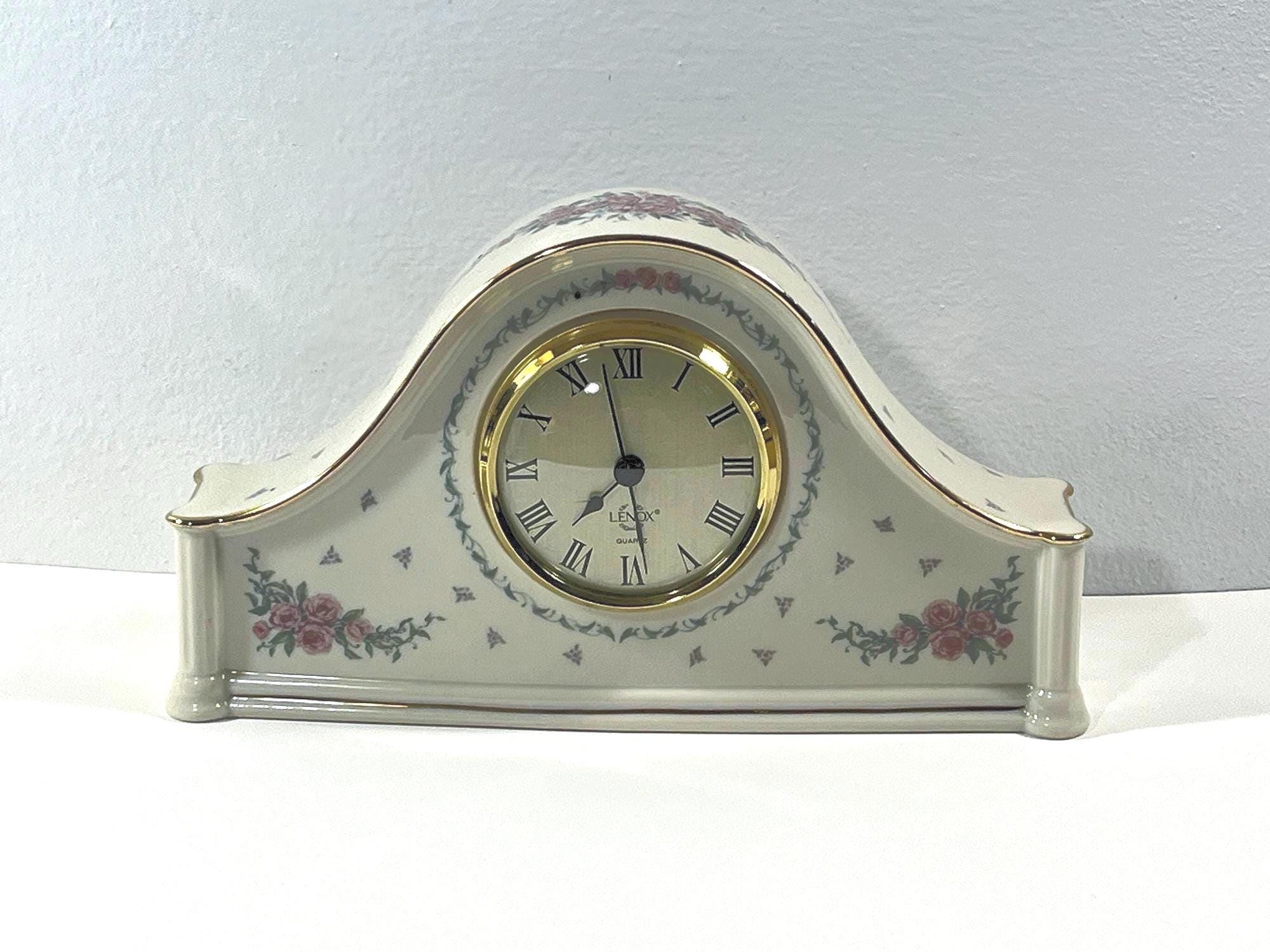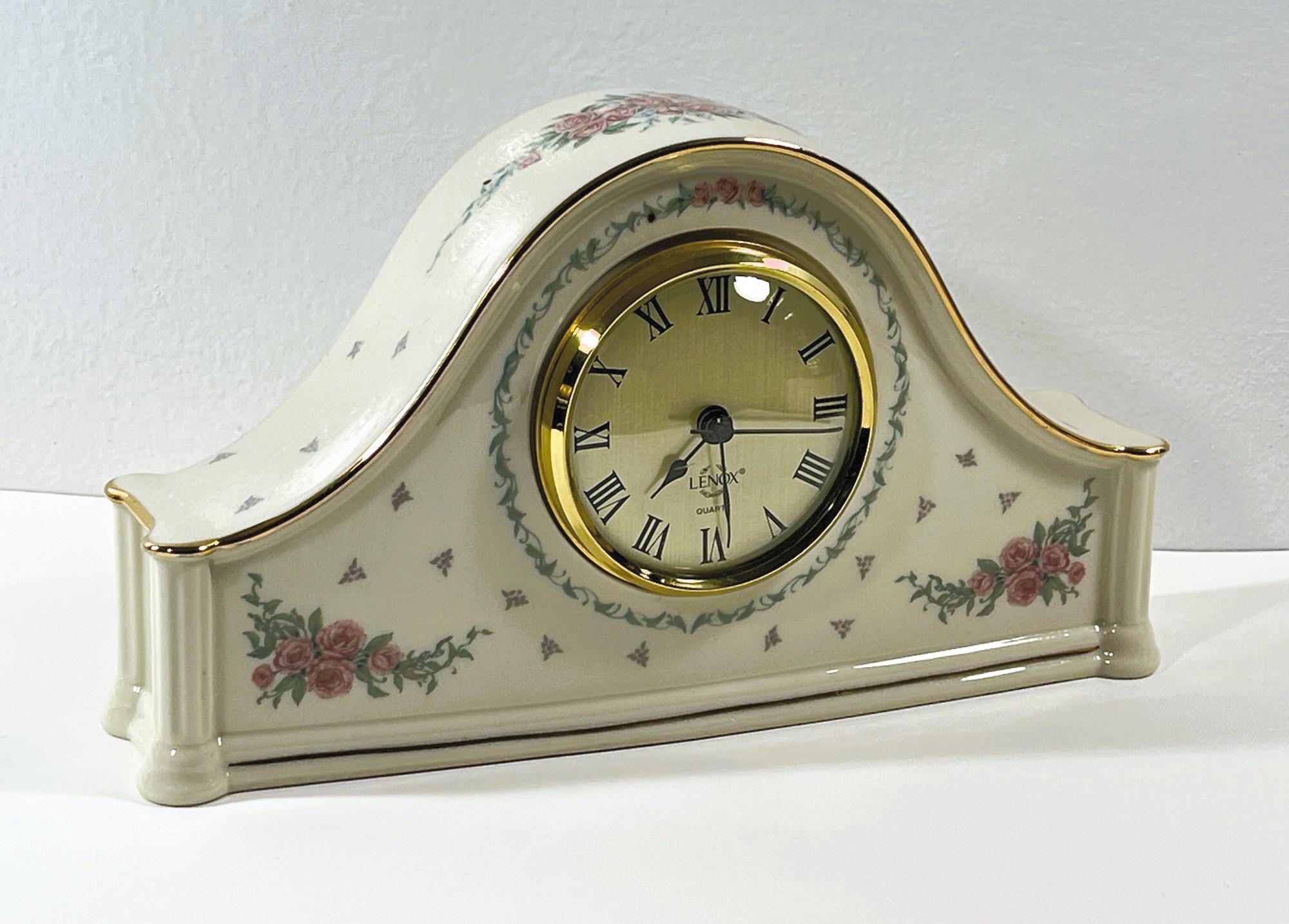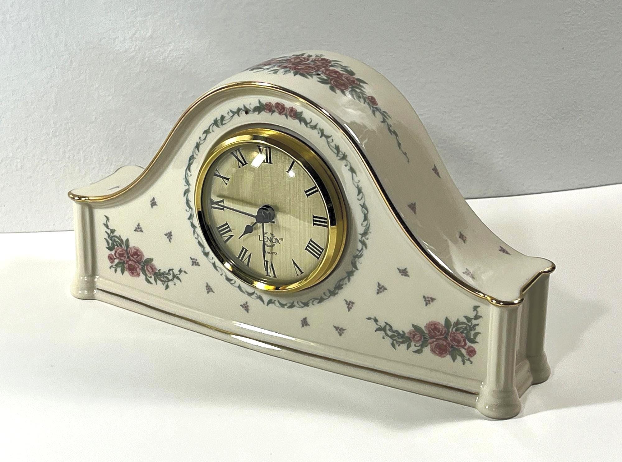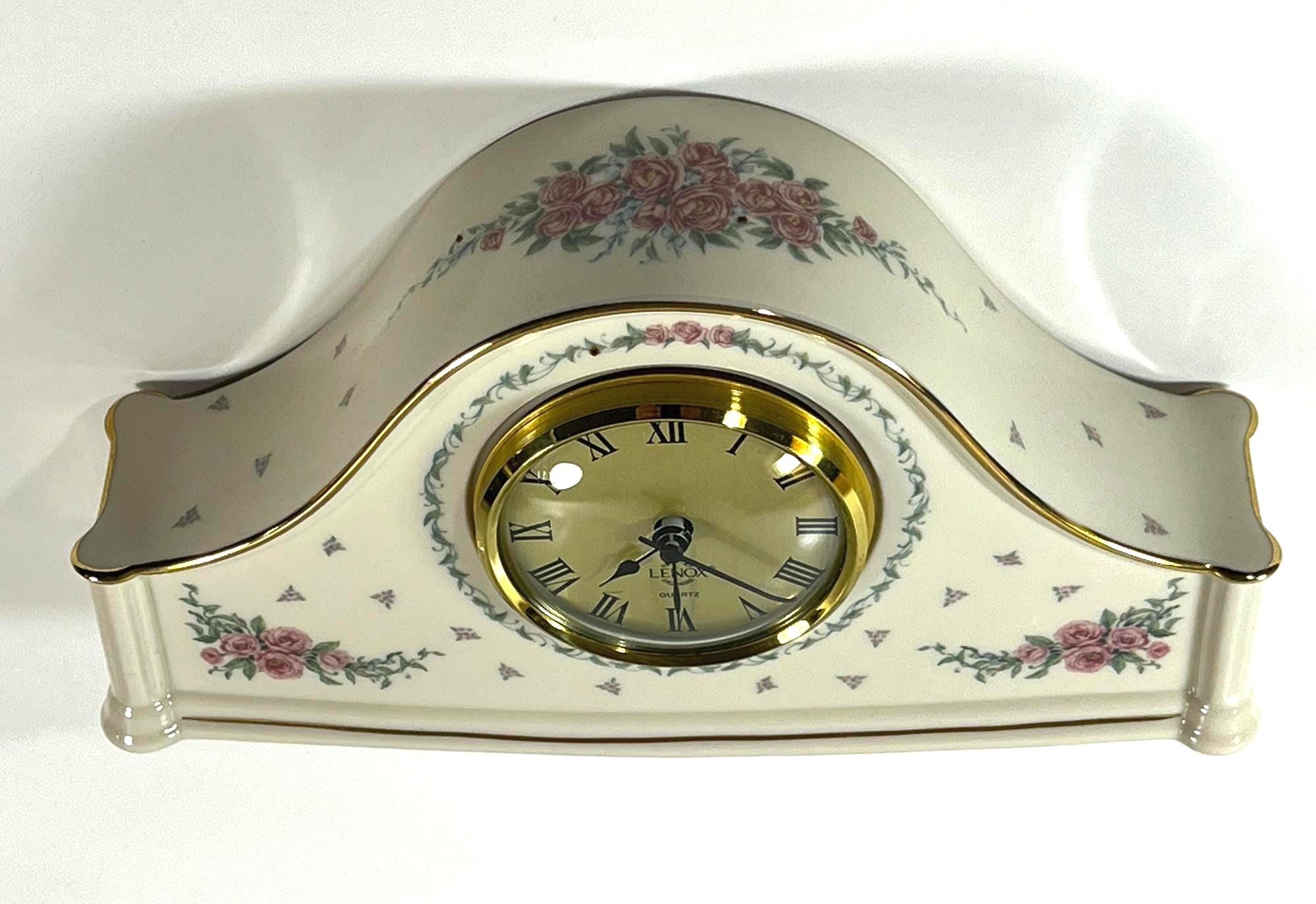 VINTAGE 1992 LENOX® 'ROSE GARDEN' BONE CHINA PORCELAIN MANTLE CLOCK.