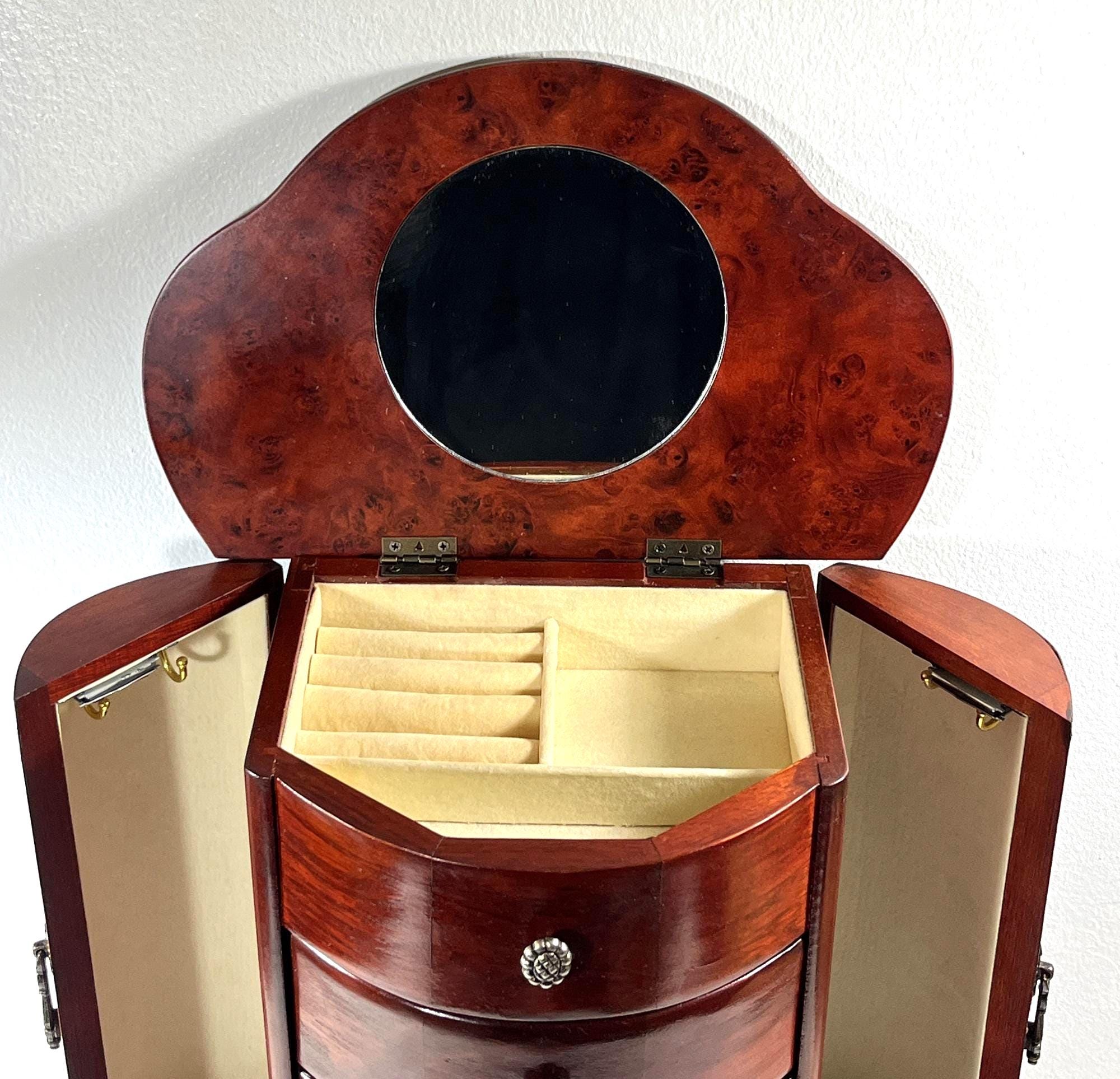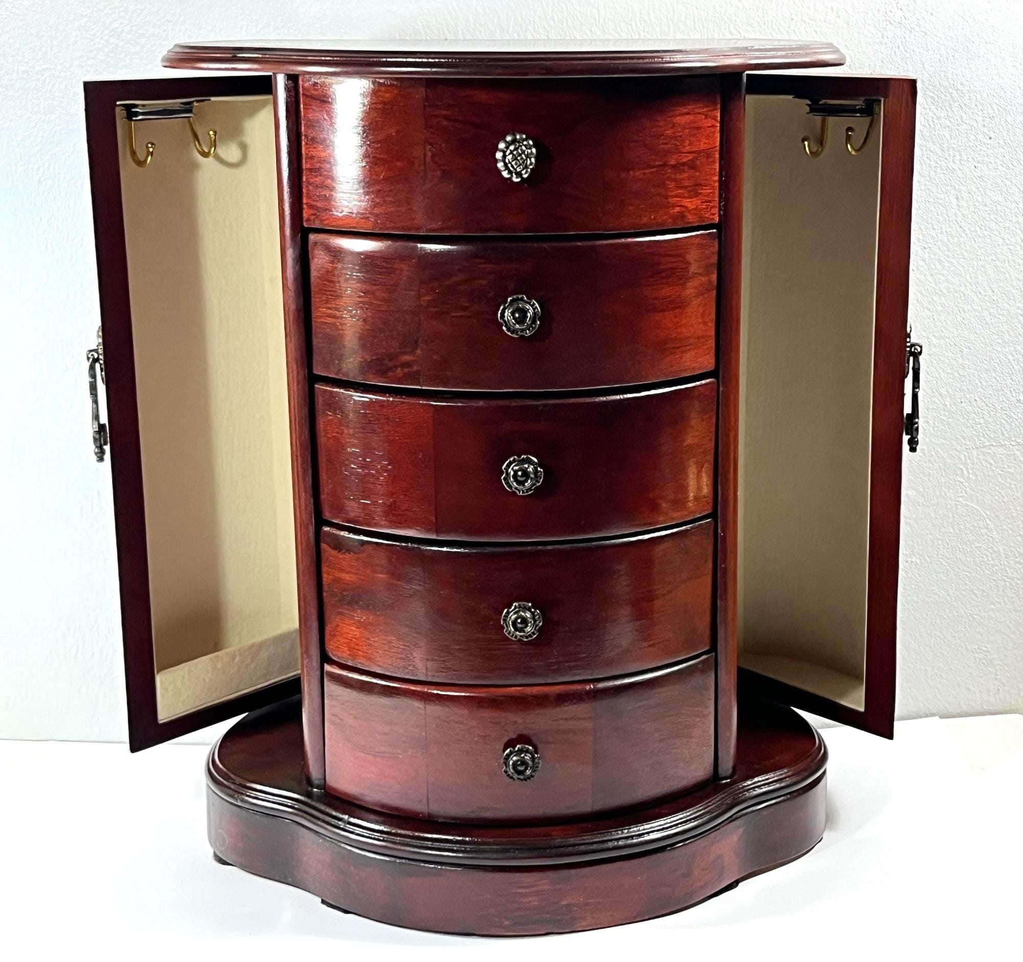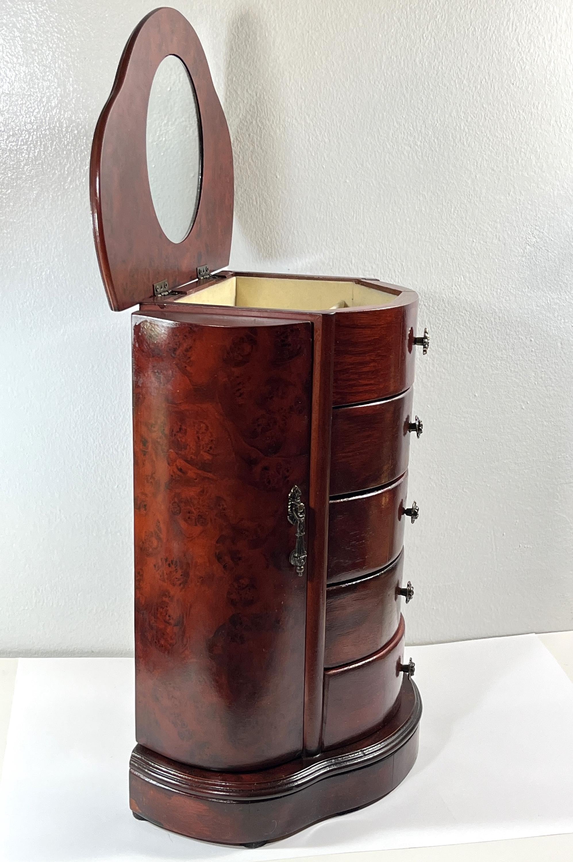VINTAGE MAHOGANY HARDWOOD JEWELRY ARMOIRE.