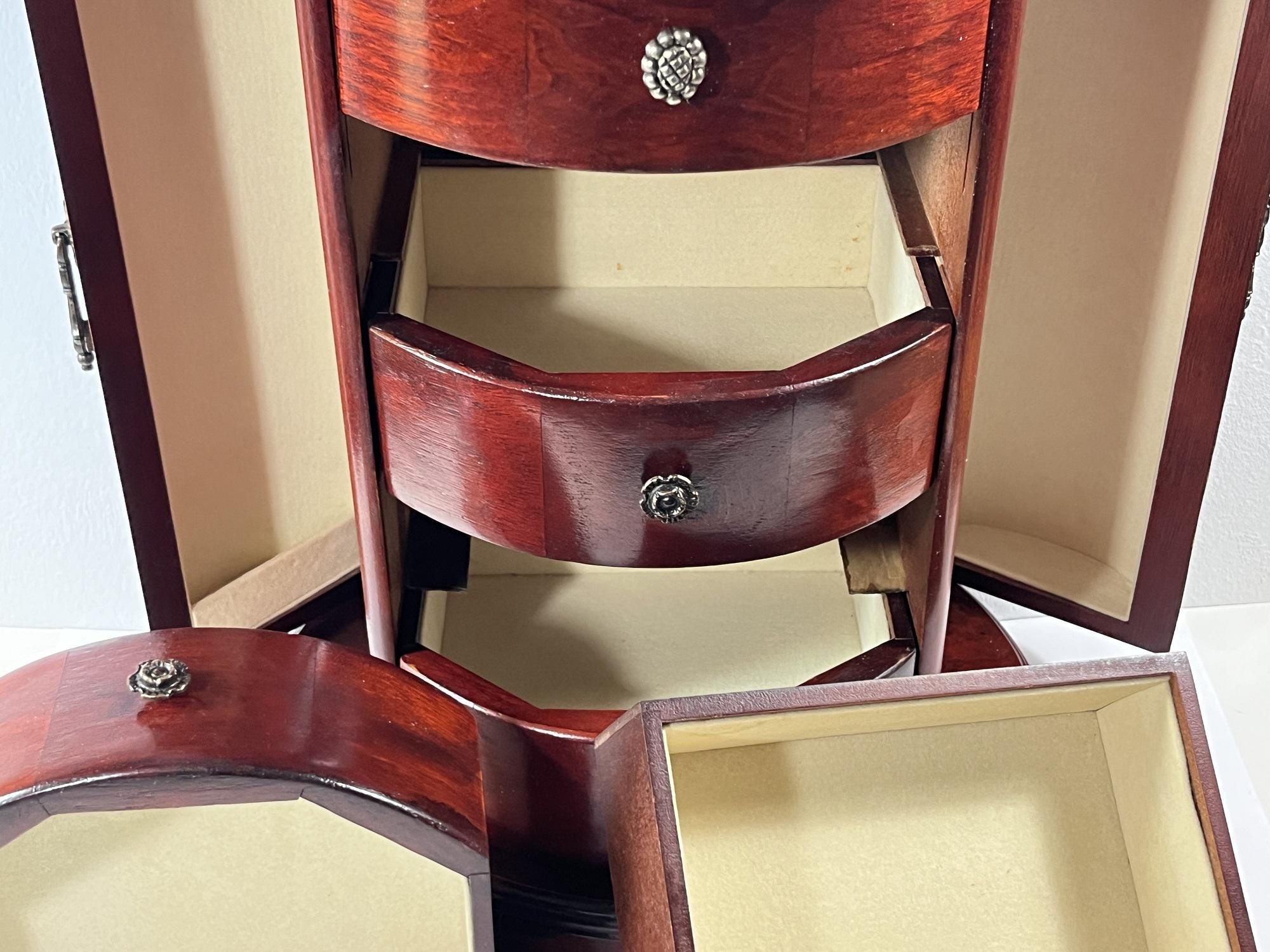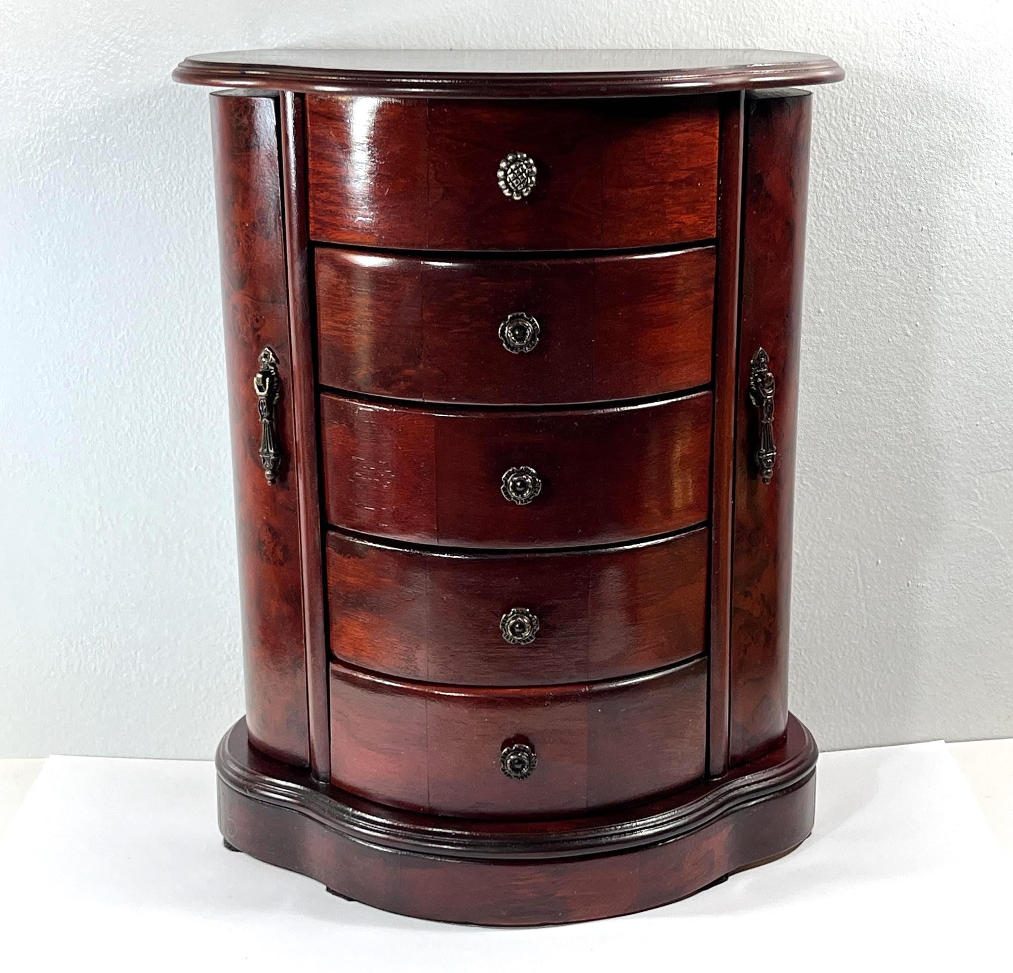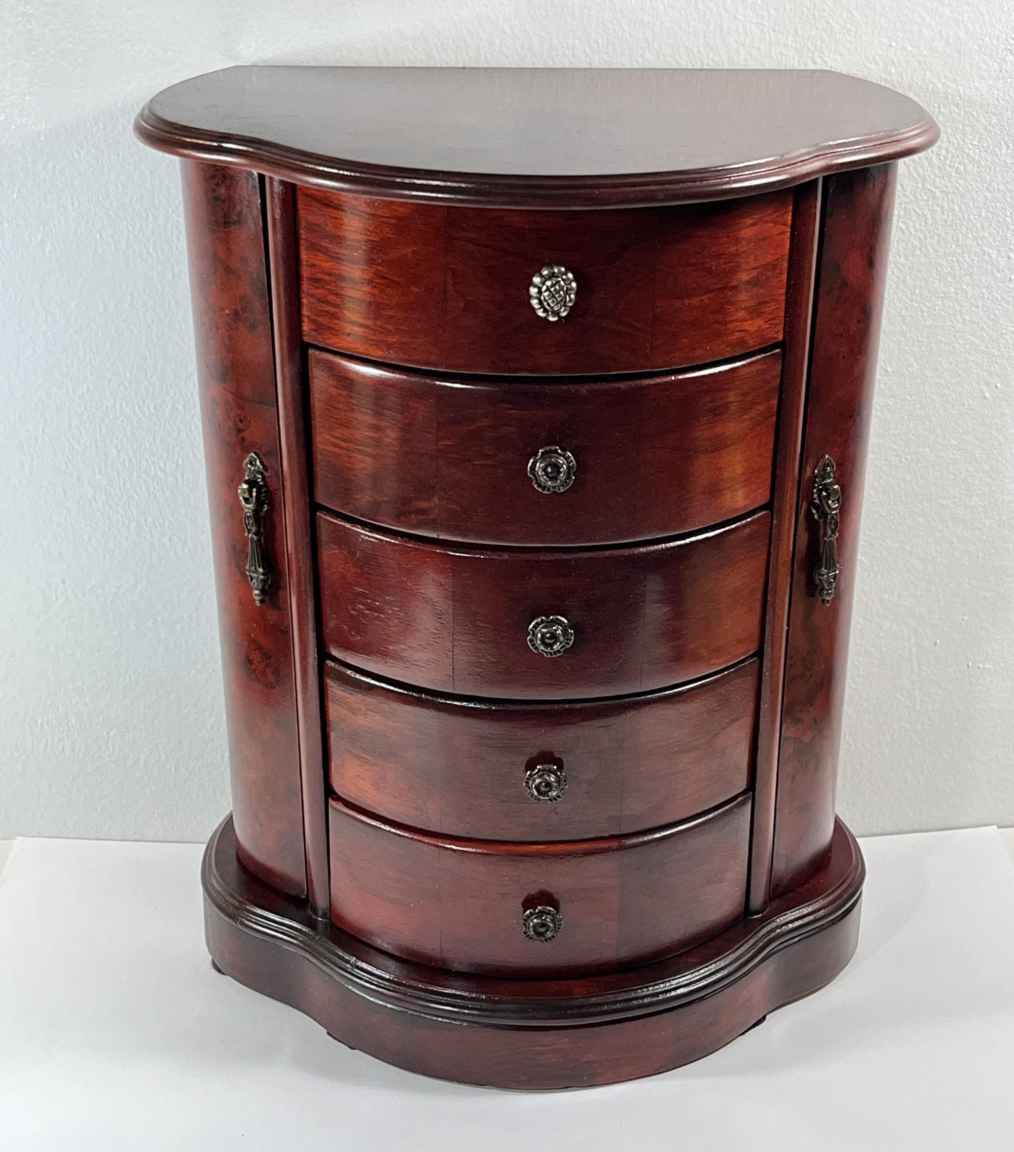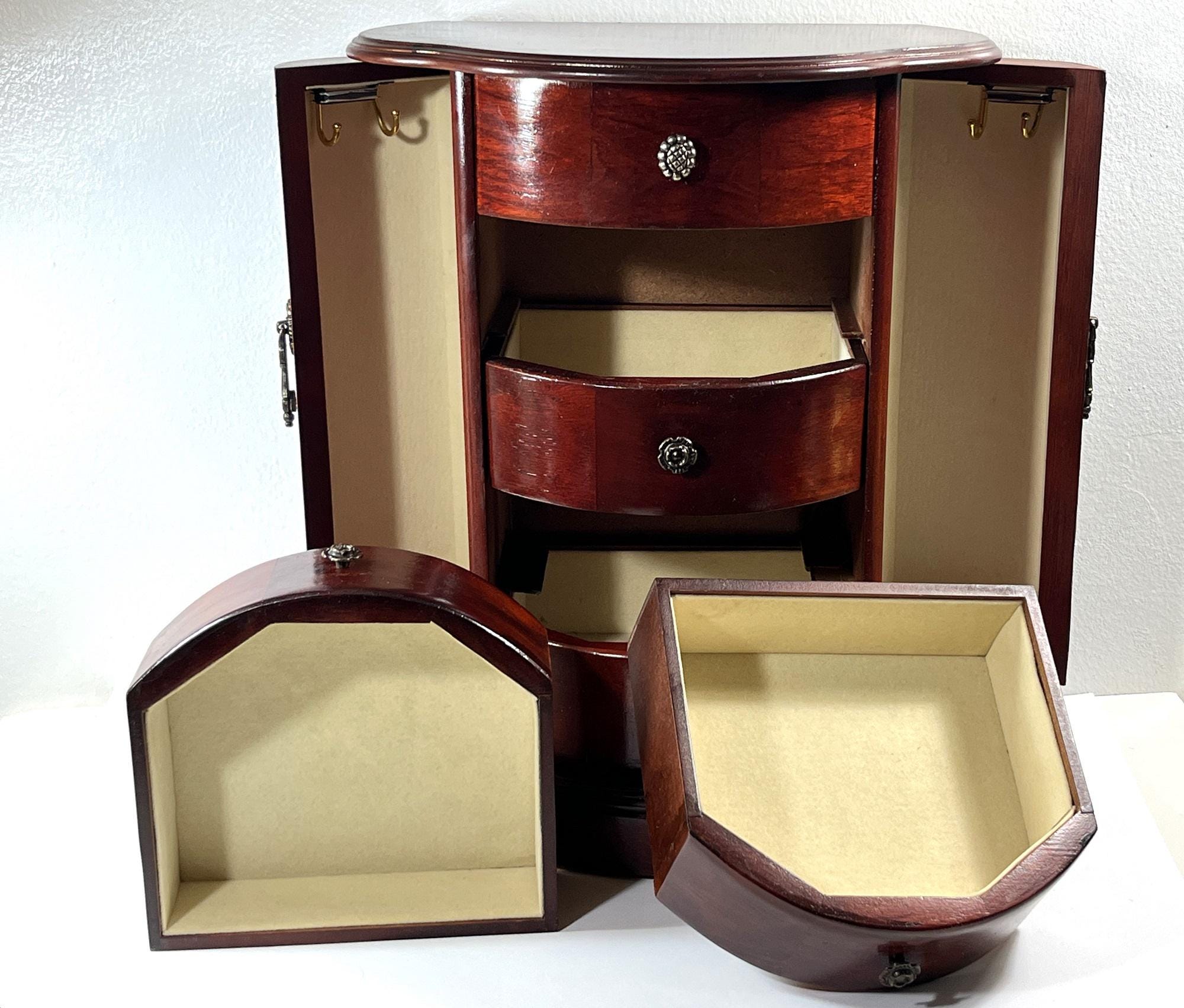 VINTAGE MAHOGANY HARDWOOD JEWELRY ARMOIRE.